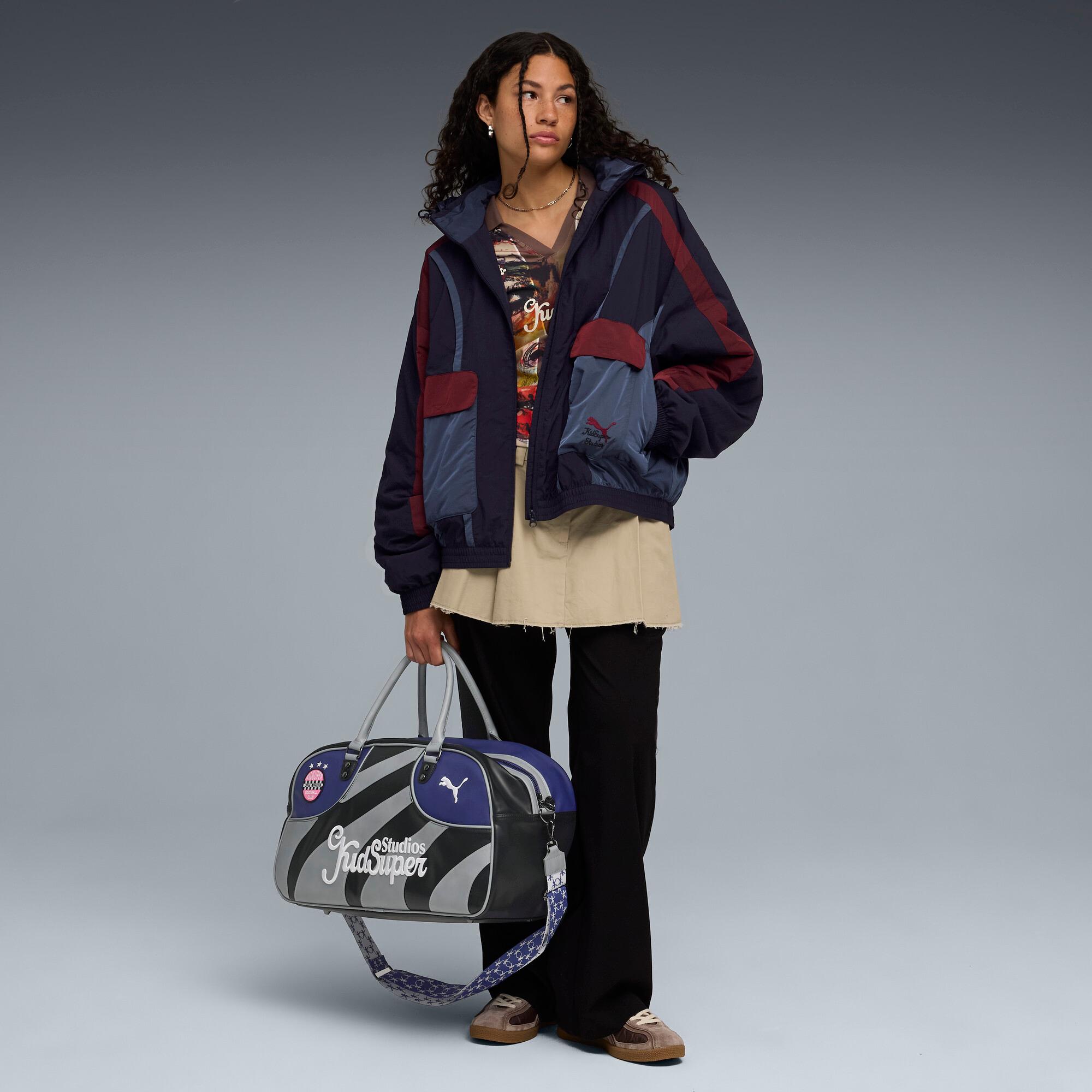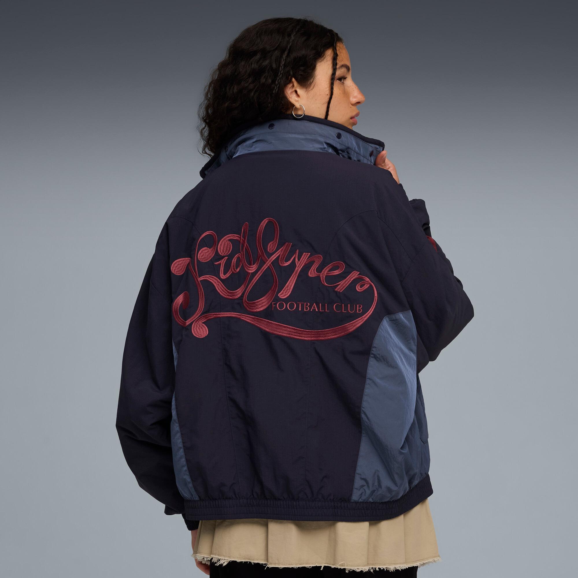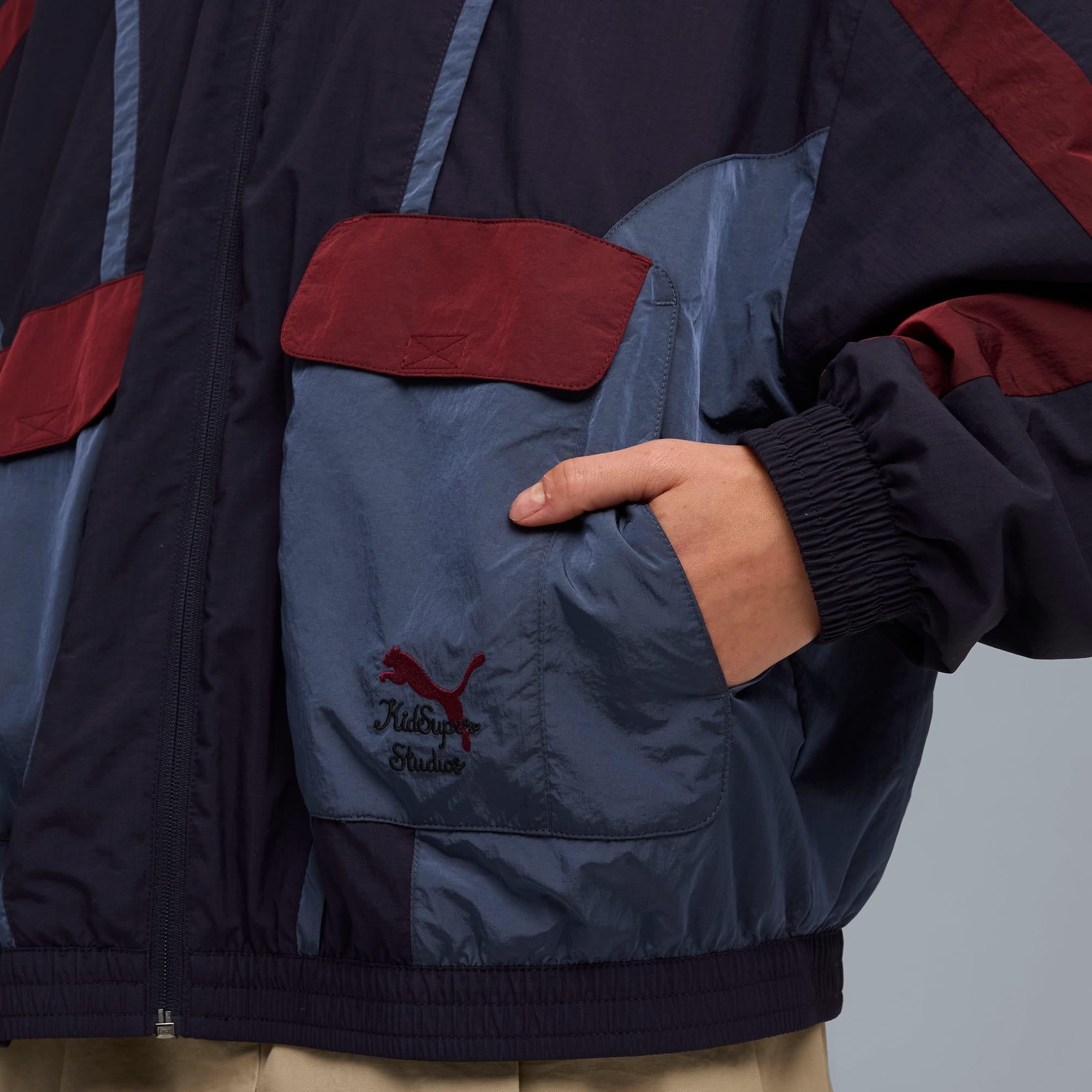 This season's PUMA x KIDSUPER collab is where art meets sports. The collection features an eclectic mix of retro sports-inspired silhouettes and modern art graphics. Highlights include vintage goalie jerseys, a puffer jacket with intricate stitching, and jerseys decorated with watercolor prints.