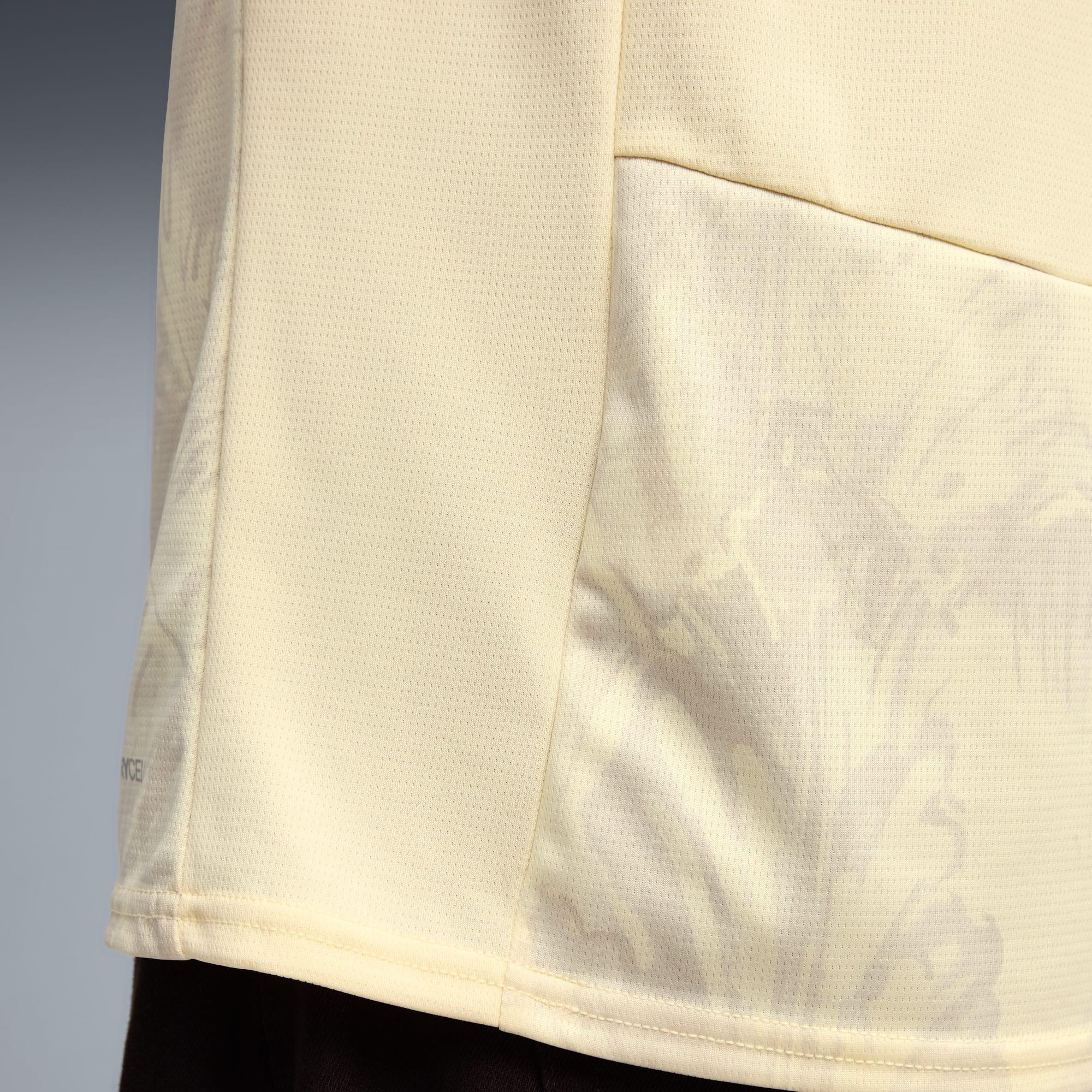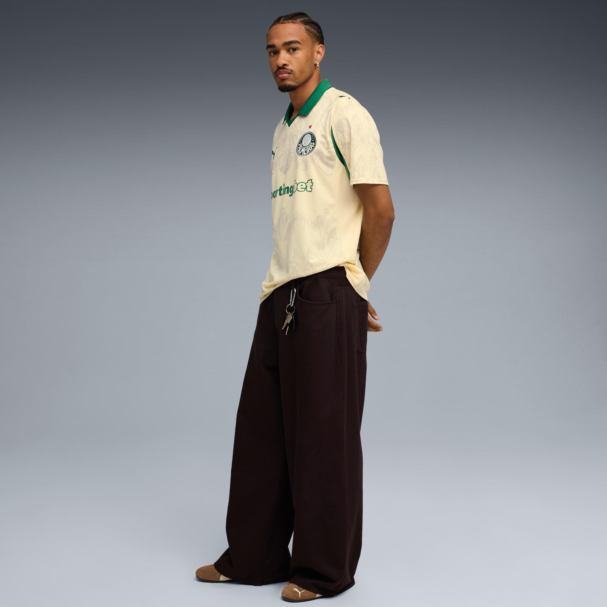 In 1914, a group of Italian immigrants founded a football team in São Paulo. Over a century later, Palmeiras continue to embody the vibrant fusion of Italian and Brazilian culture. With this kit, part of the PUMA x KIDSUPER collection, the Brooklyn designer honors the club’s legacy as the inaugural club world champions in 1951. The baroque-inspired Home Kit features a leaf motif against a golden base, a nod to the club’s Copa Rio triumph and timeless status.