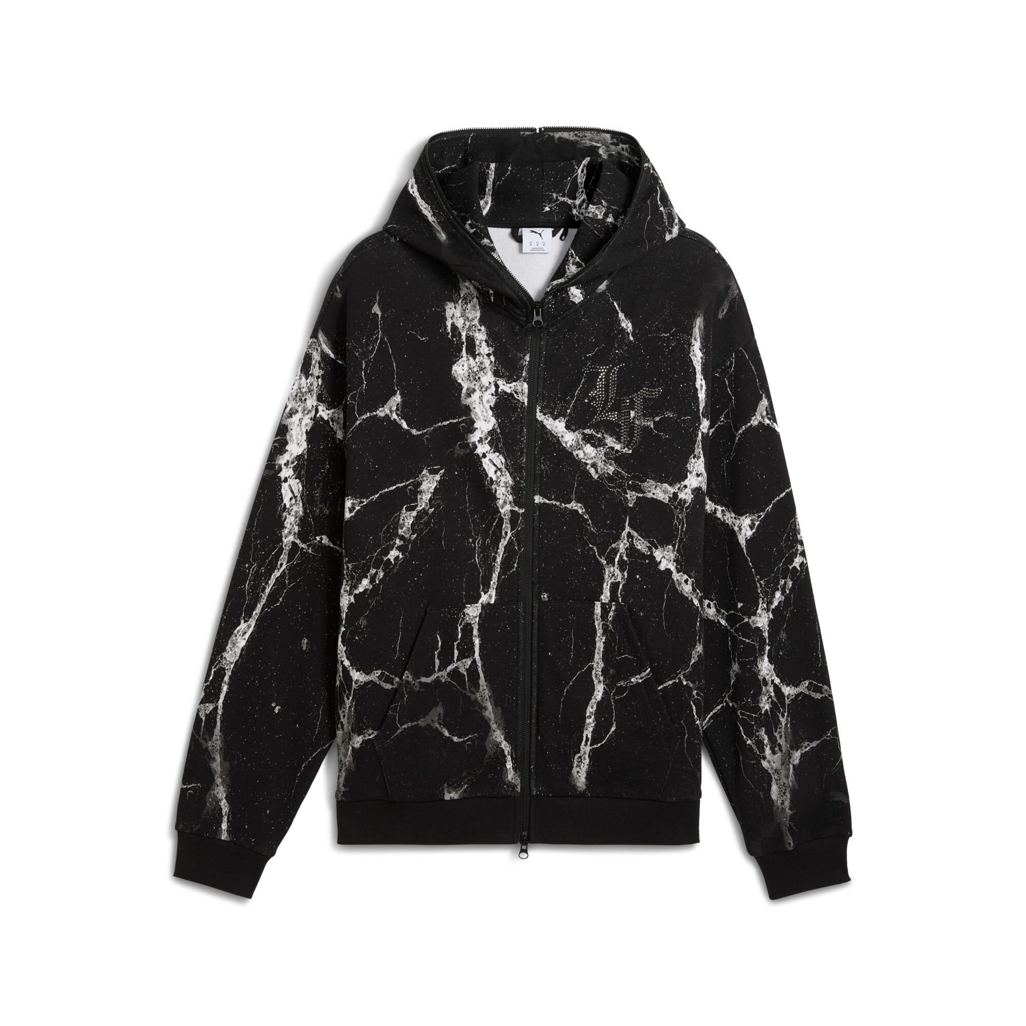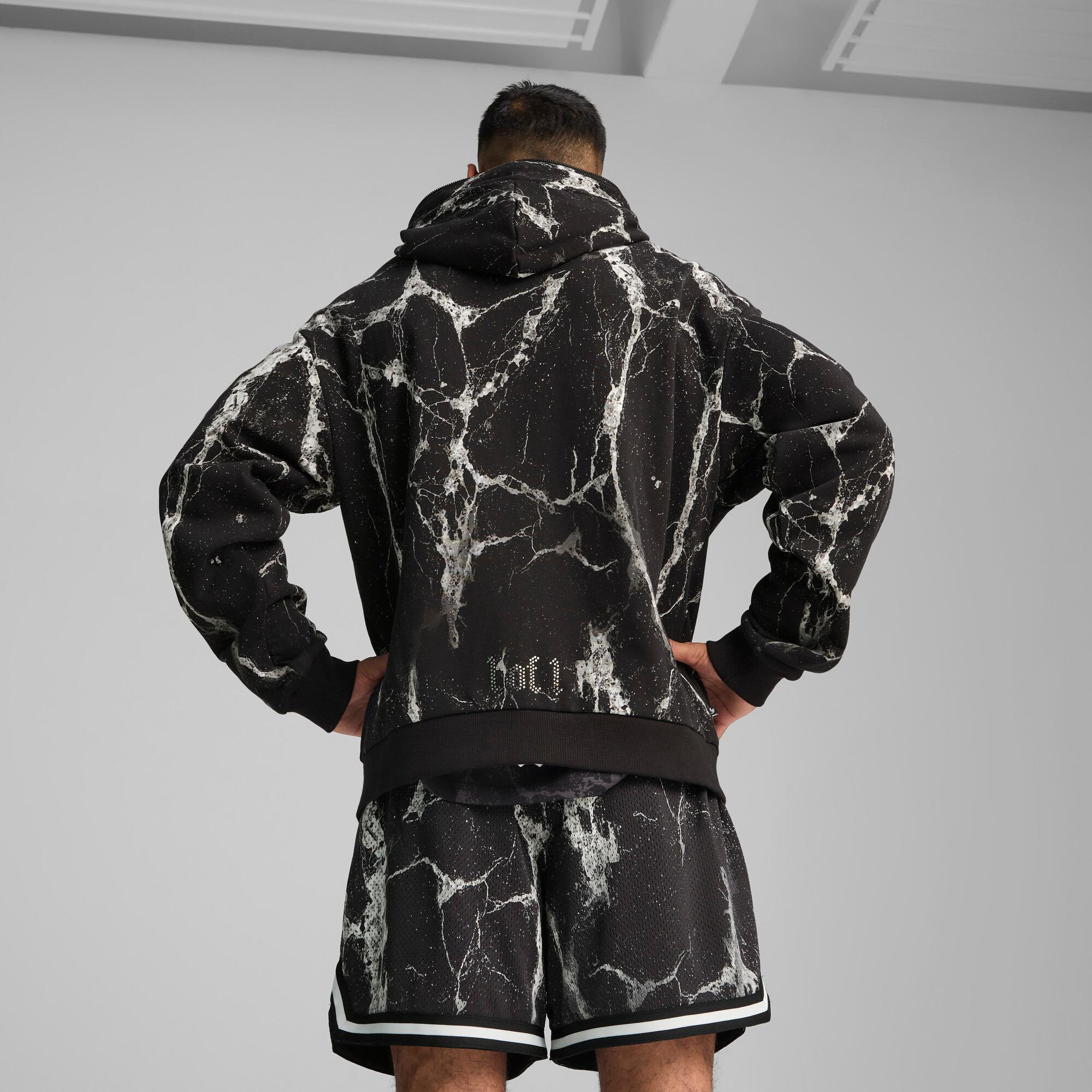 Perfect for basketball fans who live the game, this oversized hoodie boasts PUMA Hoops and LaFrancé branding. The kangaroo pocket adds both style and functionality, making it ideal for everyday adventures. Embrace your passion and stand out with this must-have piece.Made with at least 20% recycled cottonRegular fitLong sleevesRegular lengthFront kangaroo pocketFull-zip hoodieAll-over print graphicPUMA Hoops branding details