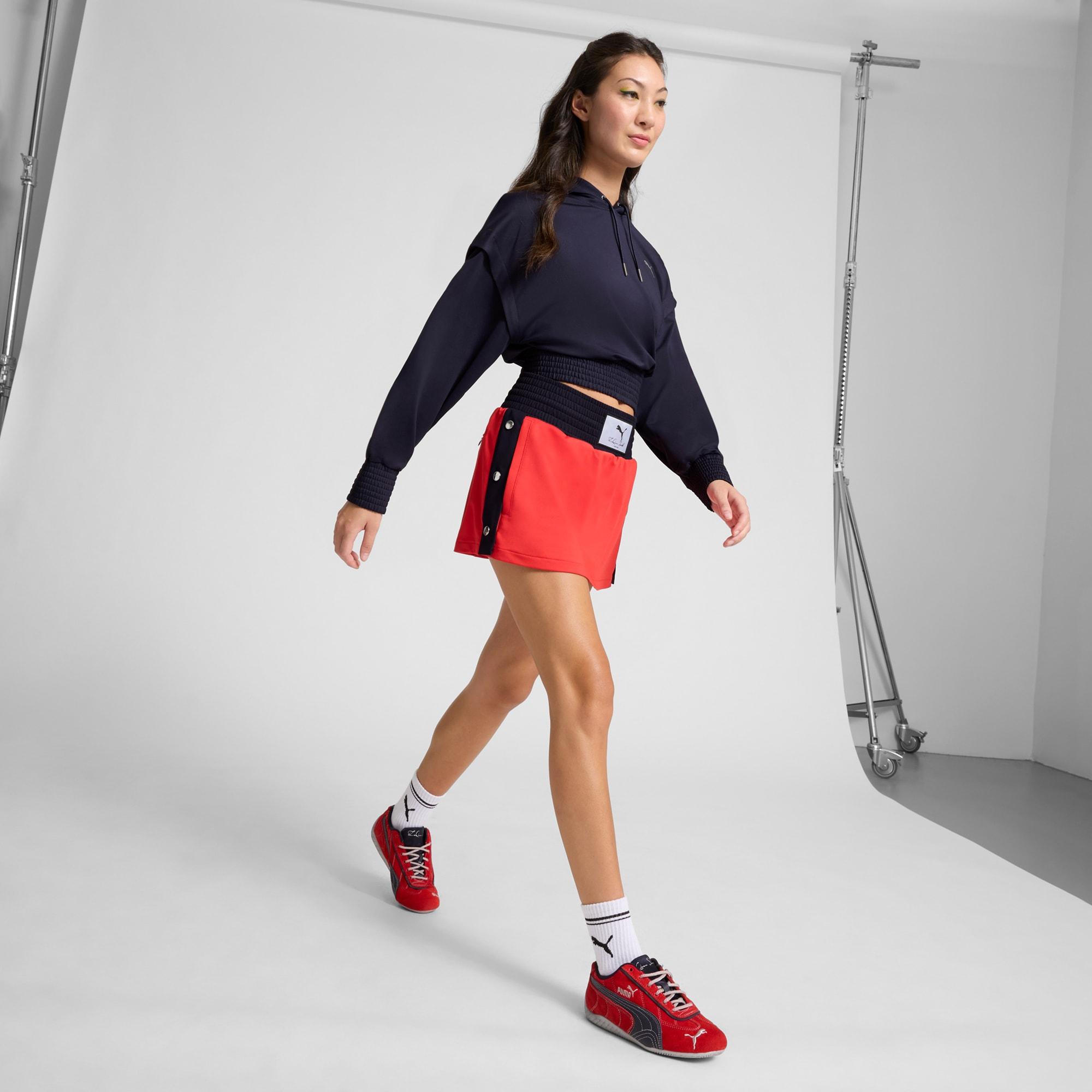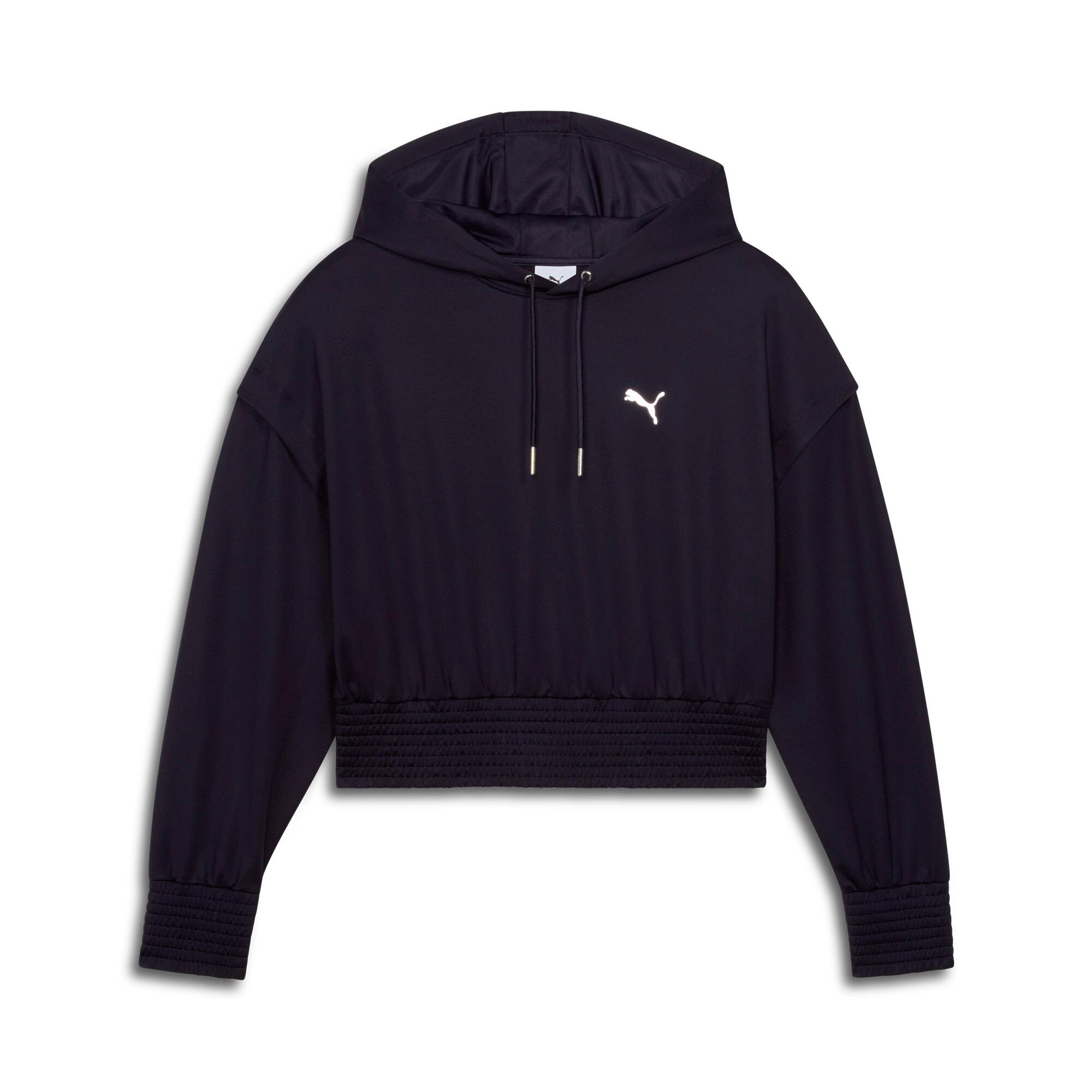 Enter the ring with PUMA x LAQUAN SMITH, inspired by the glitz and glisten of the boxing world. The perfect post-workout fit, this cropped and boxy hoodie adds a hint of glam to a closet staple. Silver detailing and a glitzy collab logo across the back finish this piece off.