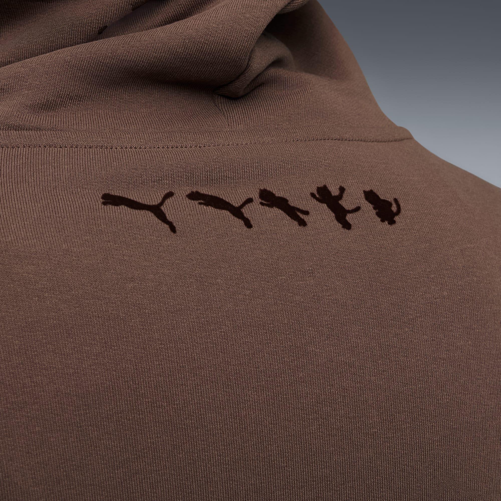descriptionNermal is back for more. Did you miss him? PUMA is partnering with Los Angeles based streetwear and lifestyle brand RIPNDIP for an out-of-the-box collection of footwear, apparel, and accessories. This collection features a mix of classic streetwear essentials and pieces centered around mind-bending graphics.Style: 632414_41Color: Flat Bronzemeasure & sizeModel informationModel is 6' 2" tall and is wearing size M.features & benefitsMade with at least 20% recycled cotton.detailsBoxy fitLong sleevesHooded (without drawcords)Graphic print detailsPUMA x RIPNDIP co-branding detailsmaterials & careMaterial informationHood Lining: 100% cottonShell: 100% cottonCare instructionsUse only mild detergentWash separatelyExclusive of DecorationWash and iron inside outDo not iron print