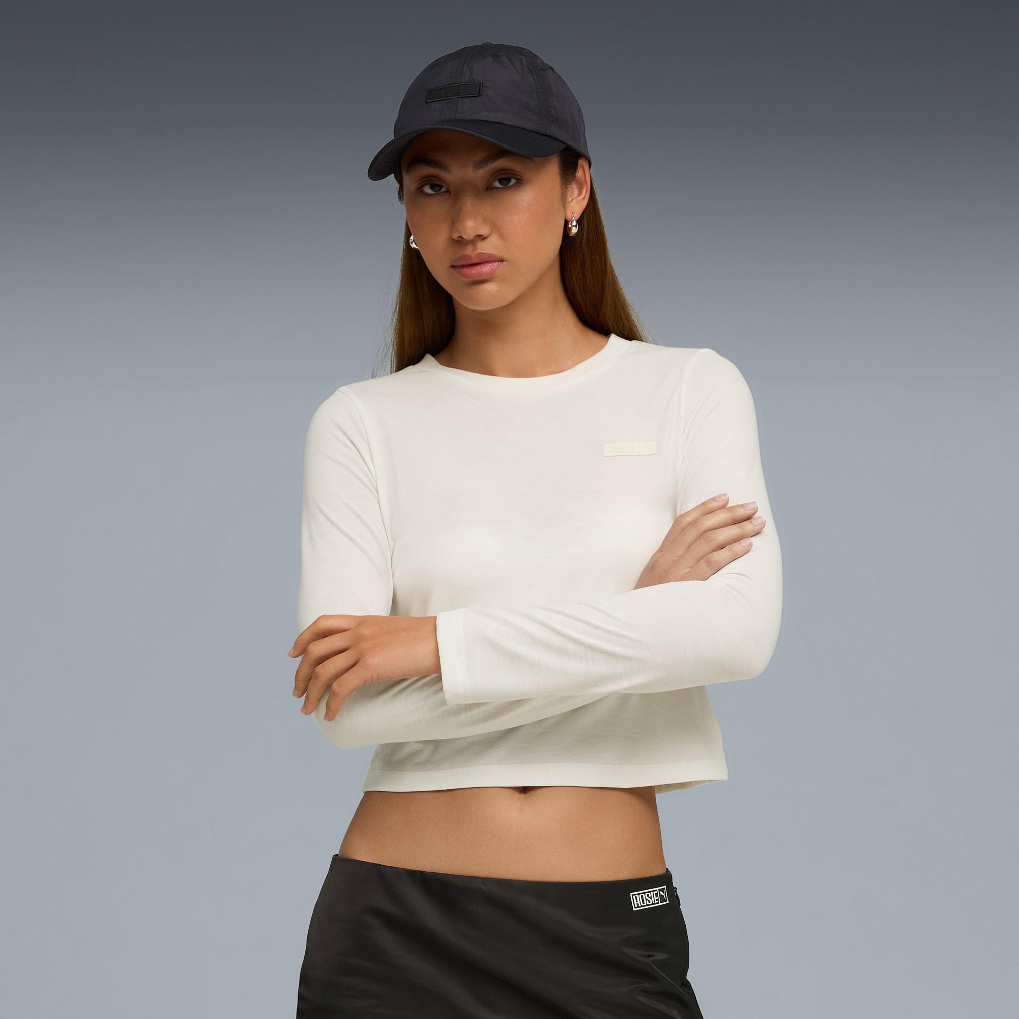 Introducing the first-ever PUMA x ROSÉ capsule collection. Rooted in the pop superstar’s distinct sense of style, the collection fuses classic streetwear with elevated country club aesthetics and personalized touches. Like a rose in constant bloom, this collection invites everyone to peel back their layers, explore their personal style, and embrace their truest selves. Sincerely, Rosé.Made with at least 50% recycled materials.Slim fitMain material type: Single jerseyLong sleevesRibbed crew neckPUMA x ROSÉ co-branding details