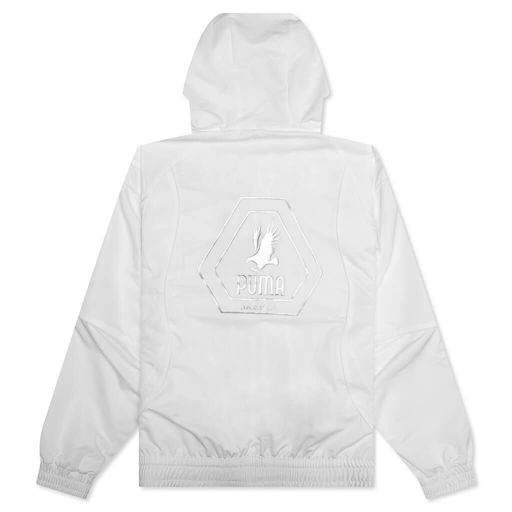 PUMA and Skepta come together again to create another capsule featuring apparel, sneakers, and accessories. The Puma x Skepta CLRT Jacket combines Skepta’s iconic aesthetics with elevated streetwear. Made with polyester, allowing comfort and durability. Designed to have a regular fit, with an elastic waistband and cuffs, and zip side pockets. PUMA x Skepta embroidered branding details on the front and back finishes the look. 100% polyester Elastic waistband and cuffs Zipper side pockets Adjustable drawstring hoodie PUMA x Skepta embroidered branding Style No: 633722-02