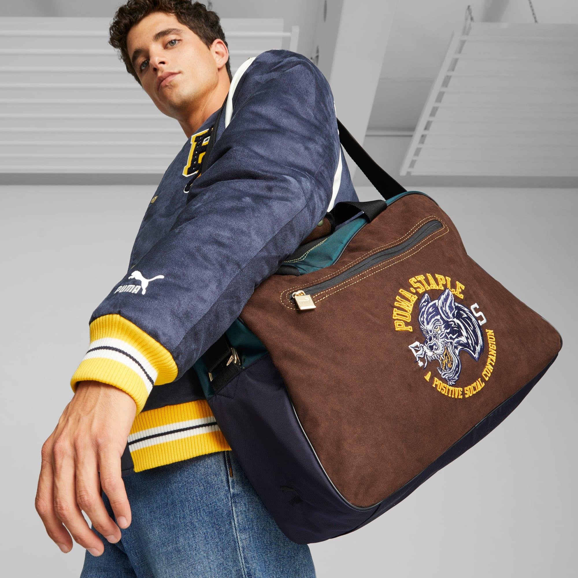 The latest PUMA x STAPLE collaboration takes inspiration from Gidra, a California newspaper founded in 1969 to be a powerful Asian-American voice during the American civil rights movement. Pieces from the collection combine Jeff Staple’s trademark clean, thoughtful aesthetic, with an East-meets-West style and graphics honoring Asian-American history. This duffel bag celebrates that '60s era with a retro silhouette, and it's decked out in some varsity-inspired graphics.Made with at least 50% recycled material as a step toward a better futureVarsity-inspired chenille badges and graphicsZip main compartment with padded slip-in pocketDetachable embroidered badge with gold key chain30 x 14.50 x 45 cm, 24L volume