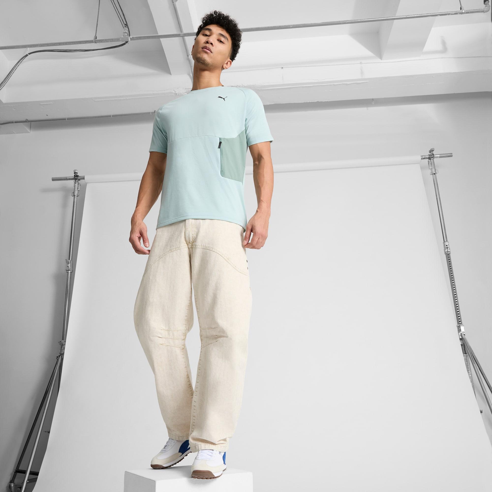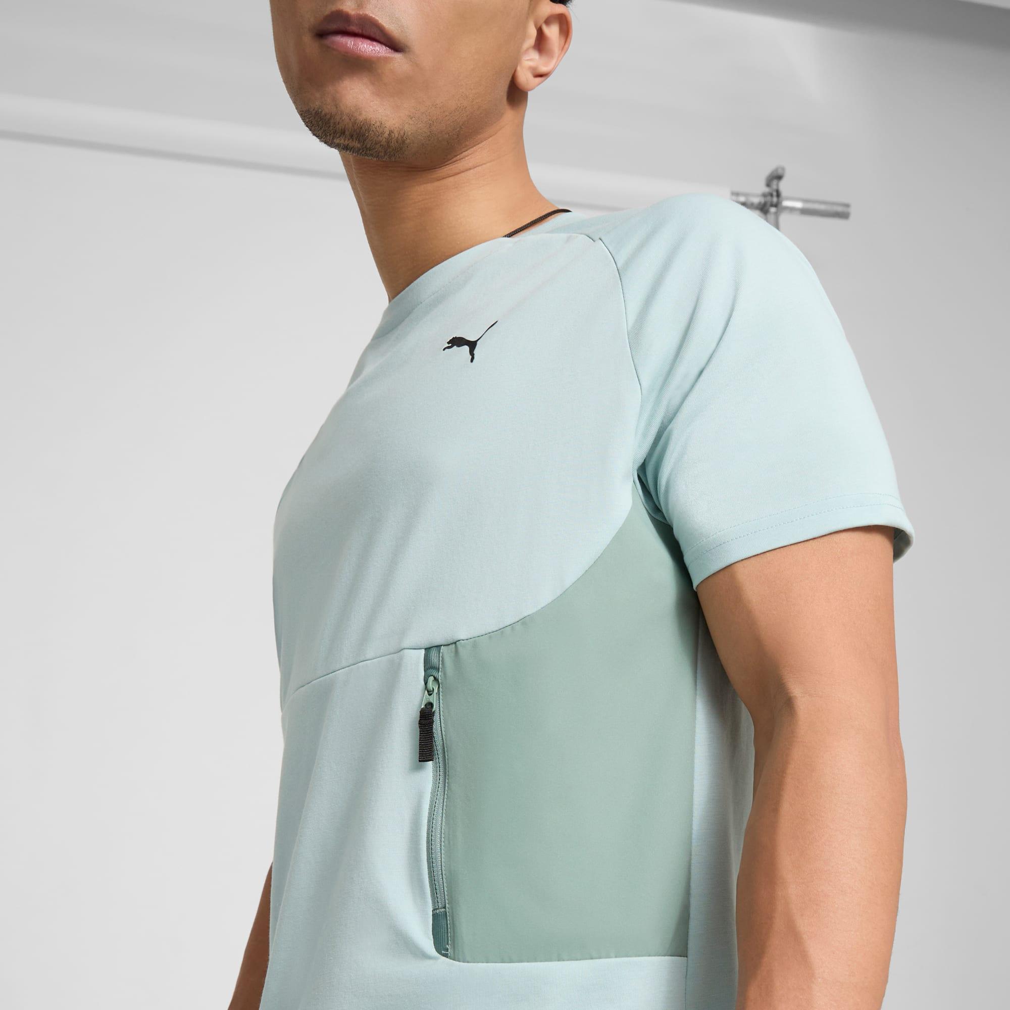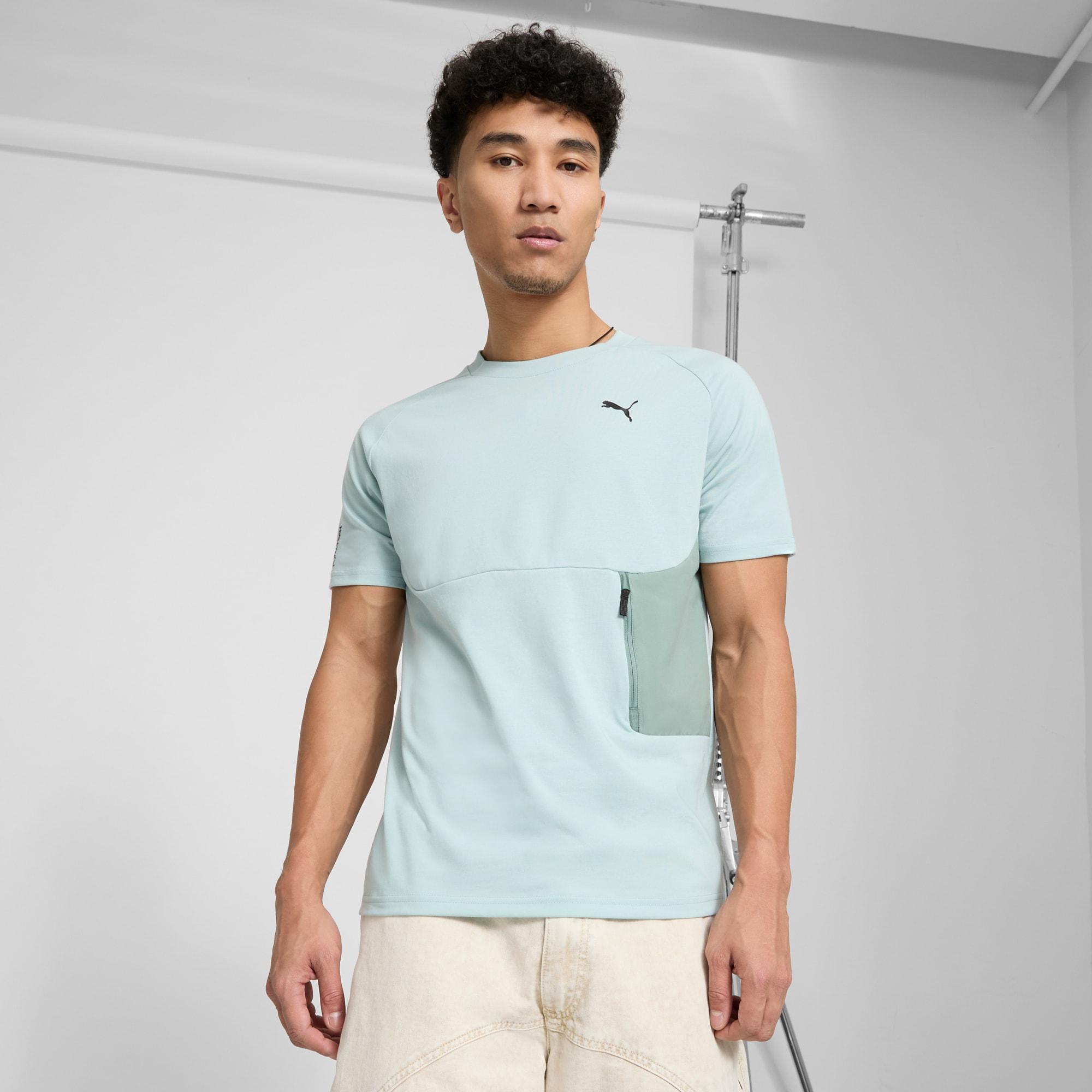 Step up your style game with this tee. Featuring a high-density CAT logo, contrasting color blocks, and a sleek front pocket with a zipper. Stay fresh and ready for anything with PUMA's dryCELL technology. Feel the energy, own the day.Made with at least 50% recycled materialsdryCELL: Performance technology designed to wick moisture from the body and keep you free of sweat during exerciseRegular fitSingle jersey fabricRegular lengthCrew neckShort sleevesPUMA branding details