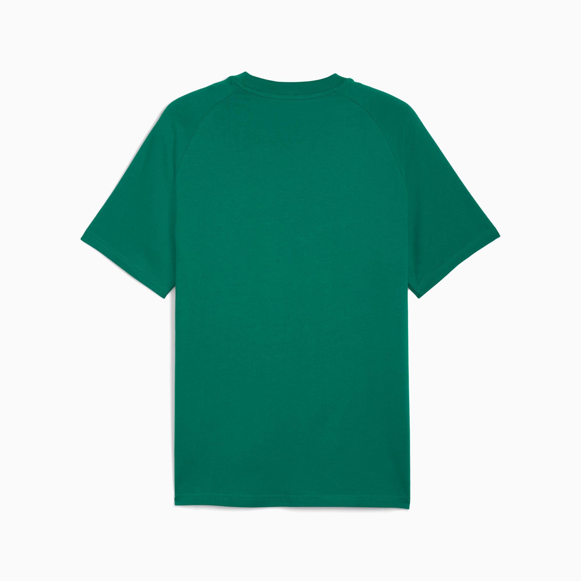 Step into comfort with this PUMA tee. Featuring a high-density CAT logo, a graphic print on the sleeve, and raglan sleeves with an extra cutline on the shoulders. Own your style with PUMA.