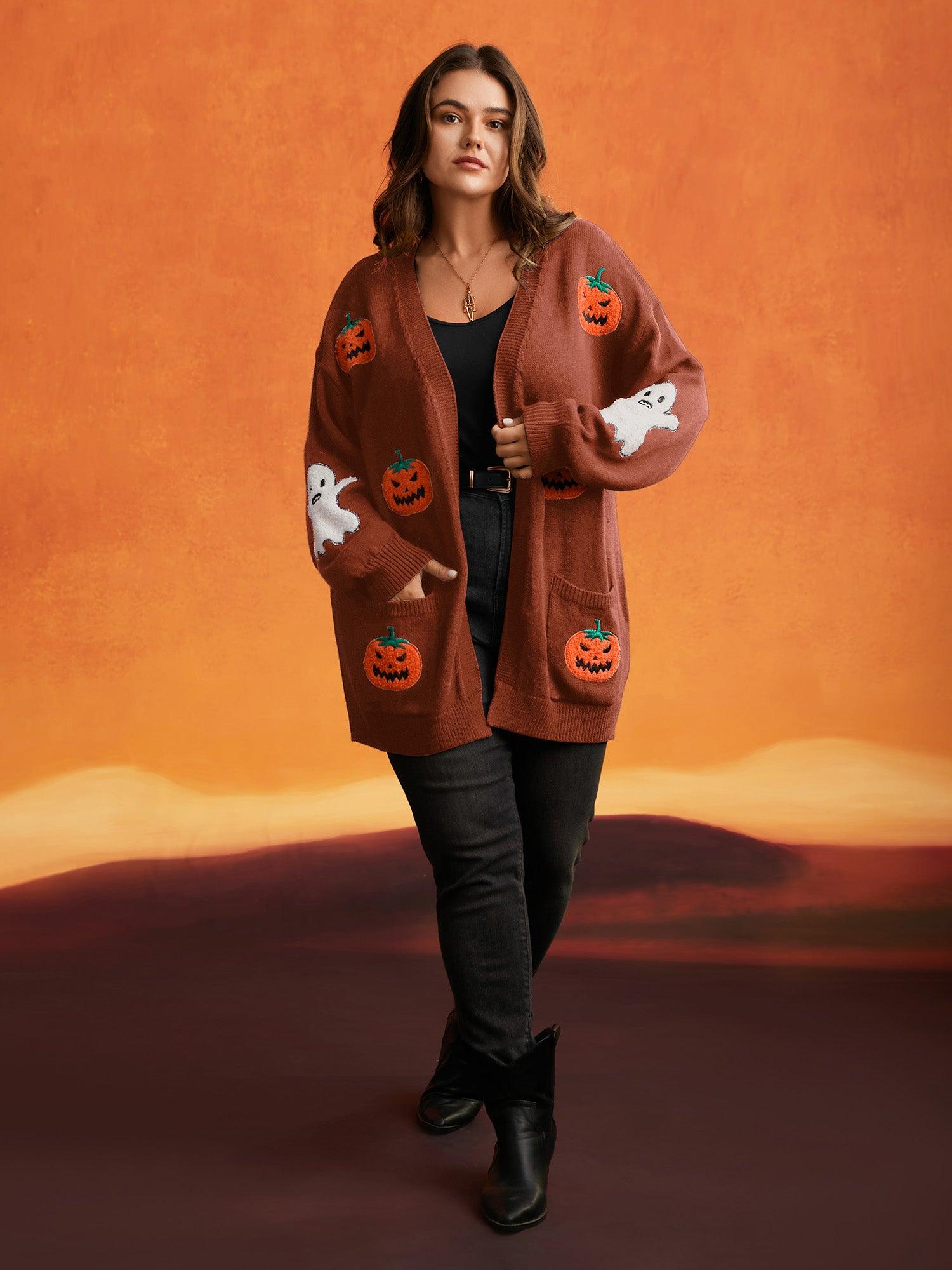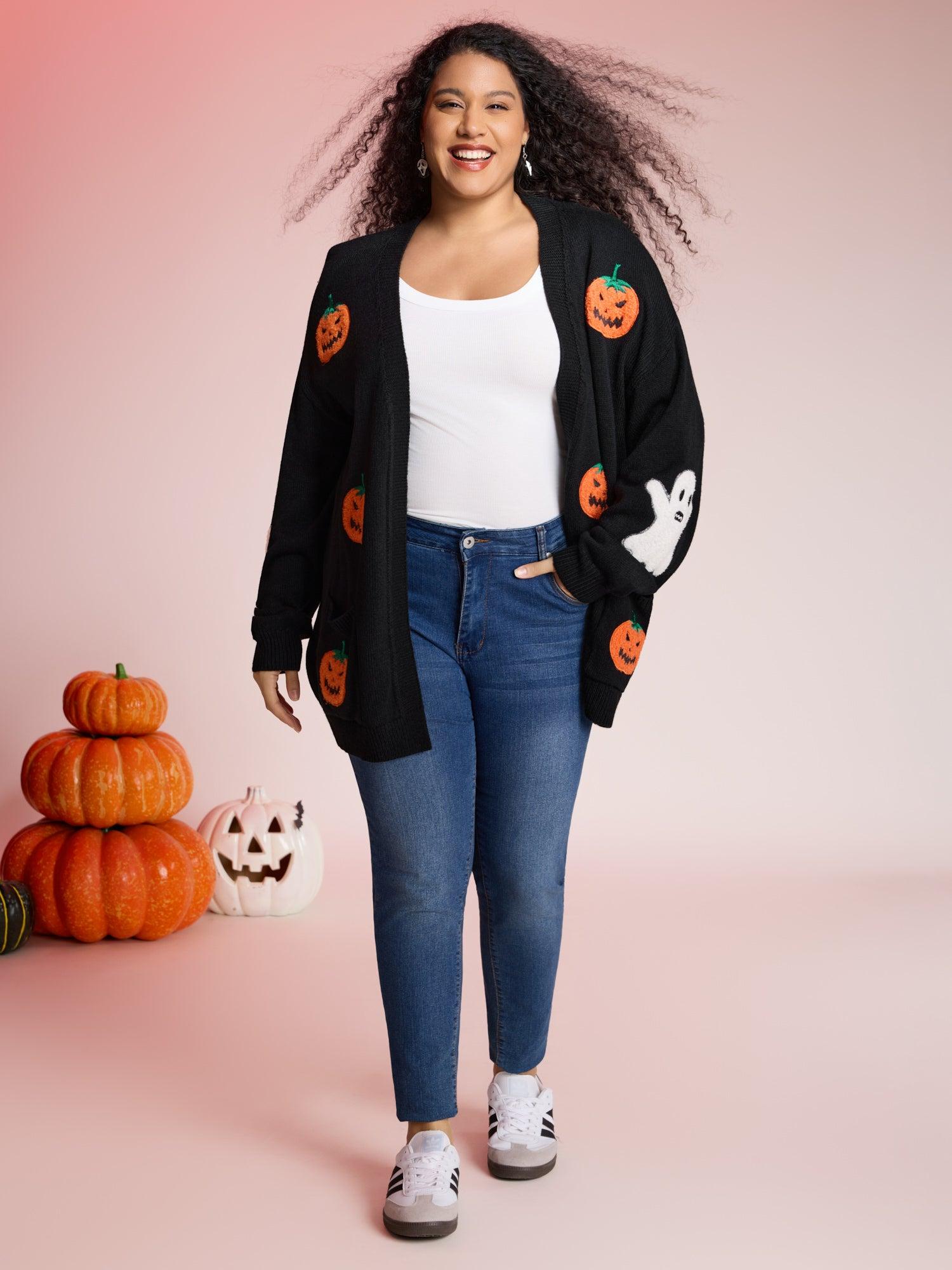 Shop Pumpkin Ghost Embroidery Open Cardigan at BloomChic. Plus Size Clothing & Plus Size Cardigans. BloomChic is a digital-first fashion and lifestyle destination for modern women sizes 10-30.