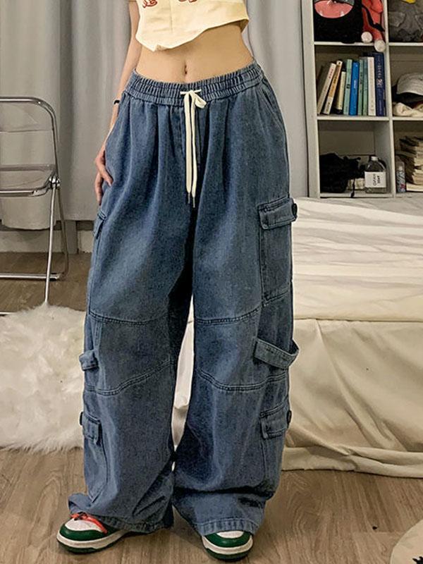 Punk Blue Wash Baggy Cargo Jeans