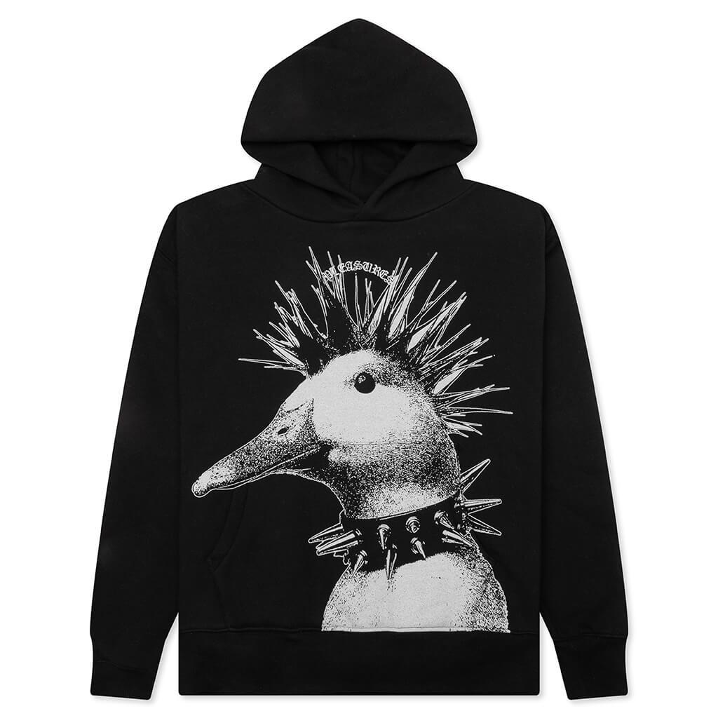 The Punk Duck Hoodie in Black delivers bold design and premium comfort. Made from a cotton-polyester fleece blend, this relaxed-fit hoodie features heavyweight brushed-back fleece for warmth and durability. An updated hood construction enhances its fit, while oversized screen-printed artwork adds a striking visual element. Finished with a kangaroo pocket, it’s a standout piece for everyday layering. 65% Cotton & 35% Polyester fleece Relaxed fit Heavyweight brushed back fleece Updated hood construction Oversized screen printed artwork Kangaroo pocket Style No: P24W021-BLACK P24W021 BLAC