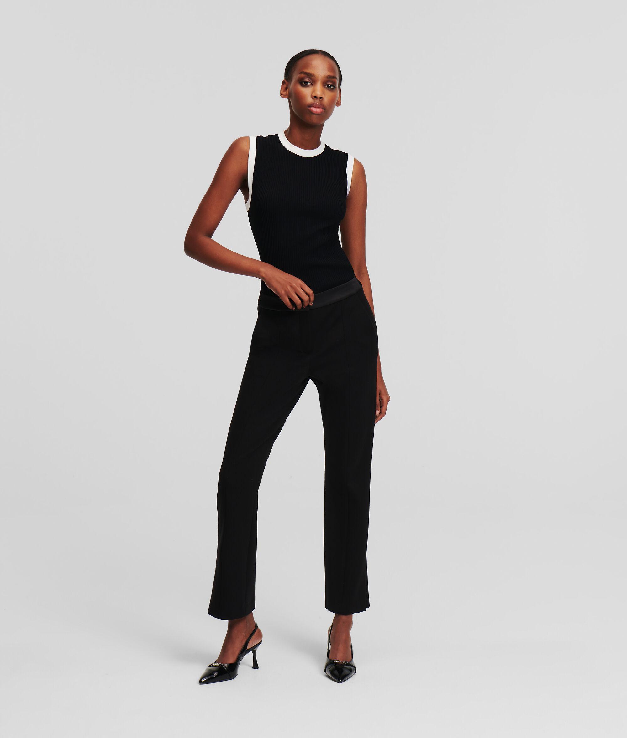 Exude sophistication with these high-rise punto pants, featuring a sleek, tailored fit. Subtle KARL Autograph embroidery enriches the waistband, adding a touch of exclusivity to the classic silhouette. Wear yours with the matching punto jacket for the complete polished look.