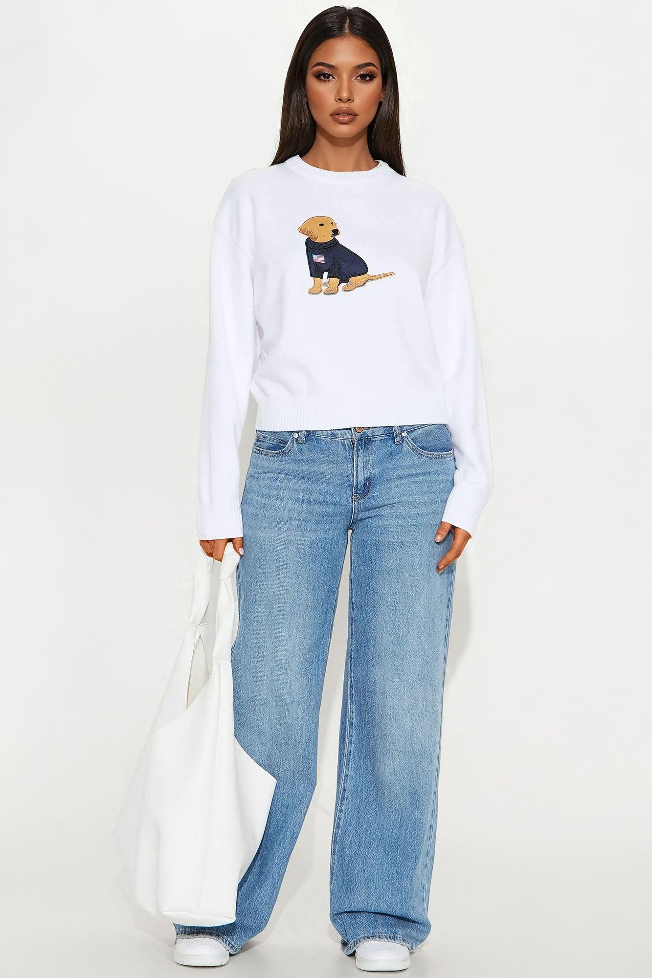 Puppy Love American Flag Sweater - White/combo
