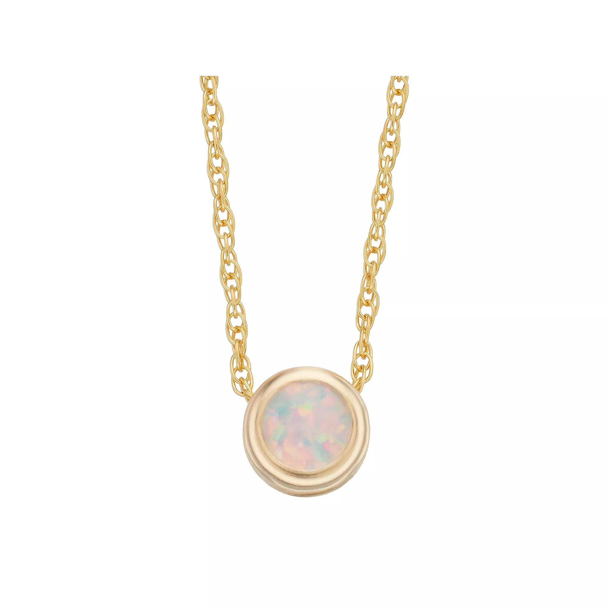 Add a shimmering touch of color to your look with this Pure Gem Collection white opal bezel pendant. Add a shimmering touch of color to your look with this Pure Gem Collection white opal bezel pendant. Chain type: 14k gold-filled rope chain Metal: 10k gold Chain length: 18 in. Packaging: boxed Finish: polished Pendant size: 3/16"L x 3/16"W Chain type: ropeSTONE DETAILS Stone type: lab-created white opal Center stone size: 5 mm x 5 mm Shape: round Setting: bezel Size: 18". Gender: female. Age Group: adult.