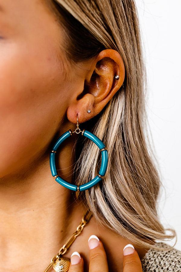 - Stay trendy with these must-have hoops! - Stylish dangling hoops with a teal colored beaded design with gold accents - Diameter: 2"
