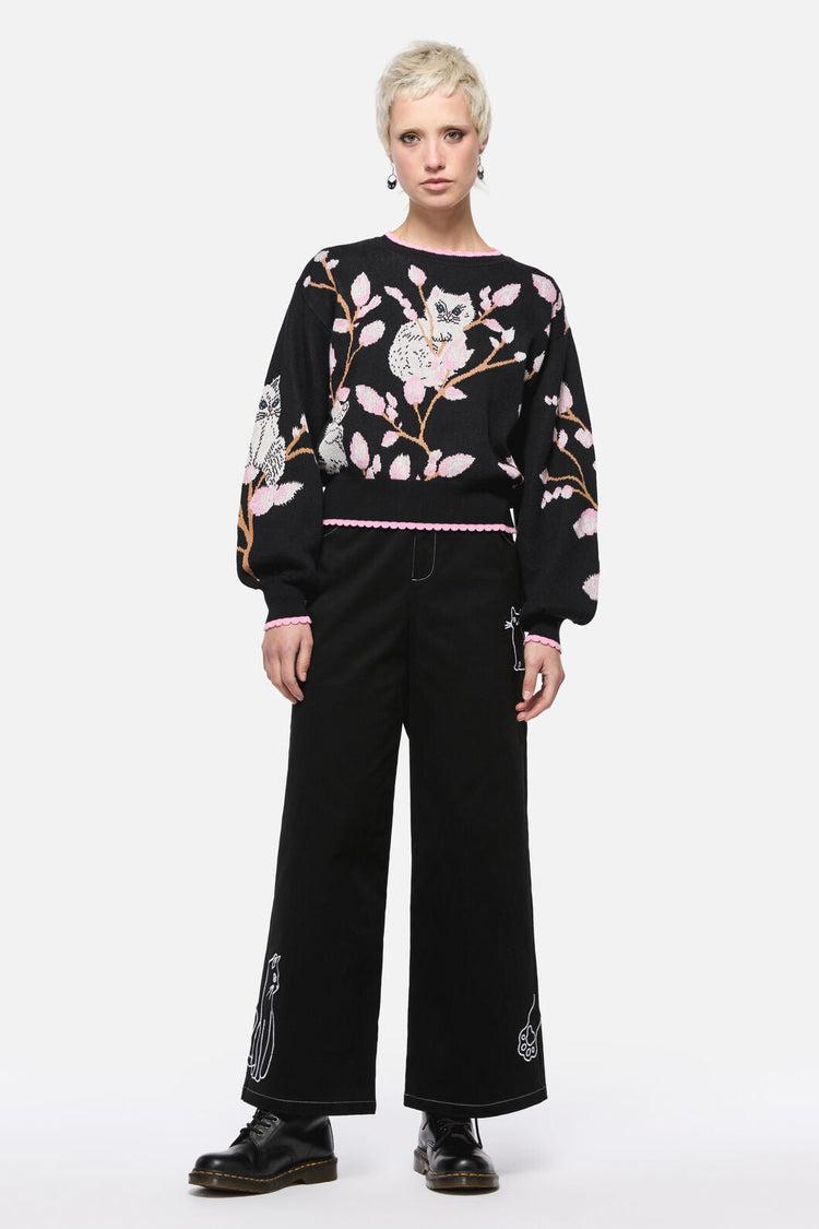 Snuggle up in vintage-inspired charm with the Pussy Willow Border Knit by Dangerfield. This oversized cotton jumper features an irresistibly cute ‘Pussy Willow’ kitty artwork on the front—perfect for cat lovers and retro dreamers alike. With its relaxed fit, round neckline, and ribbed trims, it’s your go-to knit for cozy winter layering.Round necklineRelaxed, oversized fitLong sleevesRib knit at neckline, cuffs, and hem‘Pussy Willow’ cat artwork on frontMade from soft 100% knitted cottonAvailable in blackFabric & Care100% CottonGentle cold hand washDo not bleach or soakDo not wring or spinReshape and lay flat to dryCool iron if required