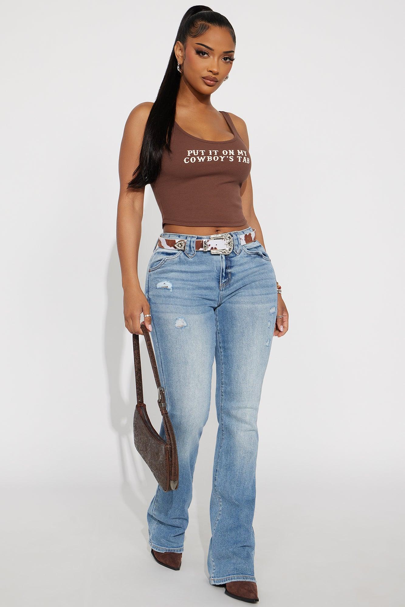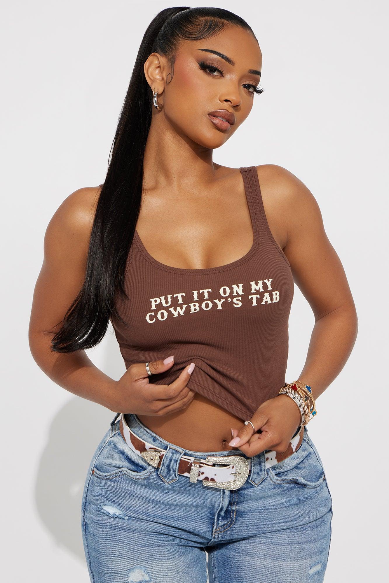 Put It On My Cowboy's Tab Ribbed Tank Top - Chocolate/Combo Female