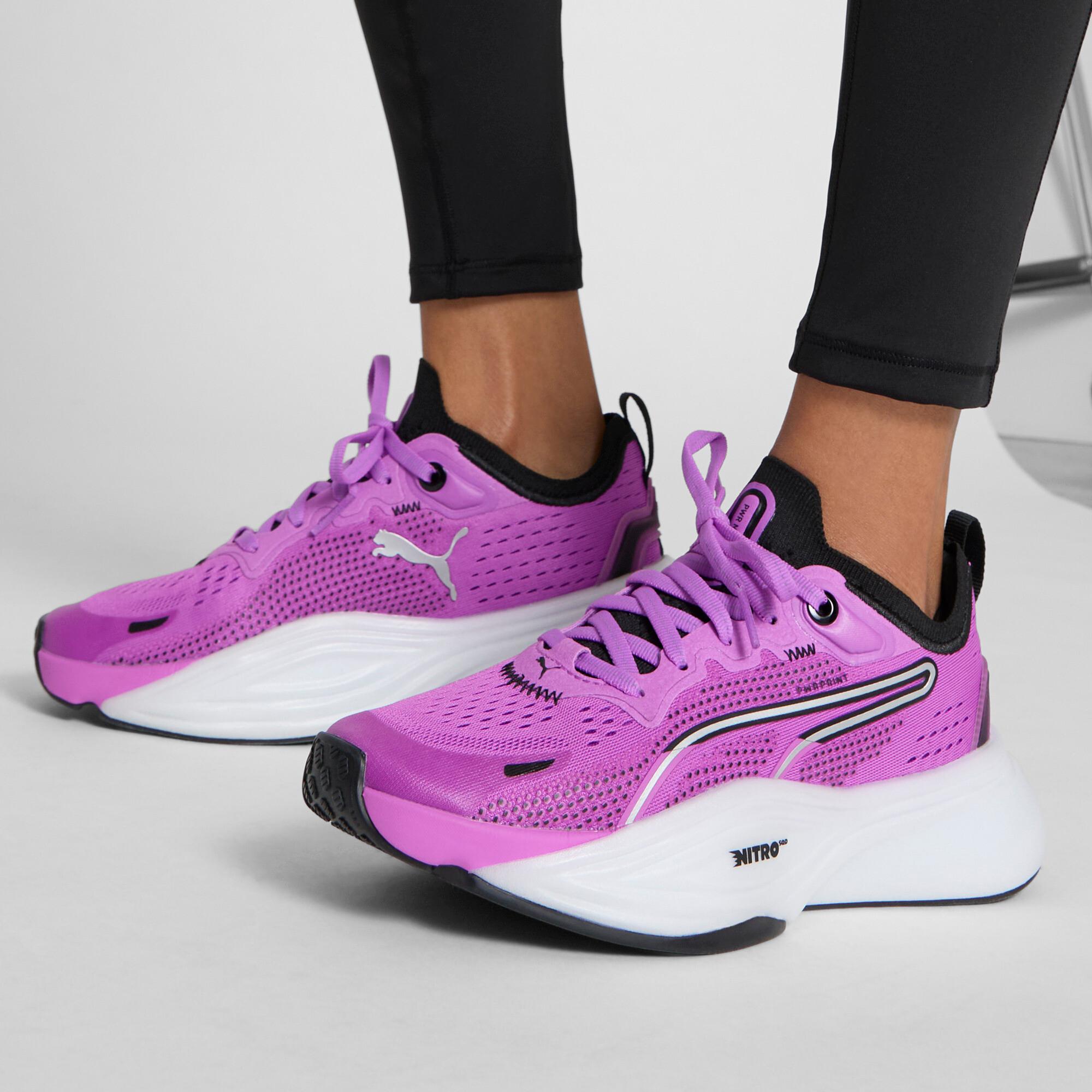 Explosive energy meets all-around support. PWR NITRO™ SQD 2 training shoes power your workout with dual-density NITROFOAM™ provides enhanced midsole banking for lateral moves. PUMAGRIP traction grips any surface. Unleash your potential - these lightweight yet durable trainers handle everything from HIIT to strength training. Your workout will never be the same.The upper of the shoes is made with at least 20% recycled materialsNITRO™ SQD: Innovative dual density NITRO™ SQD midsole combines best in-class cushioning and rebound with all around support – ideal for quick first step and explosive take-offPUMAGRIP: Durable performance rubber compound designed for all-surface tractionRegular fitEngineered mesh upperHeel support systemLace closurePUMA branding details