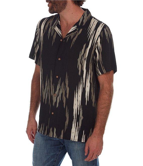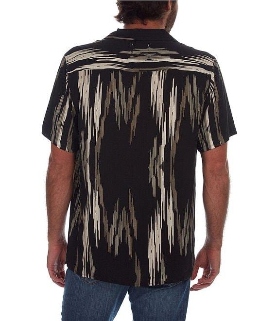 PX Clothing Short Sleeve Camp Neckline Vertical Zig-Zag Woven Shirt