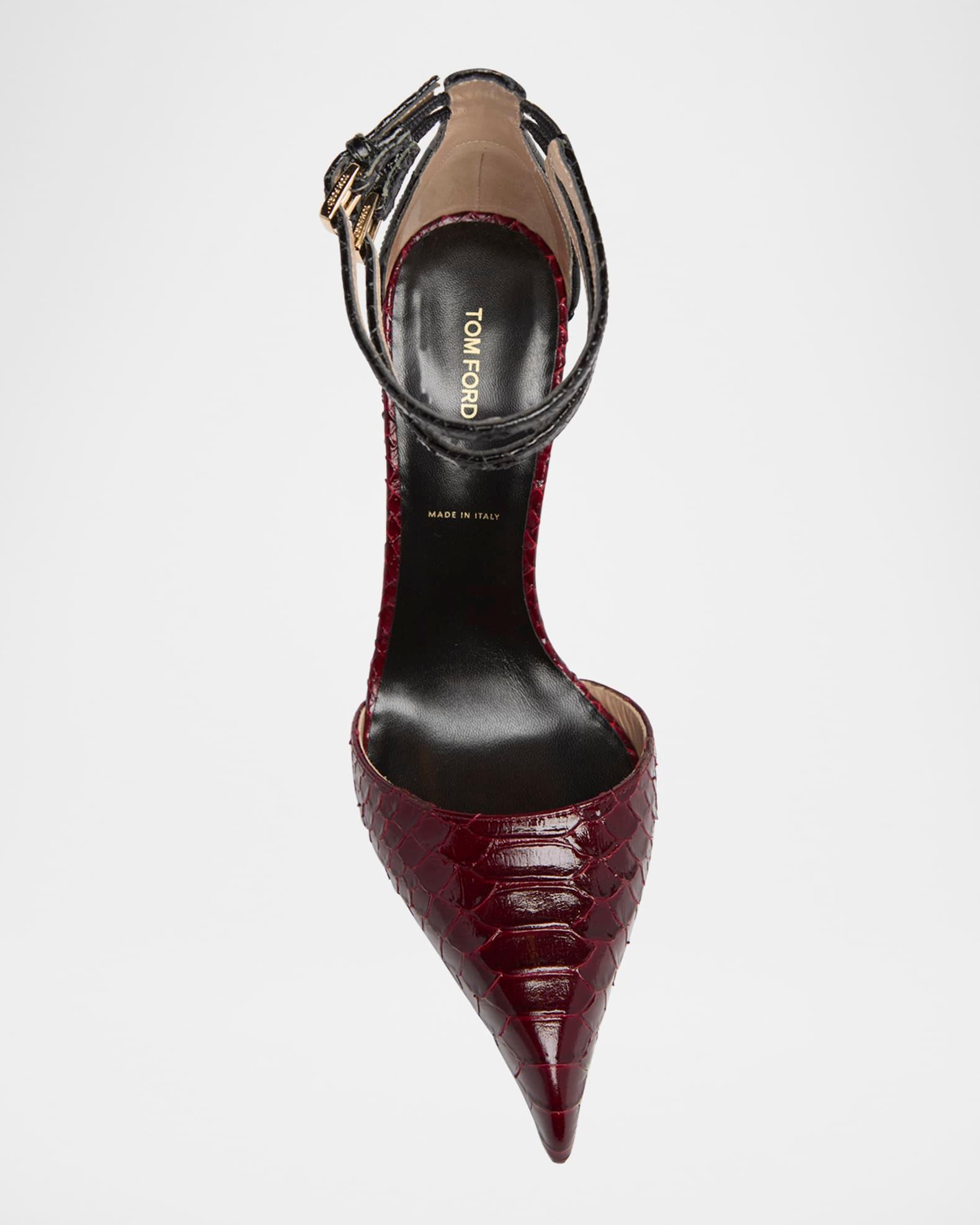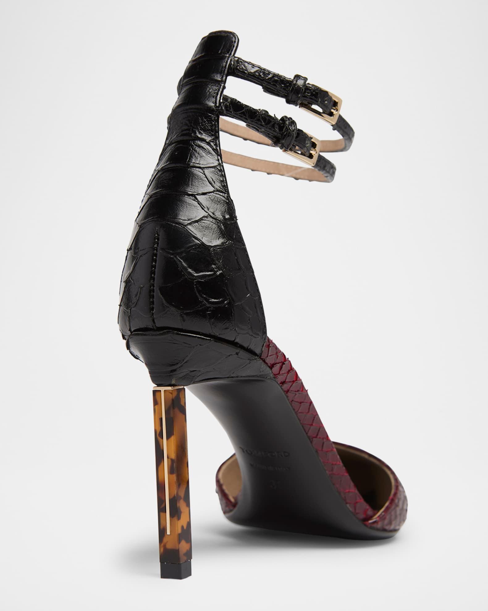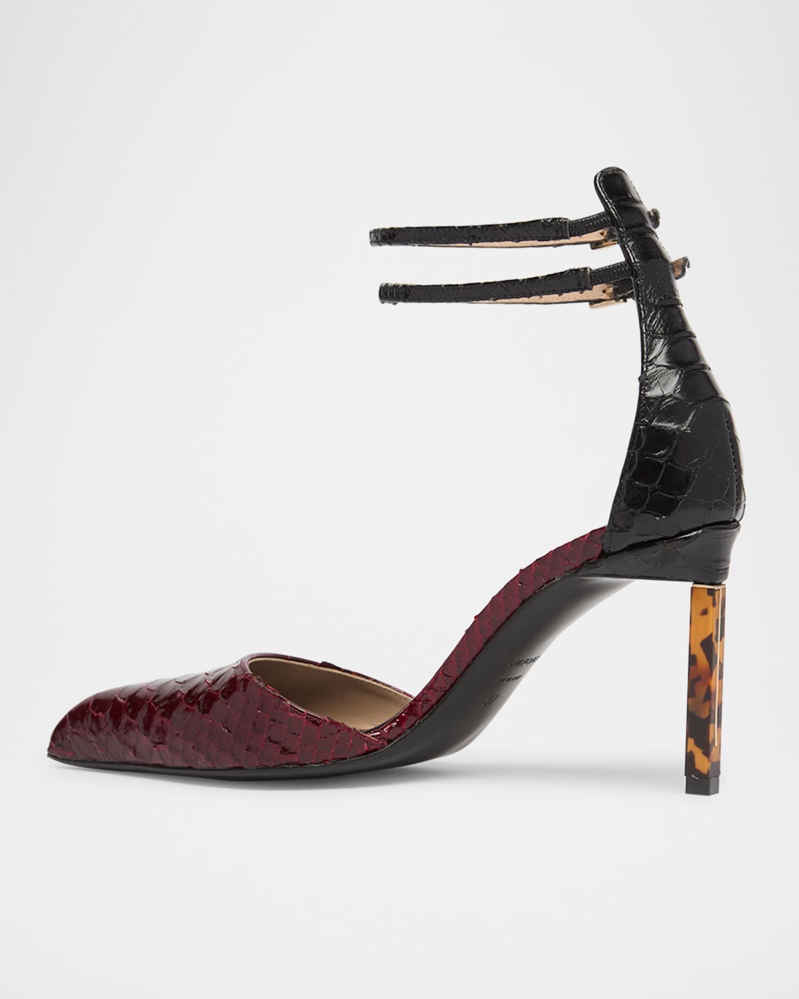 Python Stamped Leather Double Ankle Strap Pumps