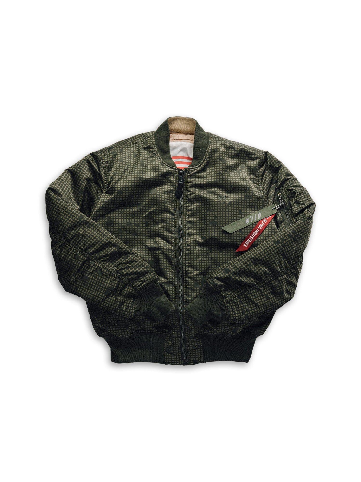 A reversible MA-1 Flight Jacket with DNC camo on the front, reversing to DCU camo with a Blood Chit.