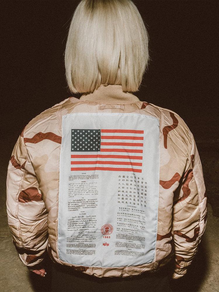 From QILO NYC's "From Bagdad with Love" Collection, the Qilo x Alpha Industries MA-1 Bomber features a Desert Night Camo (DNC) pattern on the front and reverses to a DCU (Desert Camouflage Uniform) Camo on the inside. The secondary side also features a Blood Chit - a document that identifies a military member (often pilots/airmen) and asks for assistance if they are injured or stranded in enemy territory.The jacket is an ode to both Iraq wars “Operation Desert Storm” & “Operation Iraqi Freedom” where these two camos (DNC & DCU) were heavily used.