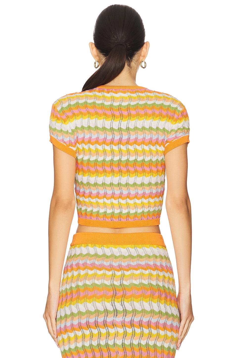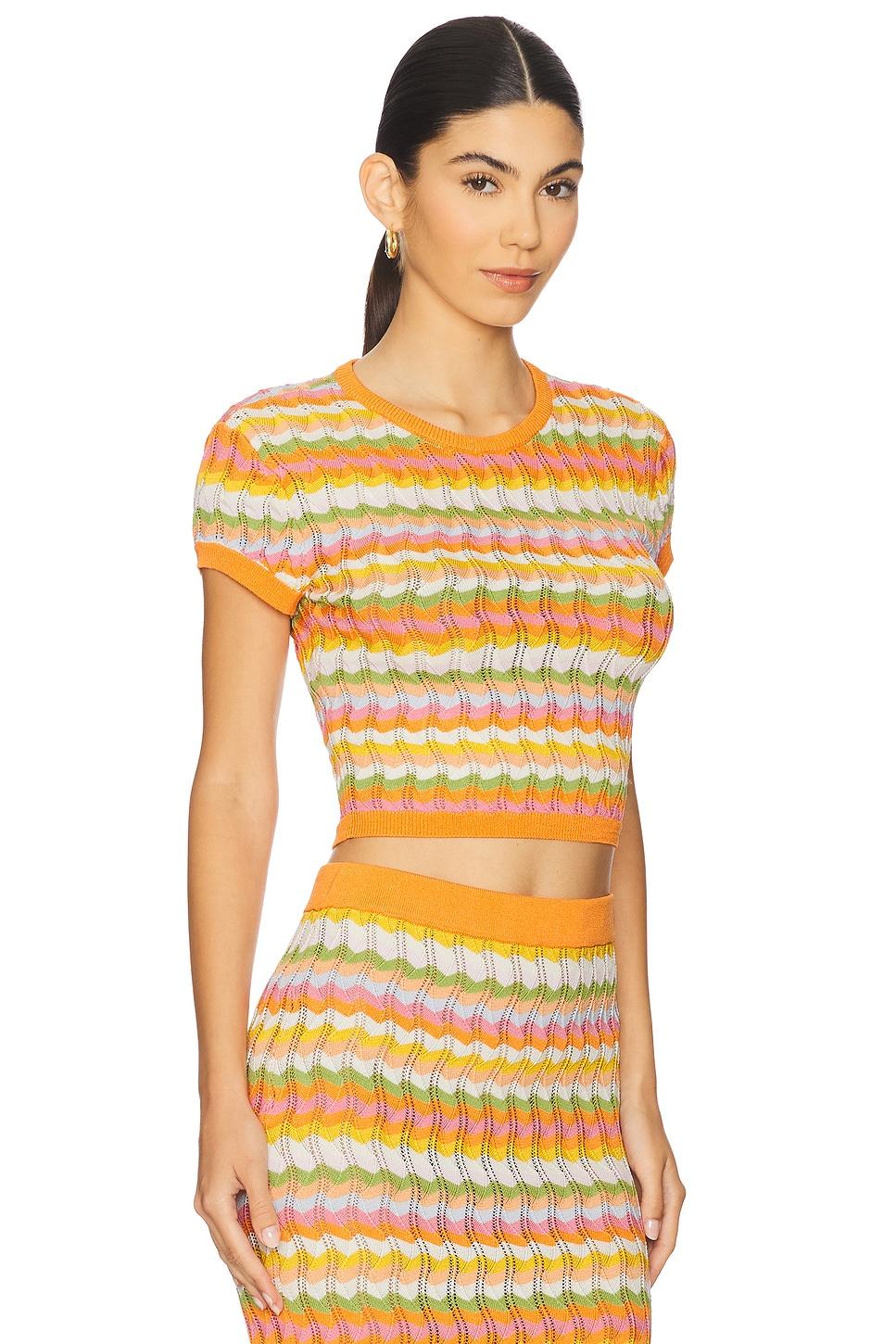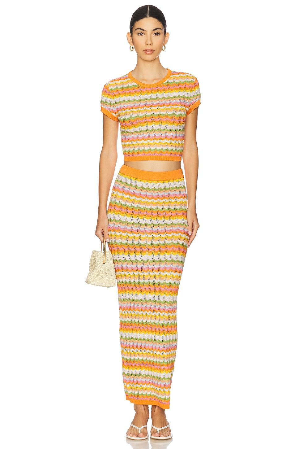 63% viscose, 37% nylon. Hand wash. Pull-on styling. Cropped fit. Midweight textured knit fabric. Garment is made with a semi-sheer fabric, undergarments can show through. Item not sold as a set. Made in China. Revolve Style No. RONR-WS474. Manufacturer Style No. 426075KNT.