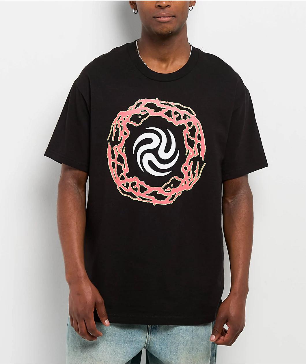 Embrace a Y2K look with the Drop Out t-shirt from Quasi Skateboards, presented in a solid black cotton build. Boasting screen-printed graphics, the front of the short sleeve shows a distorted circular design around a symmetrical circular symbol while