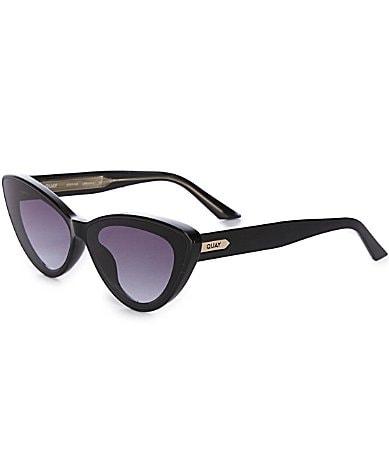 From Quay Australia, these womens sunglasses feature:Acetate frameCat eye shapeSolid lensNon PolarizedNot Rx AbleApprox. 46mm lens- 11mm bridge- 145mm templeImported.