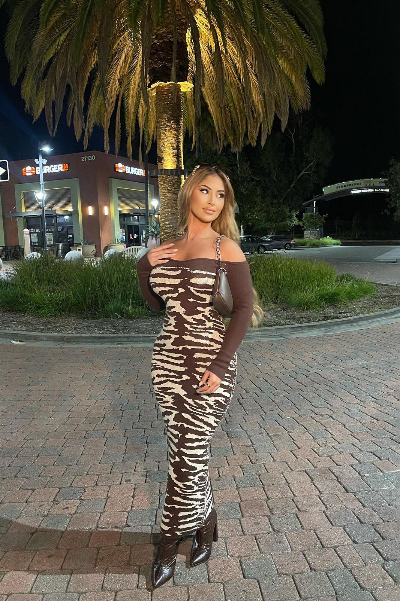 Queen Of The Jungle Sweater Maxi Dress - Brown Combo