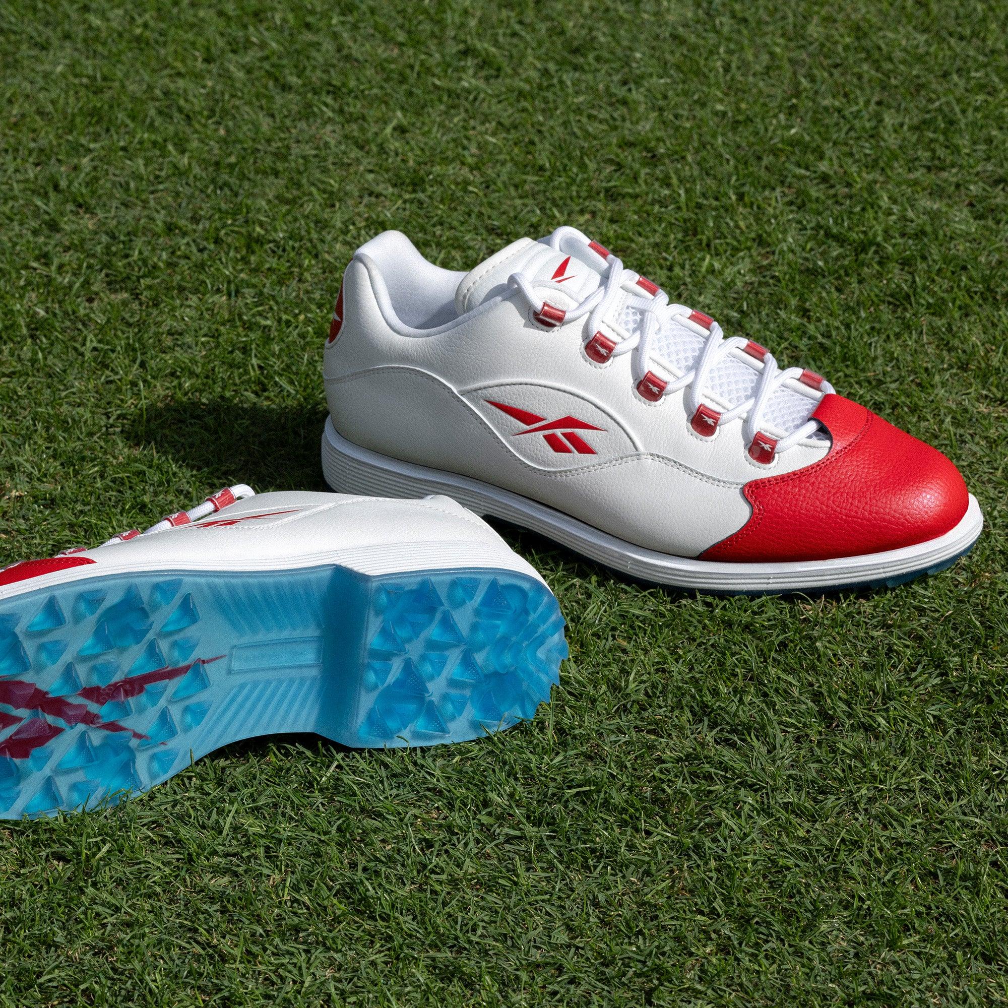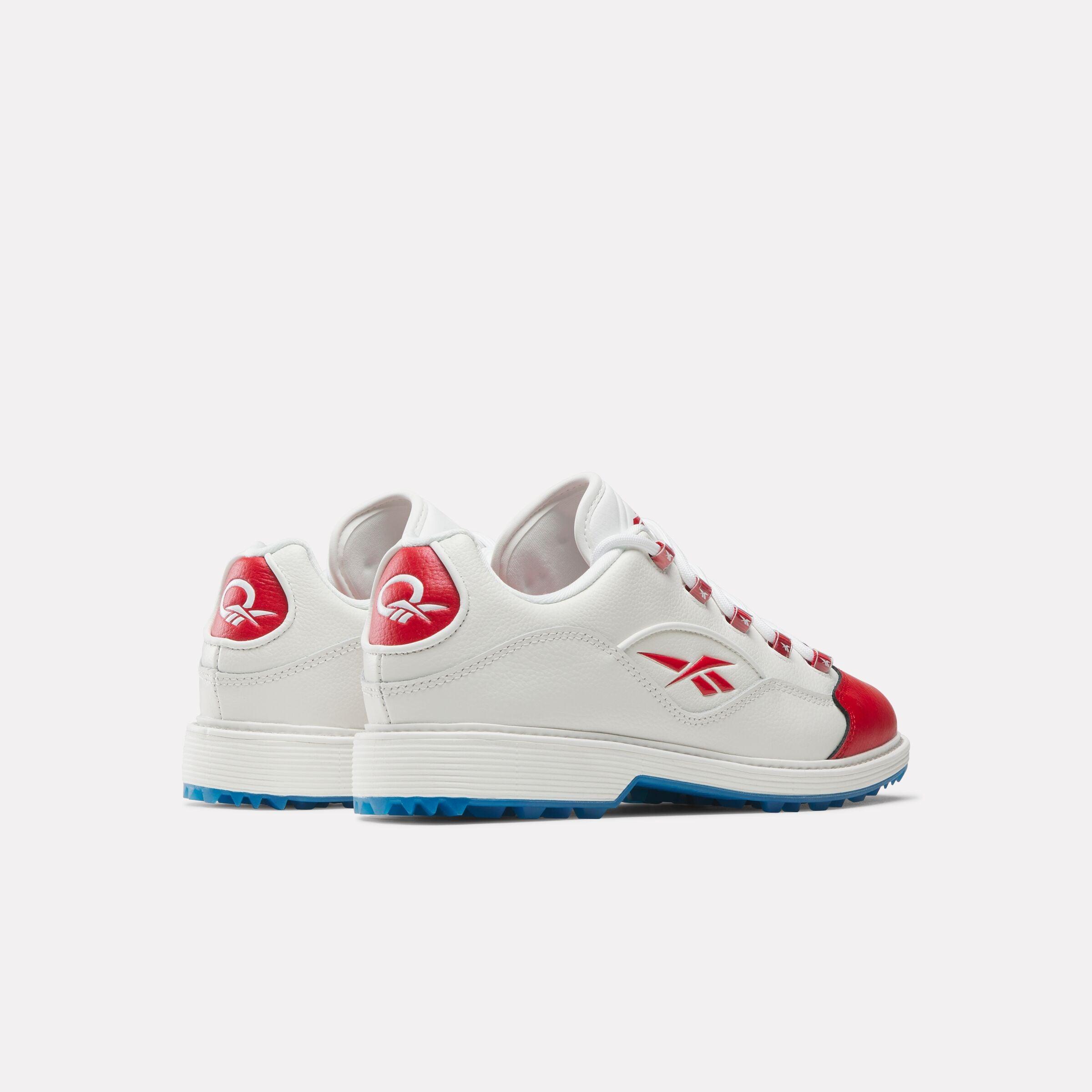 Spikeless golf shoes with a premium design On the course or in the clubhouse, elevate your experience in these Reebok golf shoes. The full grain leather upper has a contrasting leather toe that's inspired by a heritage basketball silhouette. The spikeless crystal outsole makes it easy to transition from the links to the dining room.