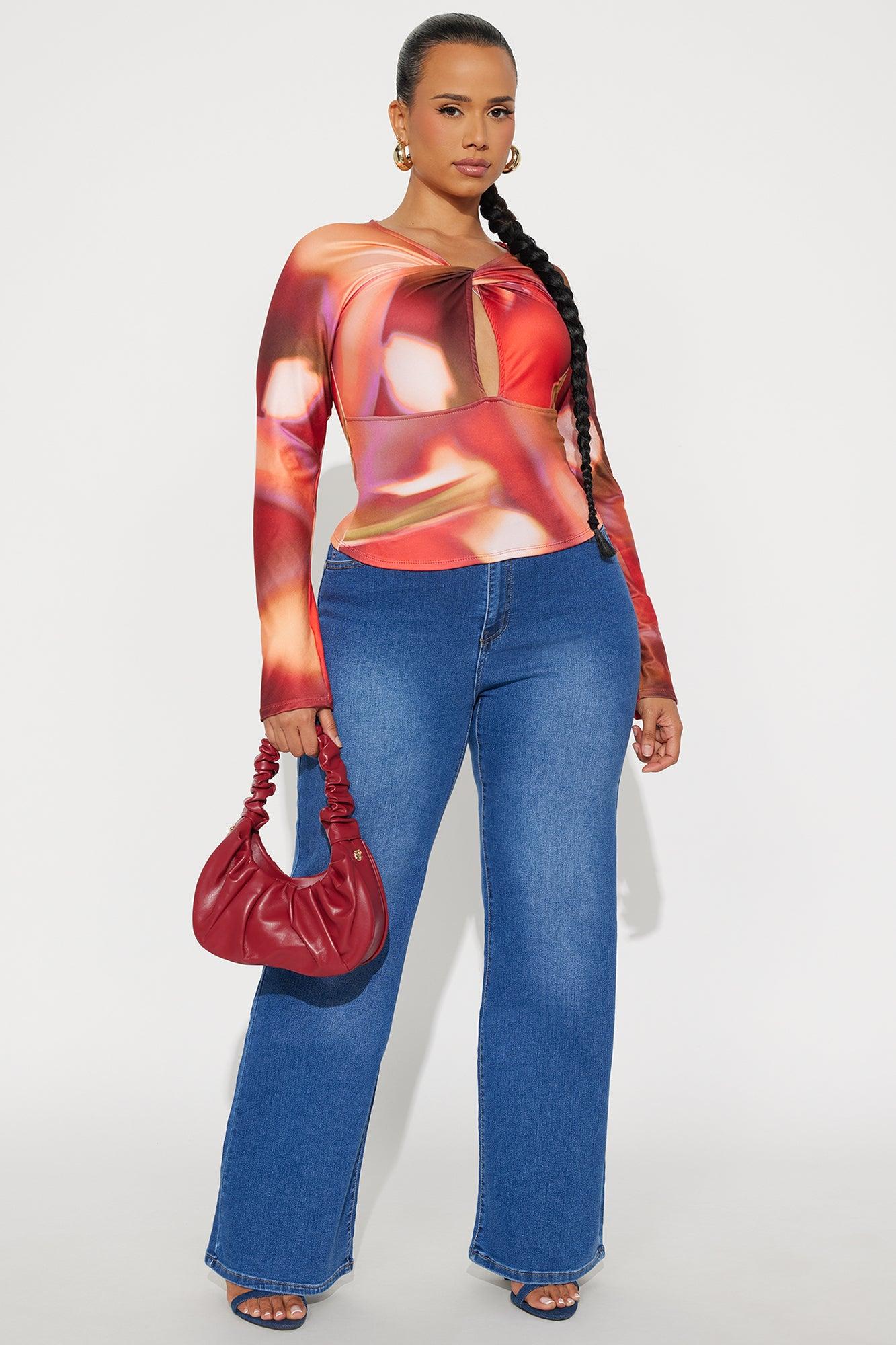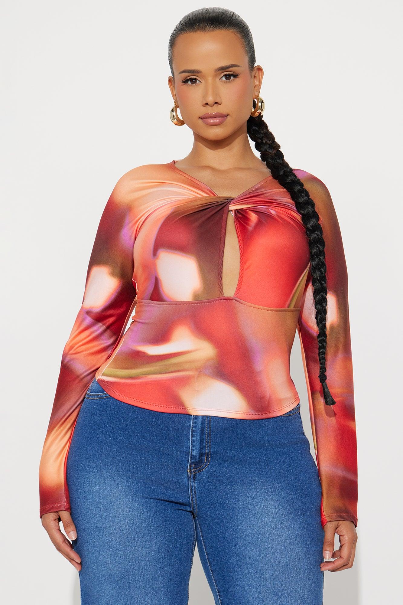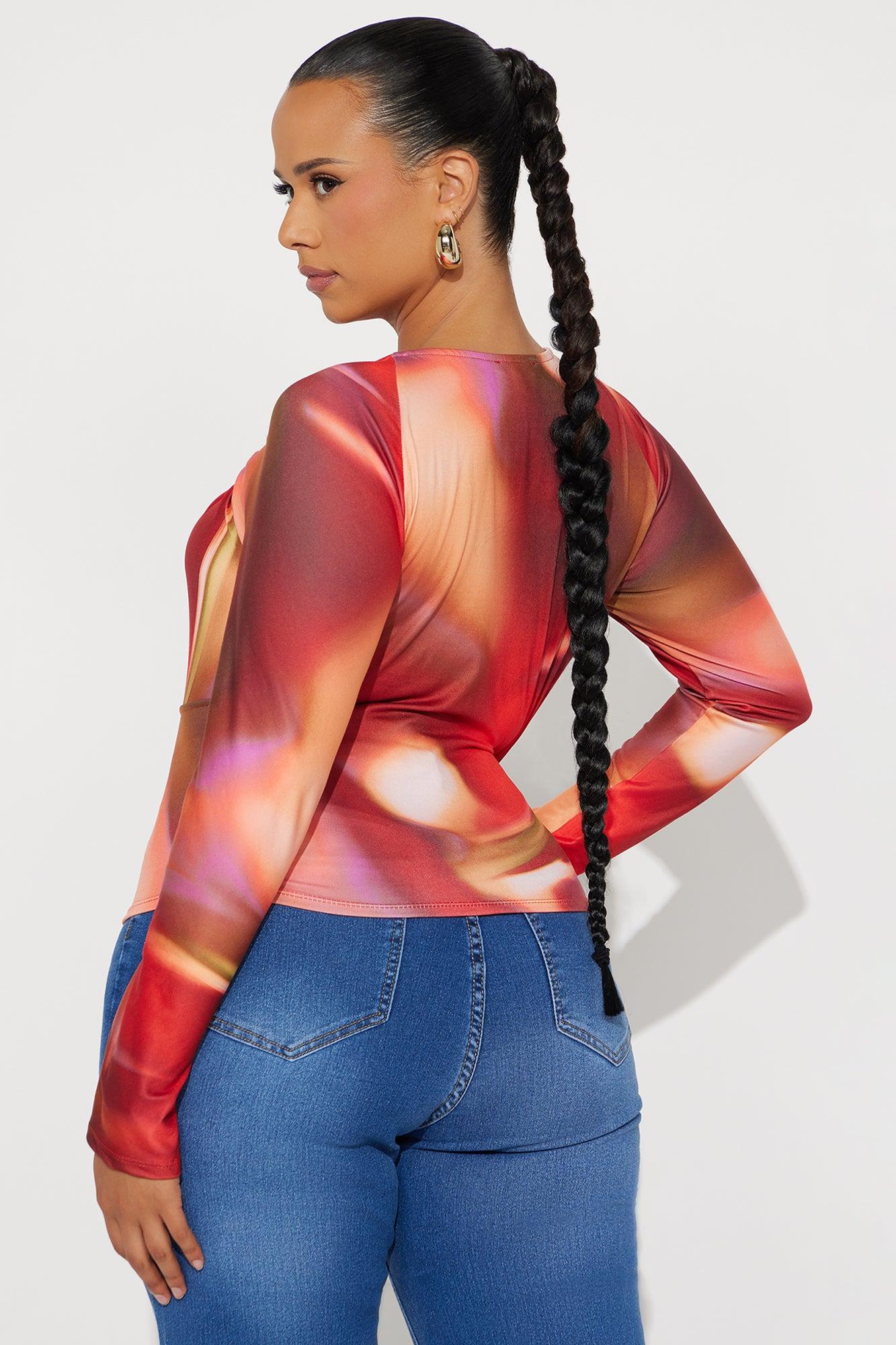 Quick Mix Long Sleeve Cut Out Top - Multi Color Female