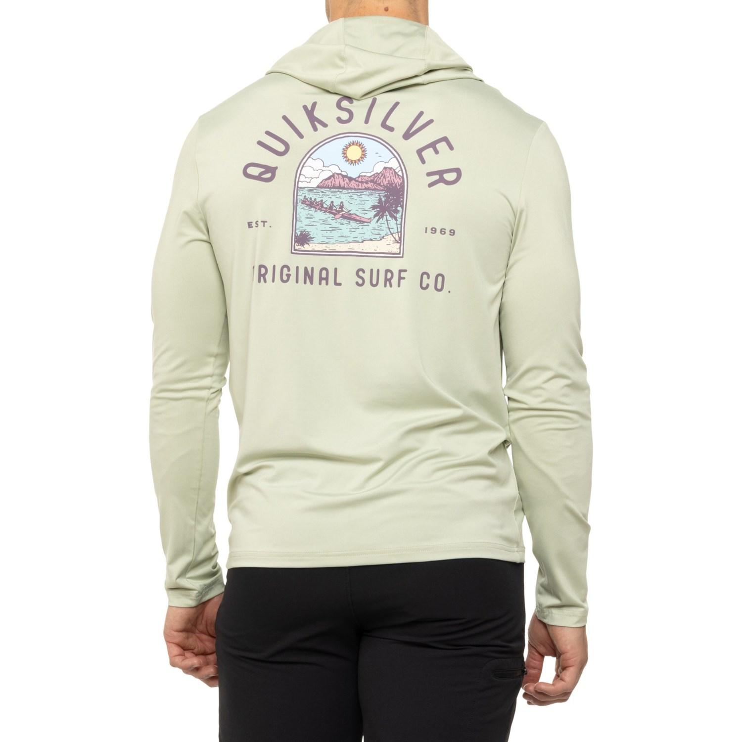 Quiksilver Bathers Graphic Rash Guard Hoodie - UPF 50+ in Light Sage at Sierra. Celebrating 30 Years Of Exploring.