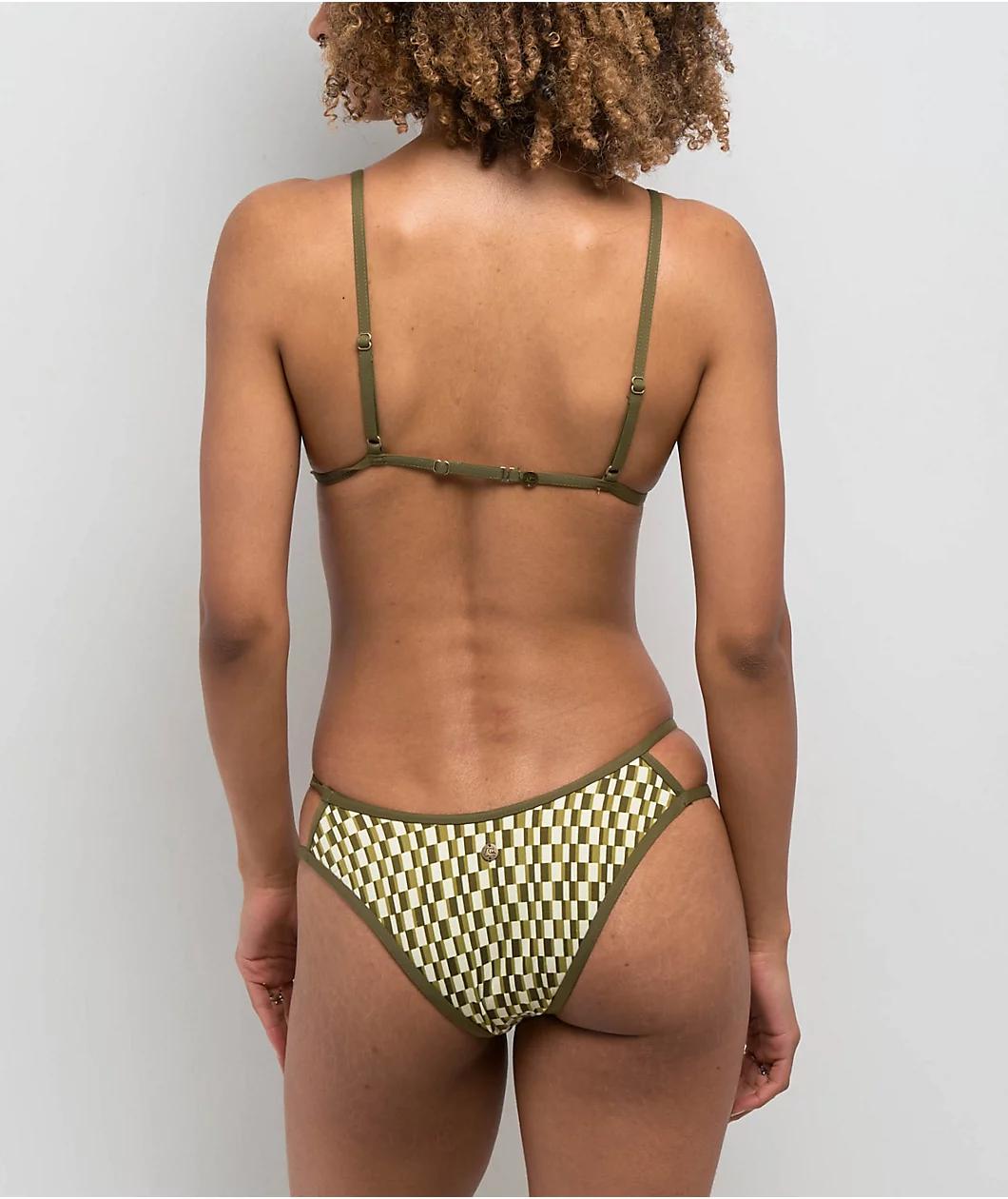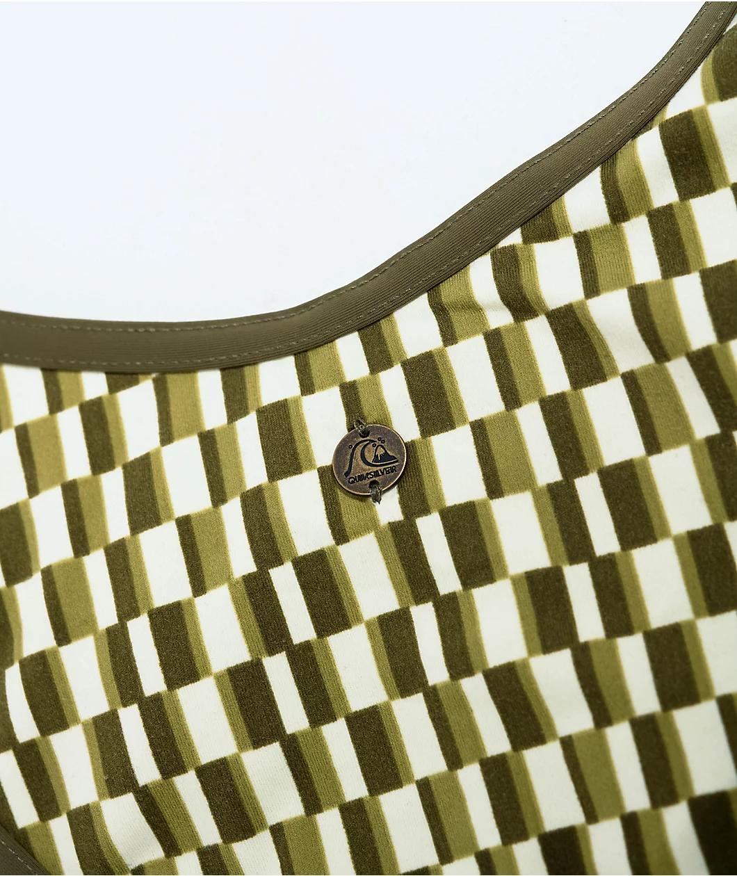 Add a vintage vibe to your beach or pool outfits with the Dylan Tile high leg bikini bottom from Quiksilver. The swim bottoms feature a green and white checker pattern throughout for throwback style. Dual straps at the sides create a unique look and