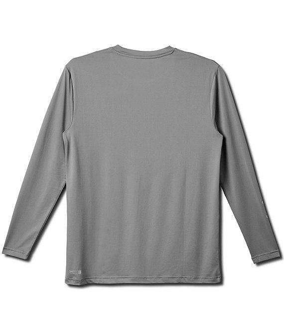 From Quiksilver, this T-shirt features: Regular fit Crew neckline Long sleeves Pullover construction UPF 50 Moisture-wicking and chlorine-resistant fabric Polyester/spandex Machine wash/tumble dry Imported.