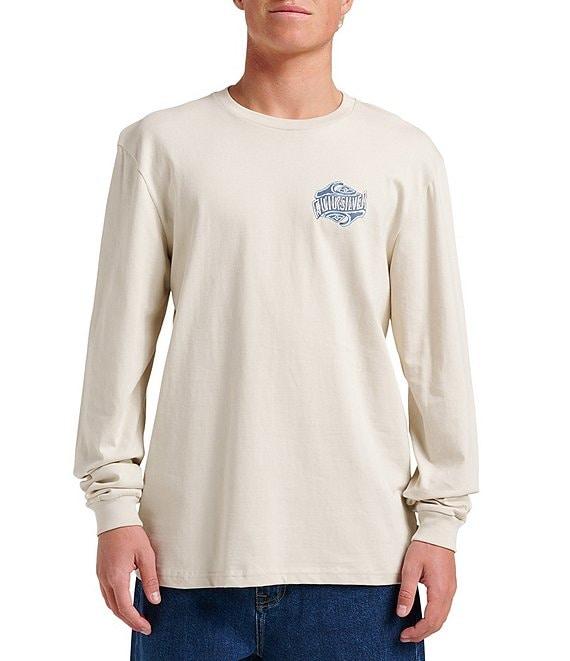 From Quiksilver, this t-shirt features: Crew neckline Long sleeves Graphic with center "Quiksilver" logo on the front Pullover construction Classic, regular fit Soft, comfortable, durable fabric Cotton Machine wash/tumble dry Imported.