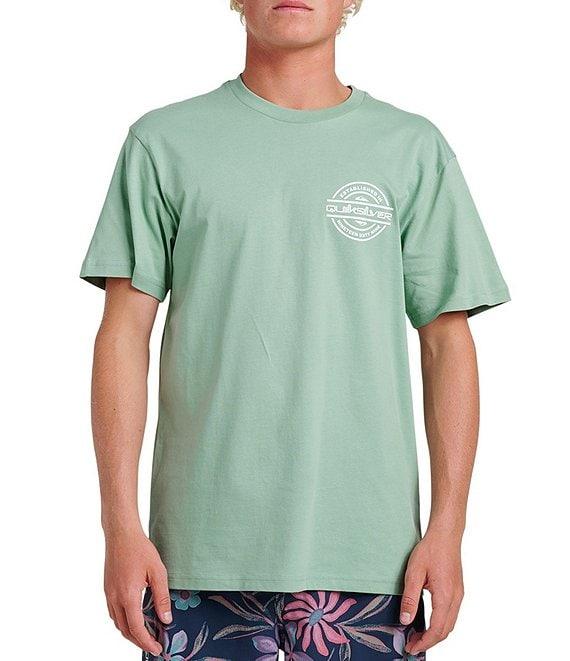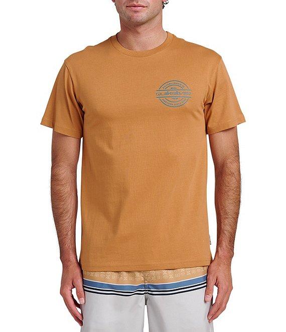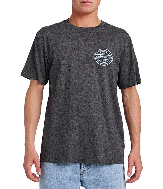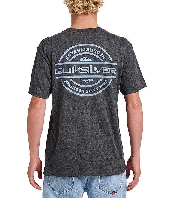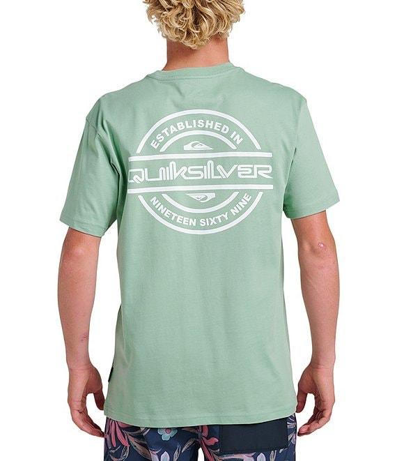 From Quiksilver, this t-shirt features: Crew neckline Short sleeves Circle-shaped graphic with center "Quiksilver" logo, icon logo detail and other verbiage on the front and back Pullover construction Cotton knit Machine wash/tumble dry Imported.