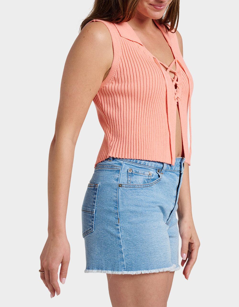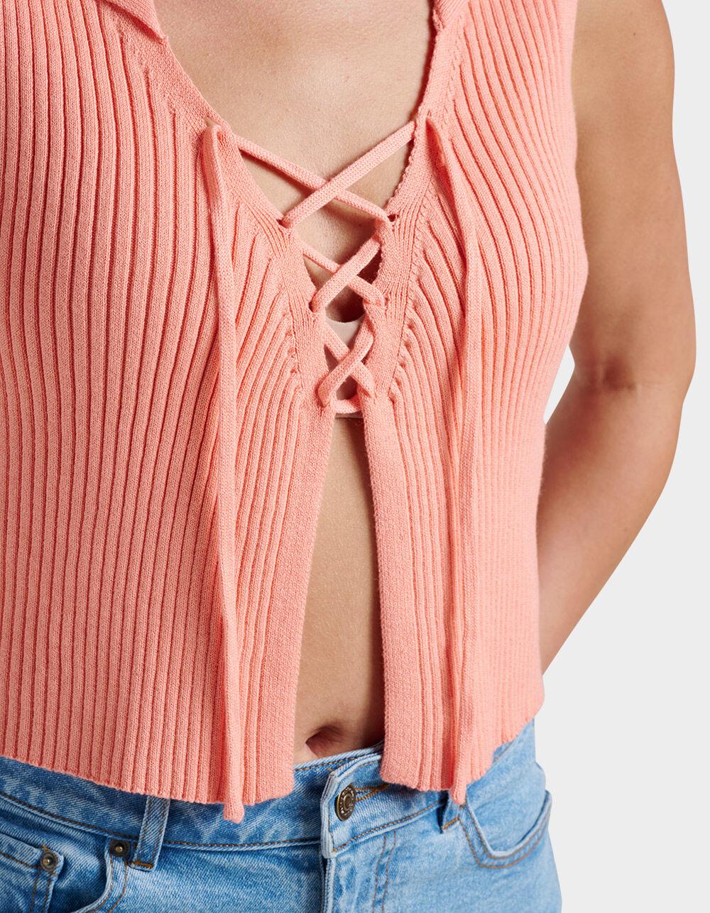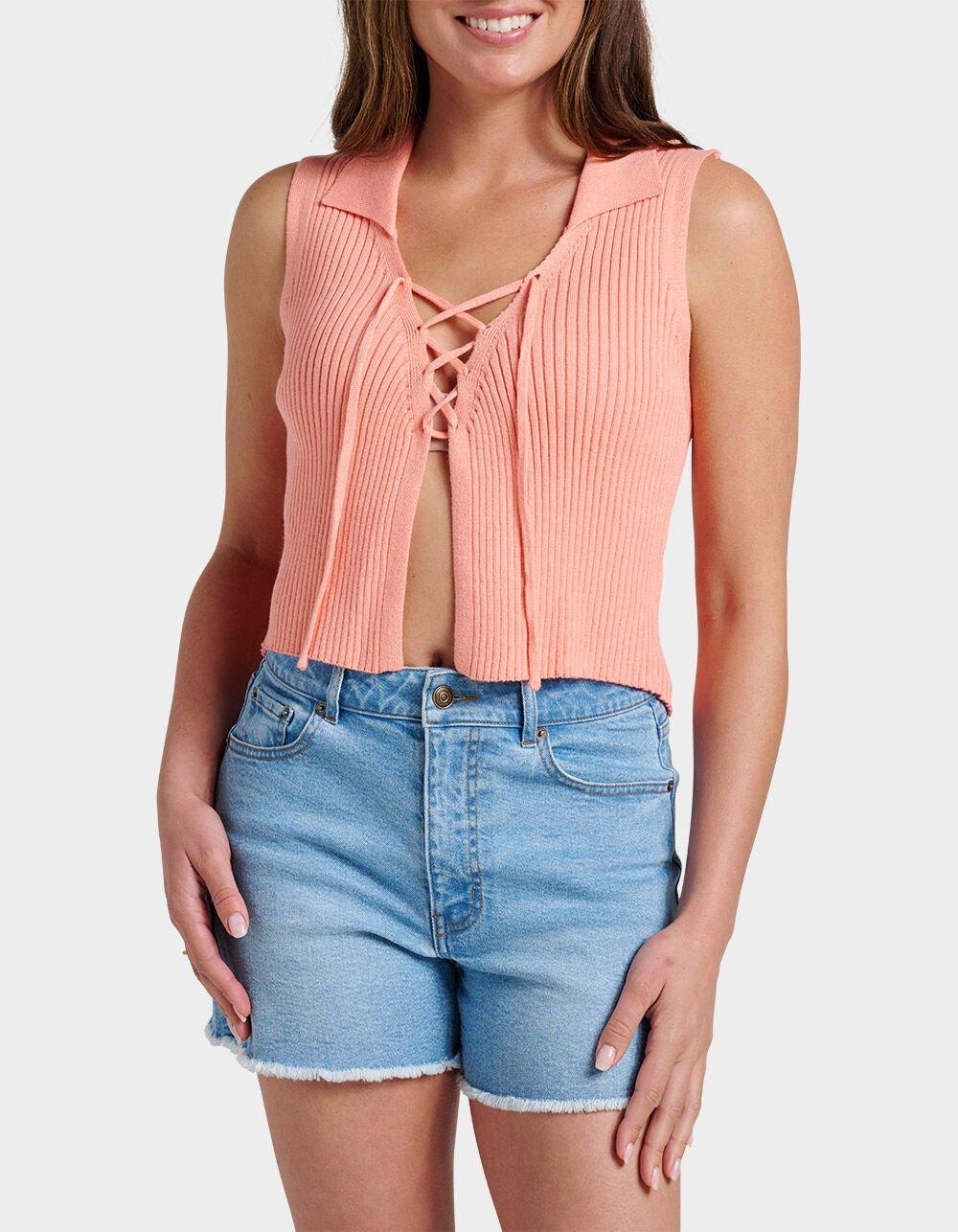 Add a touch of modern edge to your wardrobe with the Sandbar sleeveless lace up sweater. The lace up front detail brings a bold yet feminine twist, making it a standout piece for any wardrobe and delivers effortless style for any occasion. 54% Cotton, 46% Viscose. Hand wash cold, dry flat, do not bleach.This item is may take a few extra days to process. All other products in your order will be shipped separately.