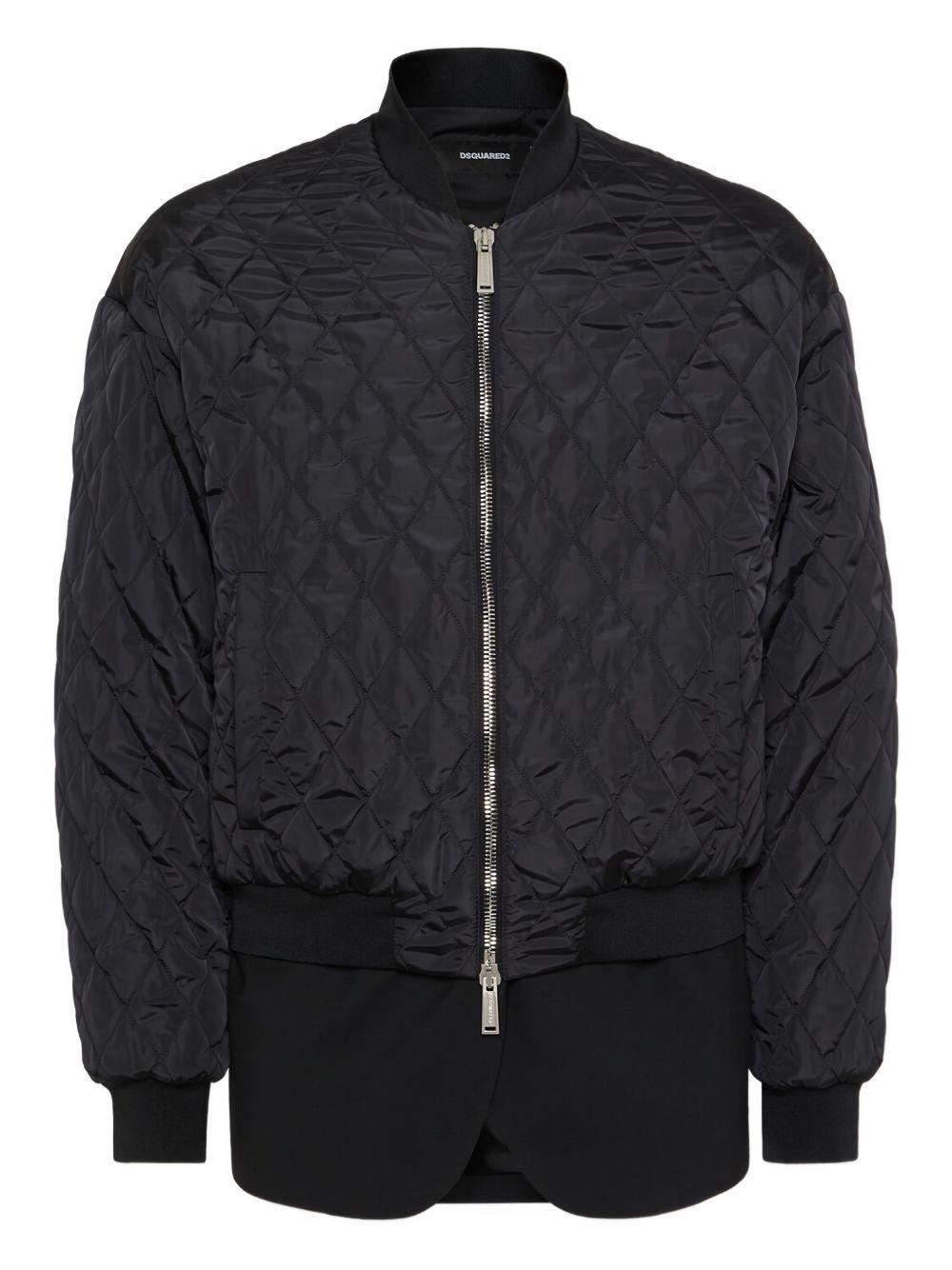 DSQUARED2 quilted bomber jacket | Black | black | diamond quilting | zip fastening | ribbed hem | layered blazer | bomber collar | Polyester/Virgin Wool/Spandex/Elastane | Bomber Jackets | Jackets | Clothing | Men