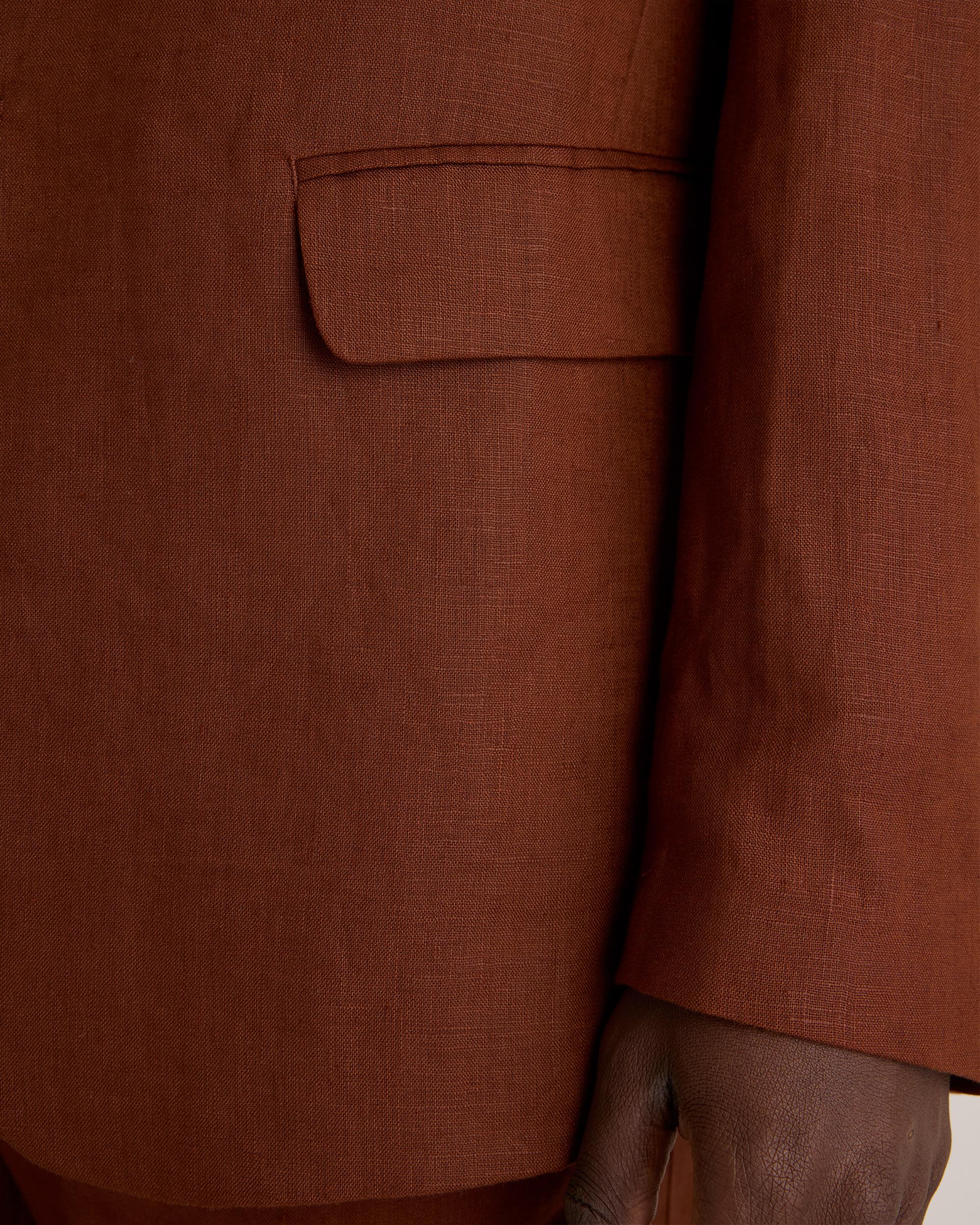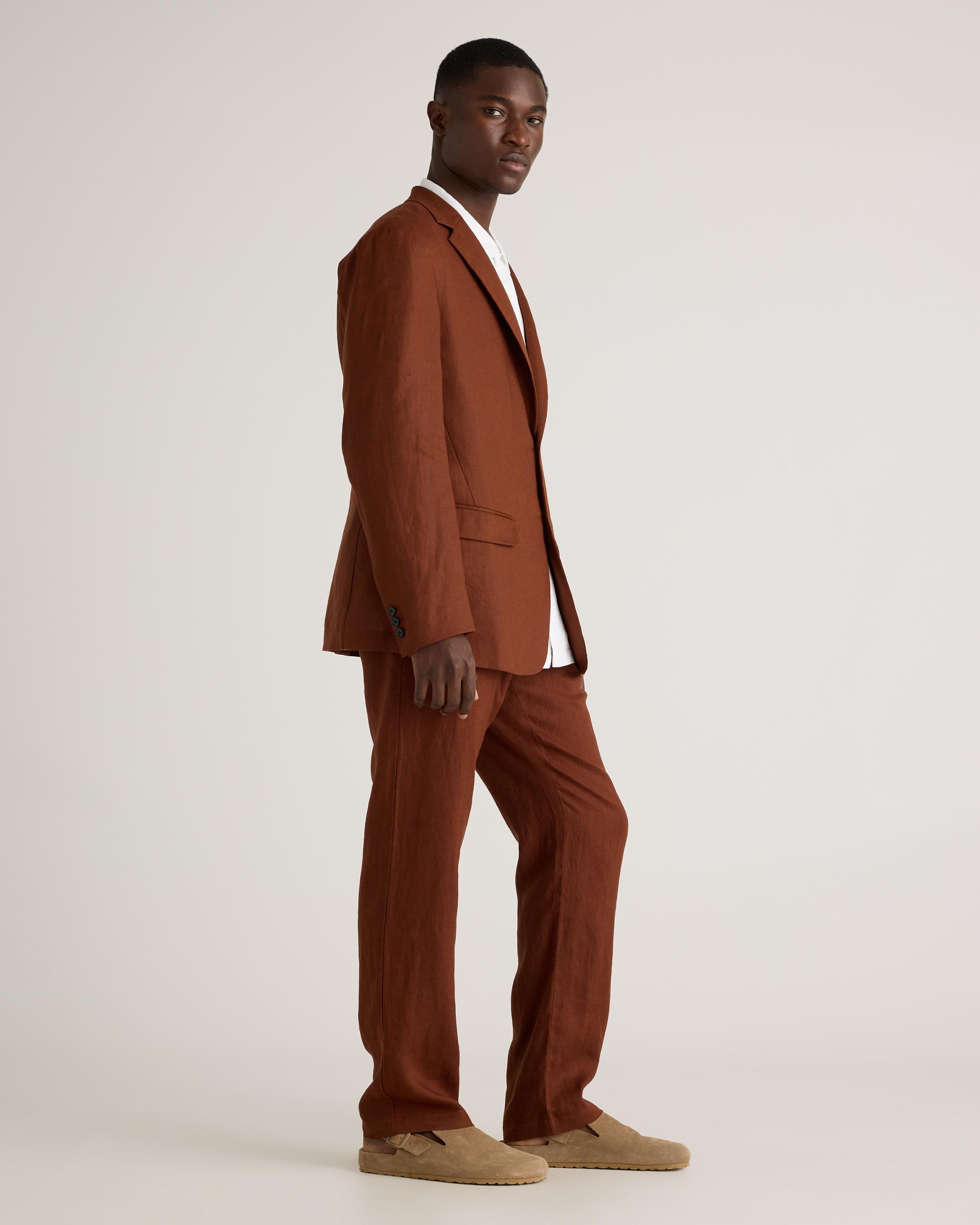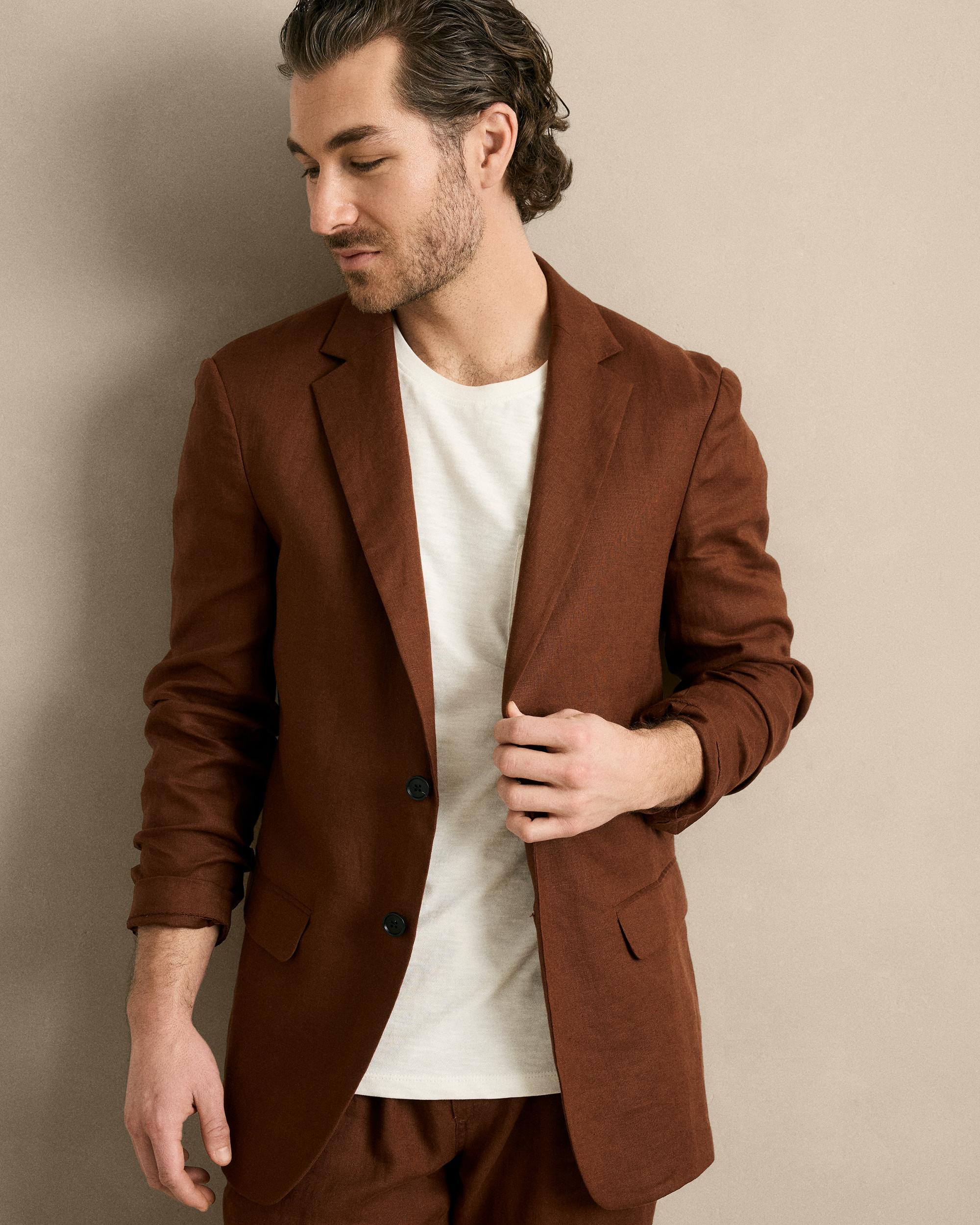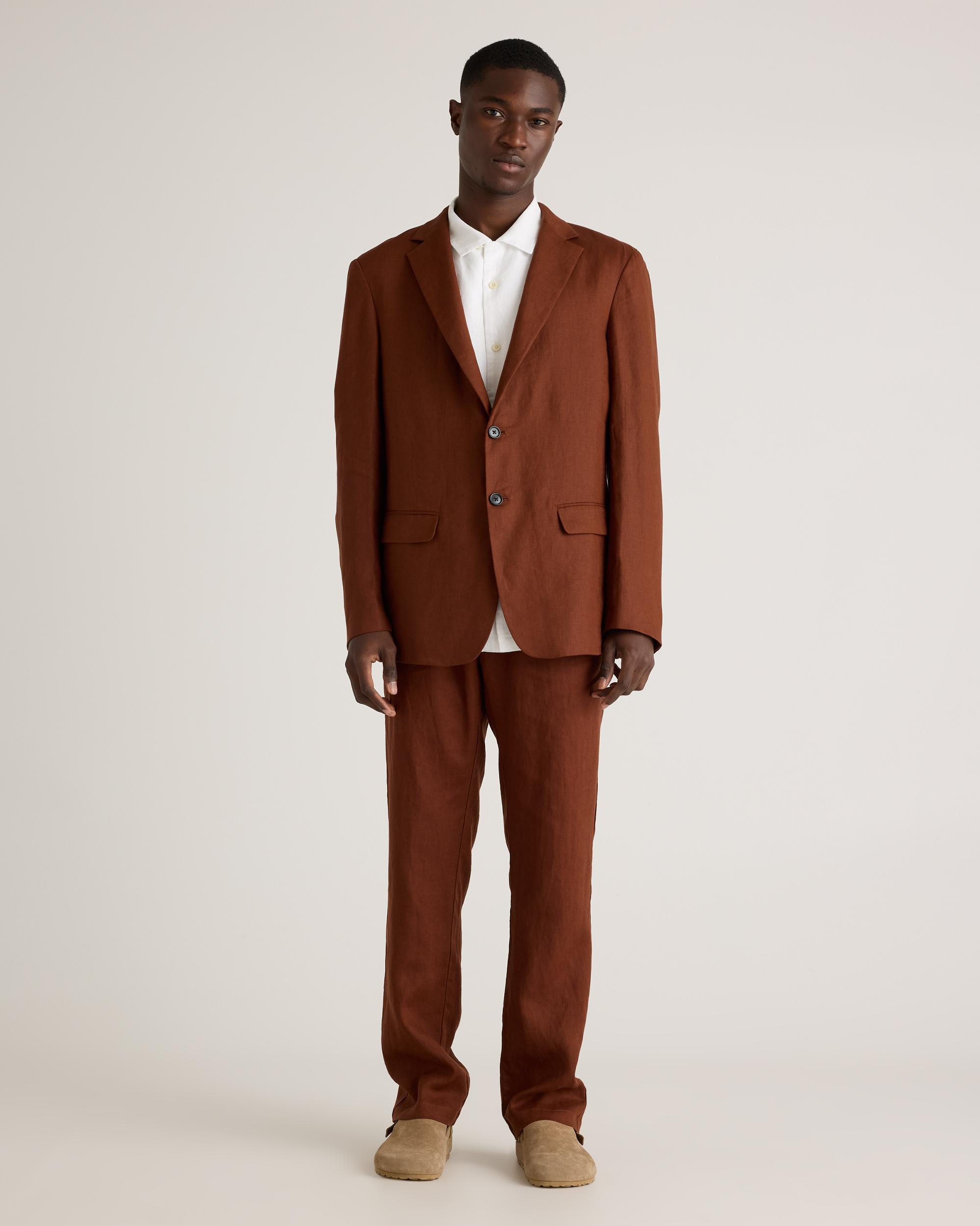 A wardrobe staple that’s all-day comfortable. Wear our 100% European Linen Blazer every day, everywhere…with shorts and a polo…khakis…jeans and a t-shirt…or even with sporty joggers. Prepare to be surprised by just how versatile (and light, and breathable) this classic really is. | Quince | Men's 100% European Linen Blazer in Chocolate, Size XL