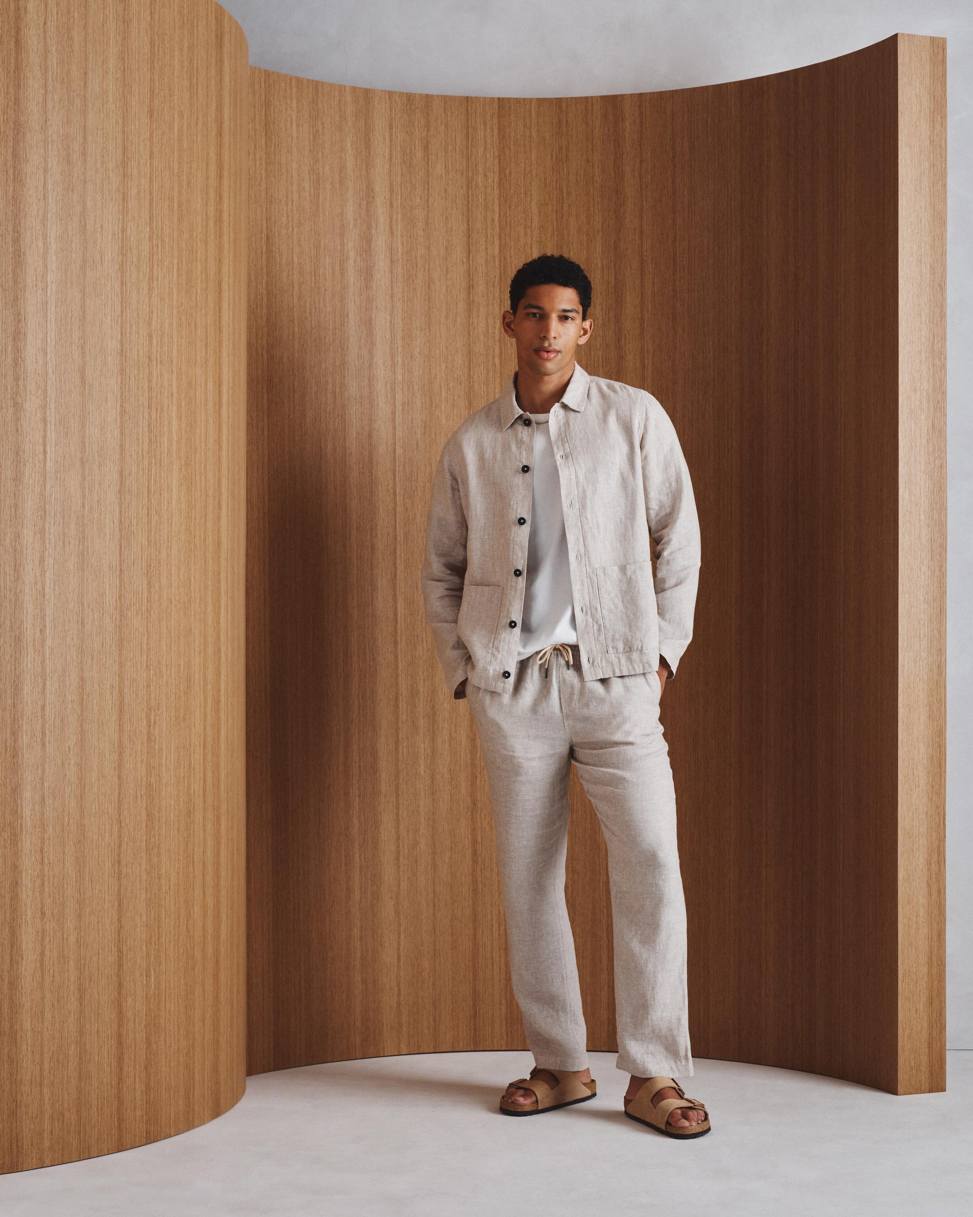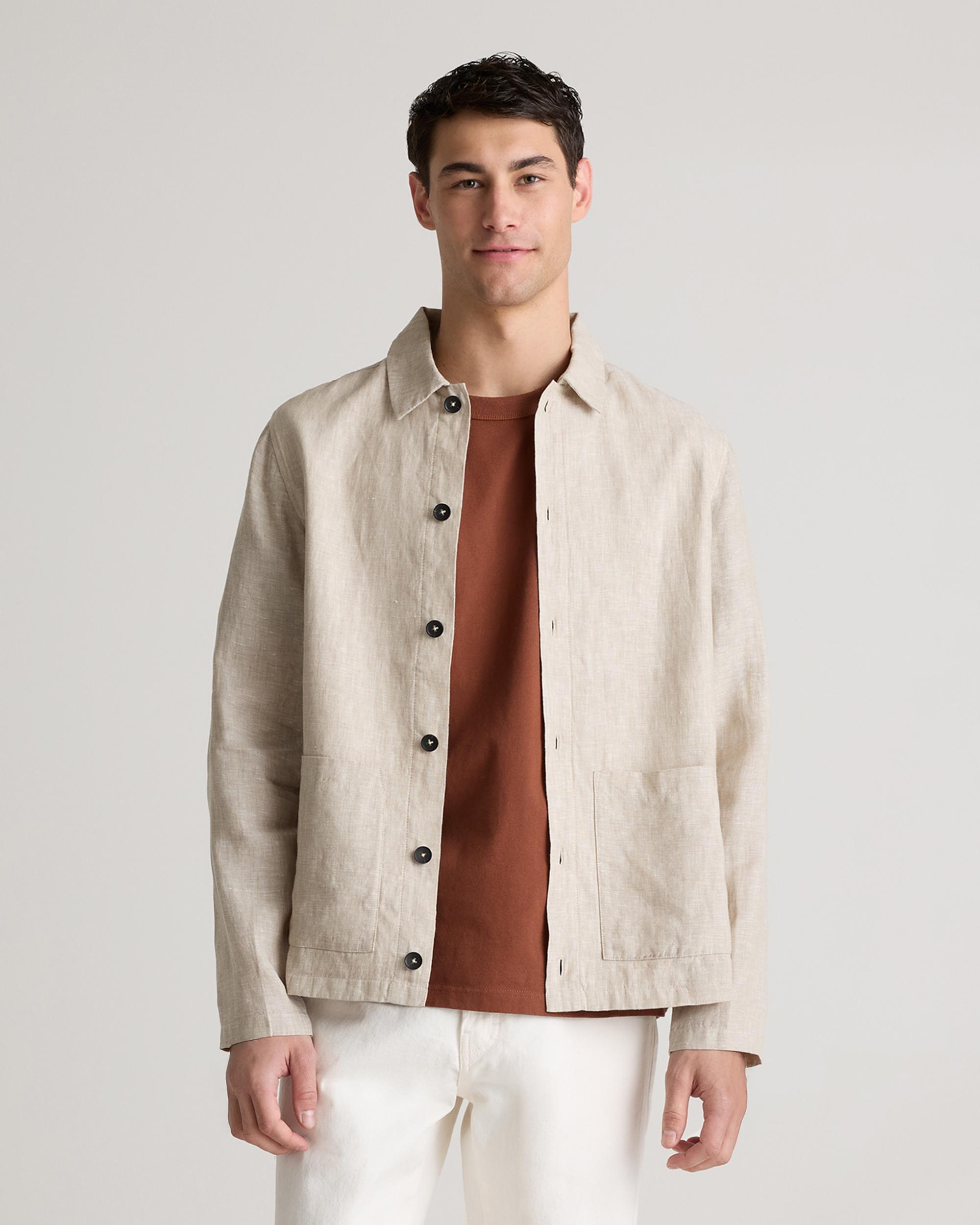 Meet the perfect layering piece for your summer wardrobe. Made from the highest-quality flax and responsibly sourced from Europe, our 100% Linen Shirt Jacket is lightweight, breathable, and comfortable to wear in warm weather. Incredibly versatile, this shirt jacket is designed to be worn layered over a t-shirt or on its own as a standalone shirt. Bonus: our linen fabric is also highly durable, ensuring that this piece will last for many seasons to come. | Quince | Men's 100% European Linen Shirt Jacket in Flax, Size Medium