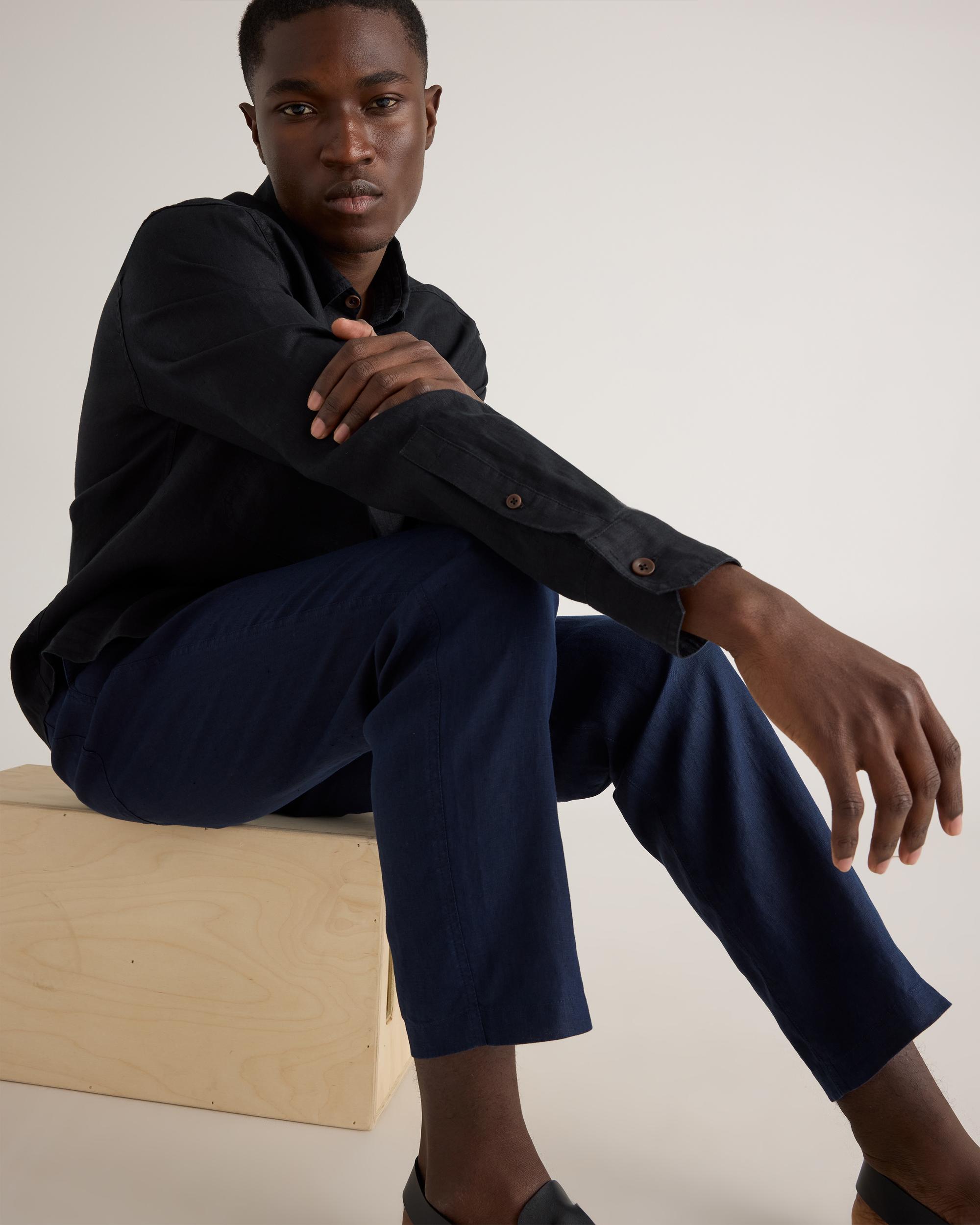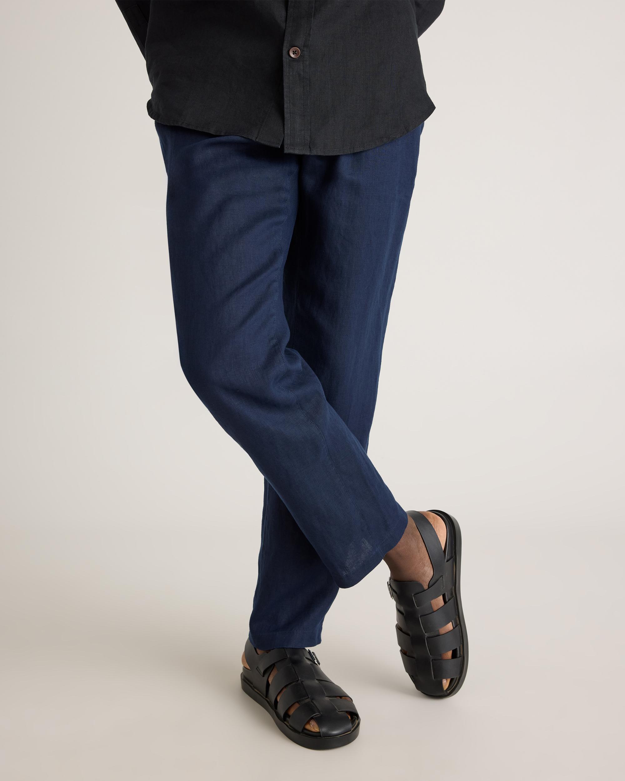 Our 100% European Linen Drawstring Beach Pants is the perfect addition to your summer wardrobe. Made from the highest quality linen and sustainably sourced from Europe, these pants are lightweight, breathable, and comfortable to wear in warm weather, and the drawstring waistband allows for a customizable fit. The timeless design and natural fabric make these pants a versatile and sustainable choice for any summer outfit. Bonus: our linen fabric is also highly durable, ensuring that these pants will last for many seasons to come. | Quince | Men's 100% European Linen Drawstring Beach Pants in Deep Navy, Size Large