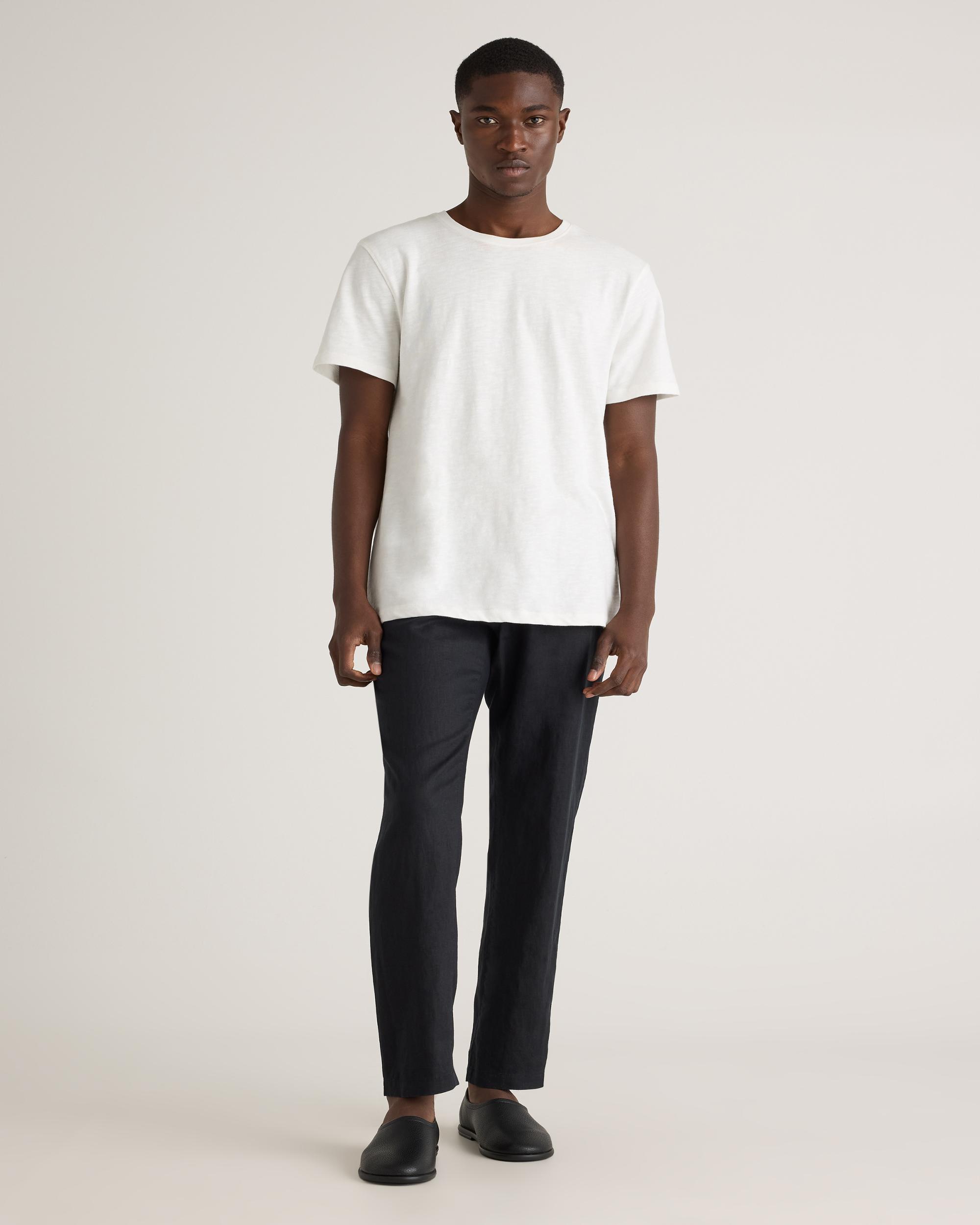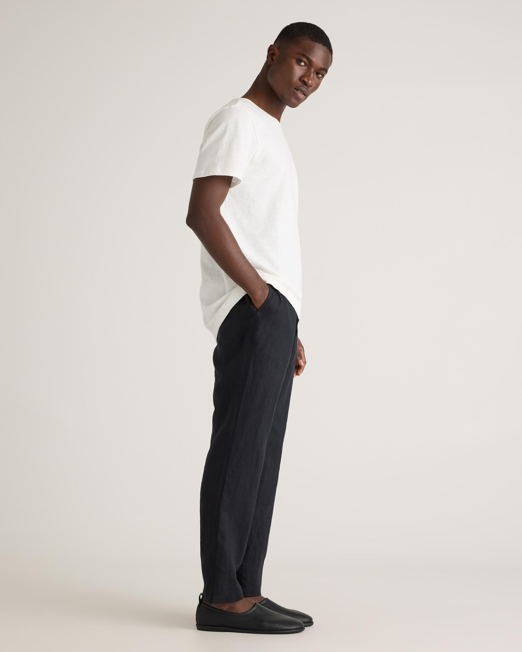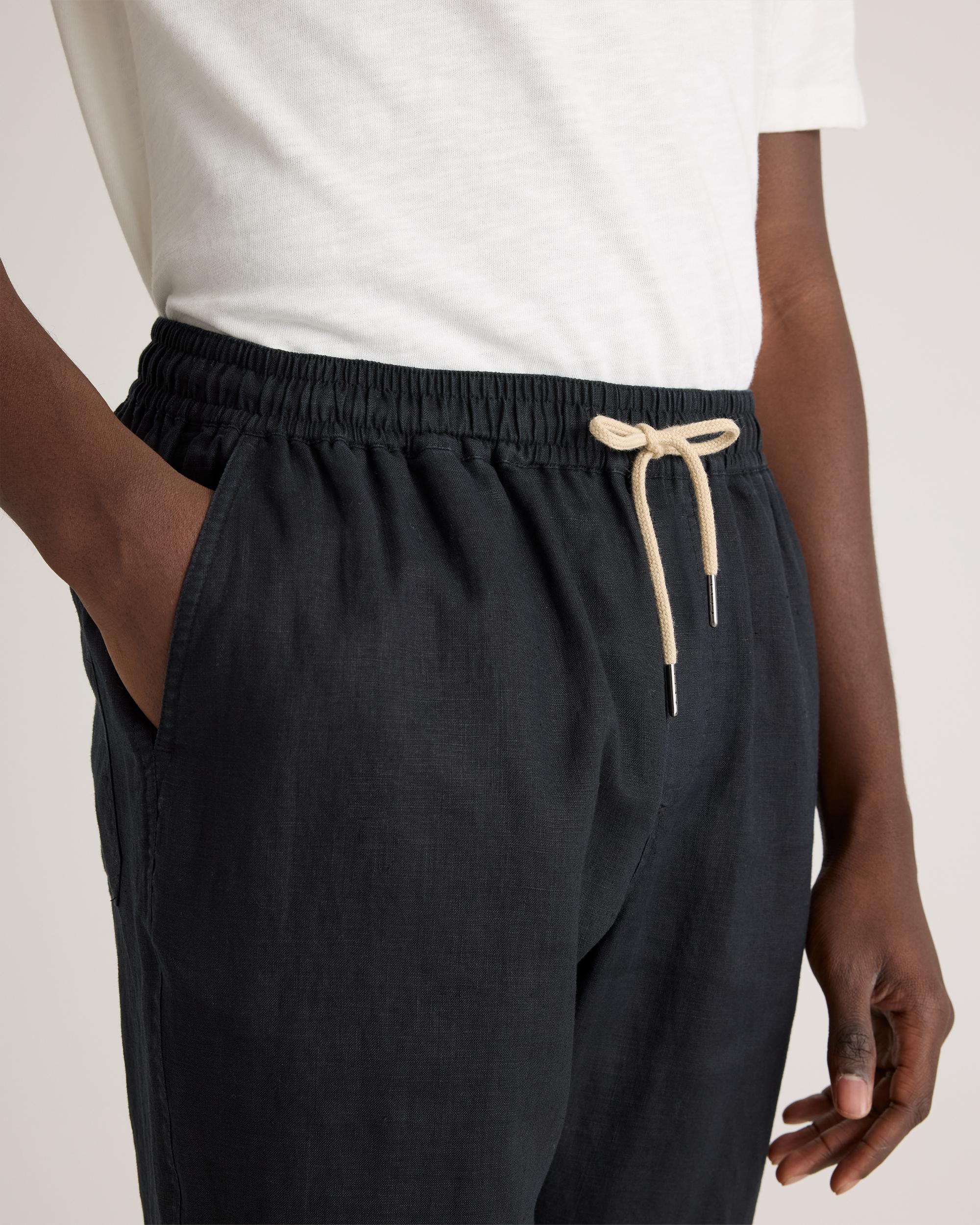 Our 100% European Linen Drawstring Beach Pants is the perfect addition to your summer wardrobe. Made from the highest quality linen and sustainably sourced from Europe, these pants are lightweight, breathable, and comfortable to wear in warm weather, and the drawstring waistband allows for a customizable fit. The timeless design and natural fabric make these pants a versatile and sustainable choice for any summer outfit. Bonus: our linen fabric is also highly durable, ensuring that these pants will last for many seasons to come. | Quince | Men's 100% European Linen Drawstring Beach Pants in Black, Size Medium