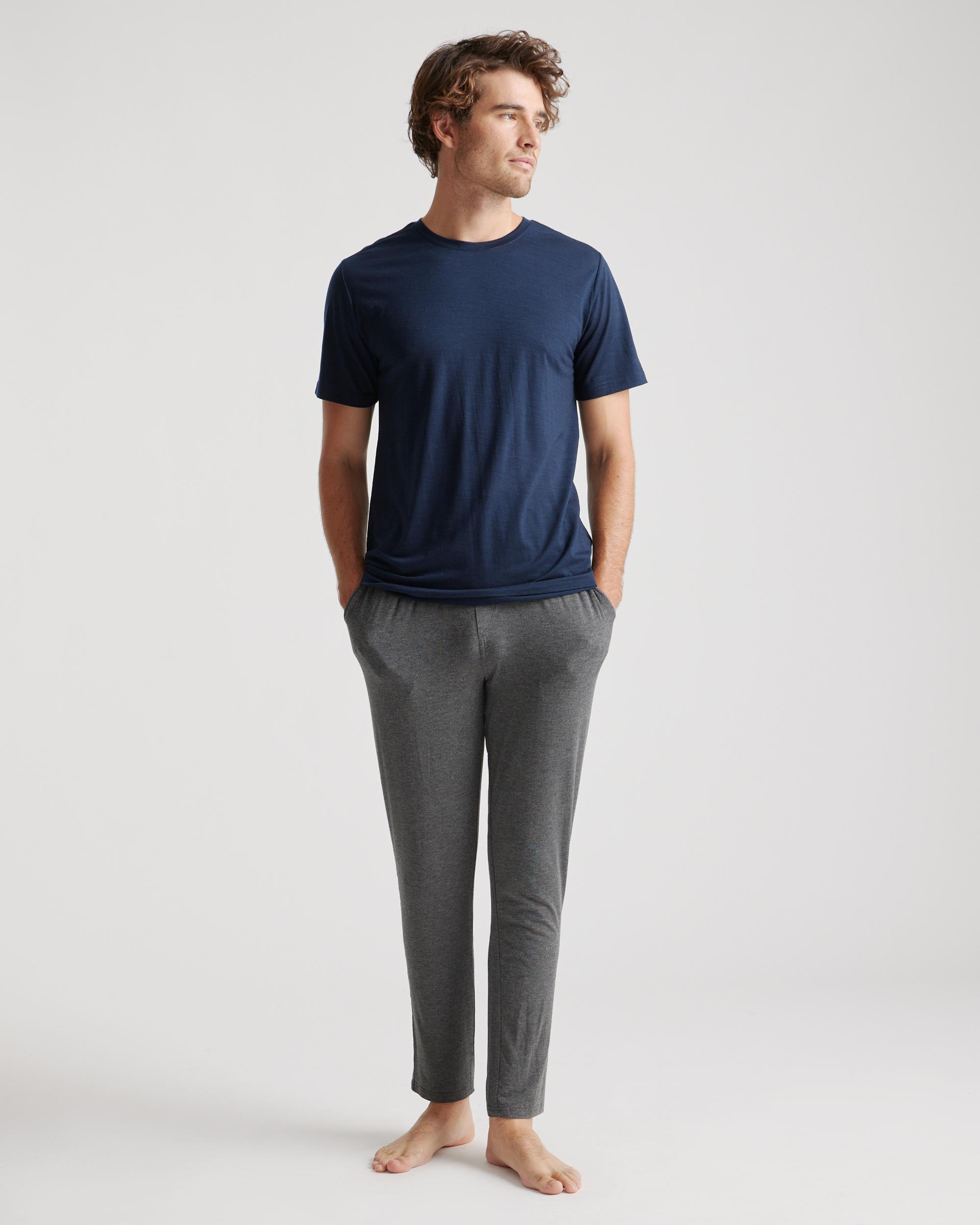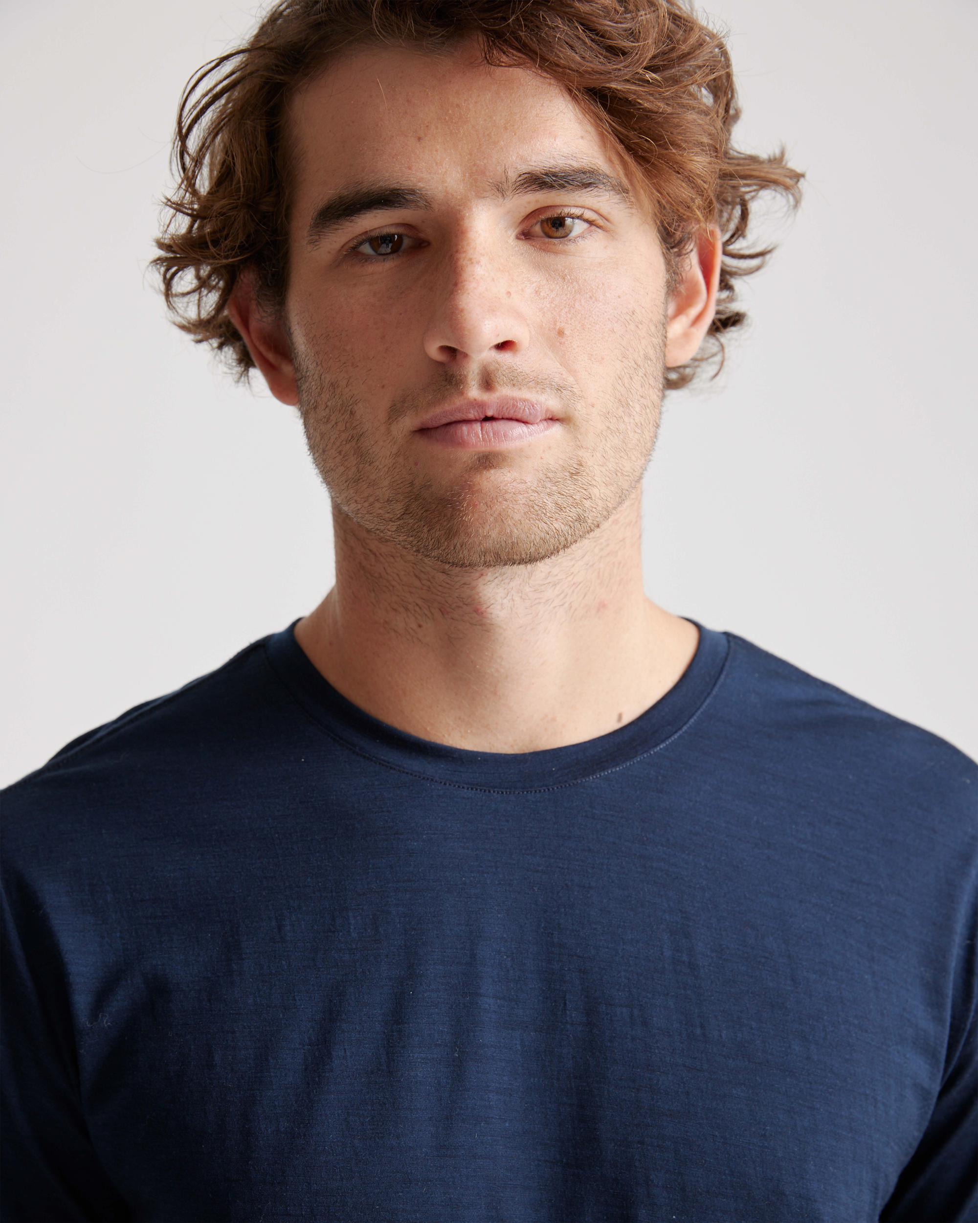 This versatile merino tee is a true all-season all-star. Merino is naturally heat-regulating, so it will help you stay warm in winter and cool in summer. And with its natural elasticity, you'll feel comfortable all day no matter what you're doing. The benefits of merino are plentiful: it's biodegradable and renewable for lessened environmental impact; wrinkle- and UV-resistant for long-lasting low maintenance; and naturally breathable for comfort. | Quince | Men's 100% Merino Wool All-Season Short Sleeve Base Layer T-Shirt in Navy, Size Small, Merino/Cotton