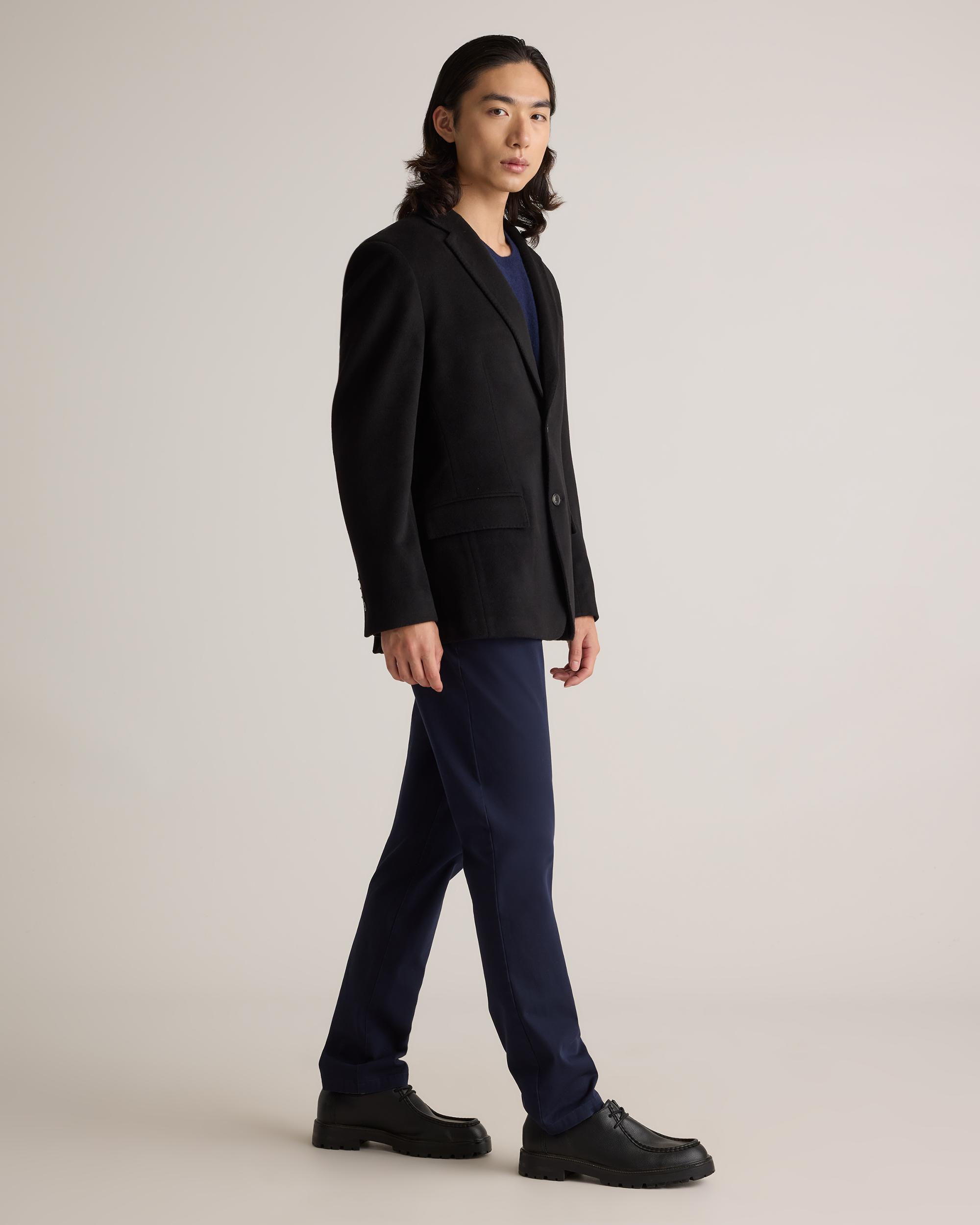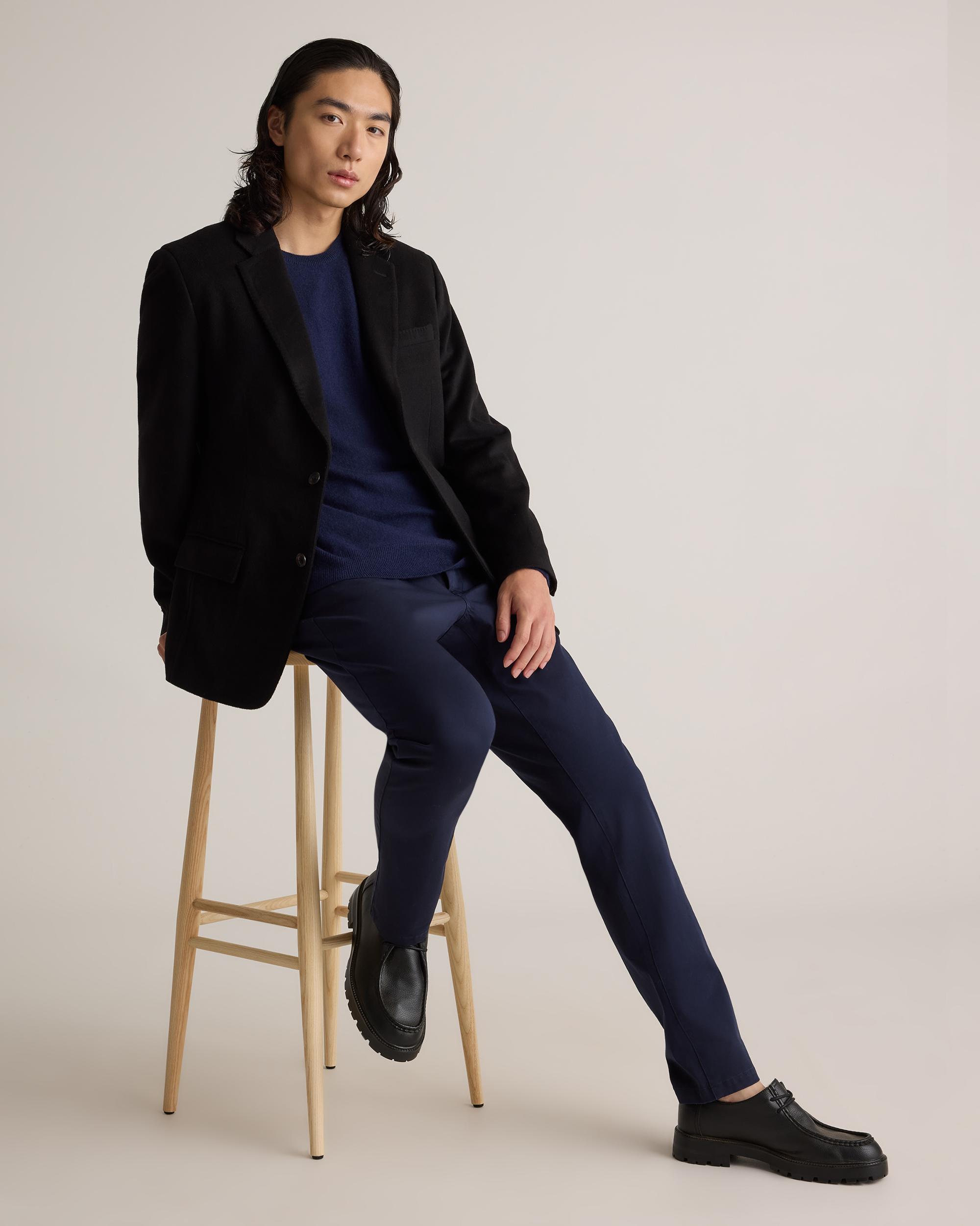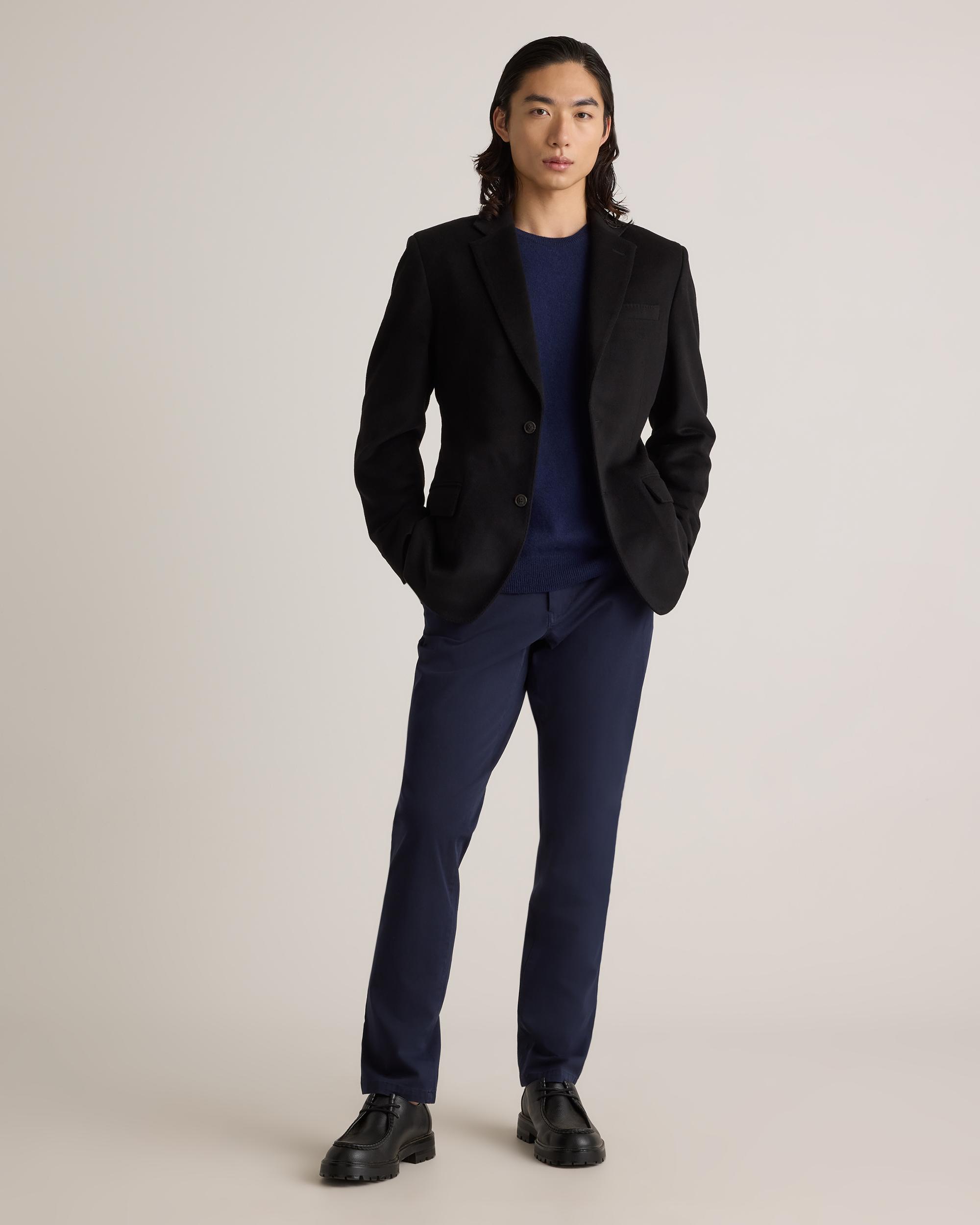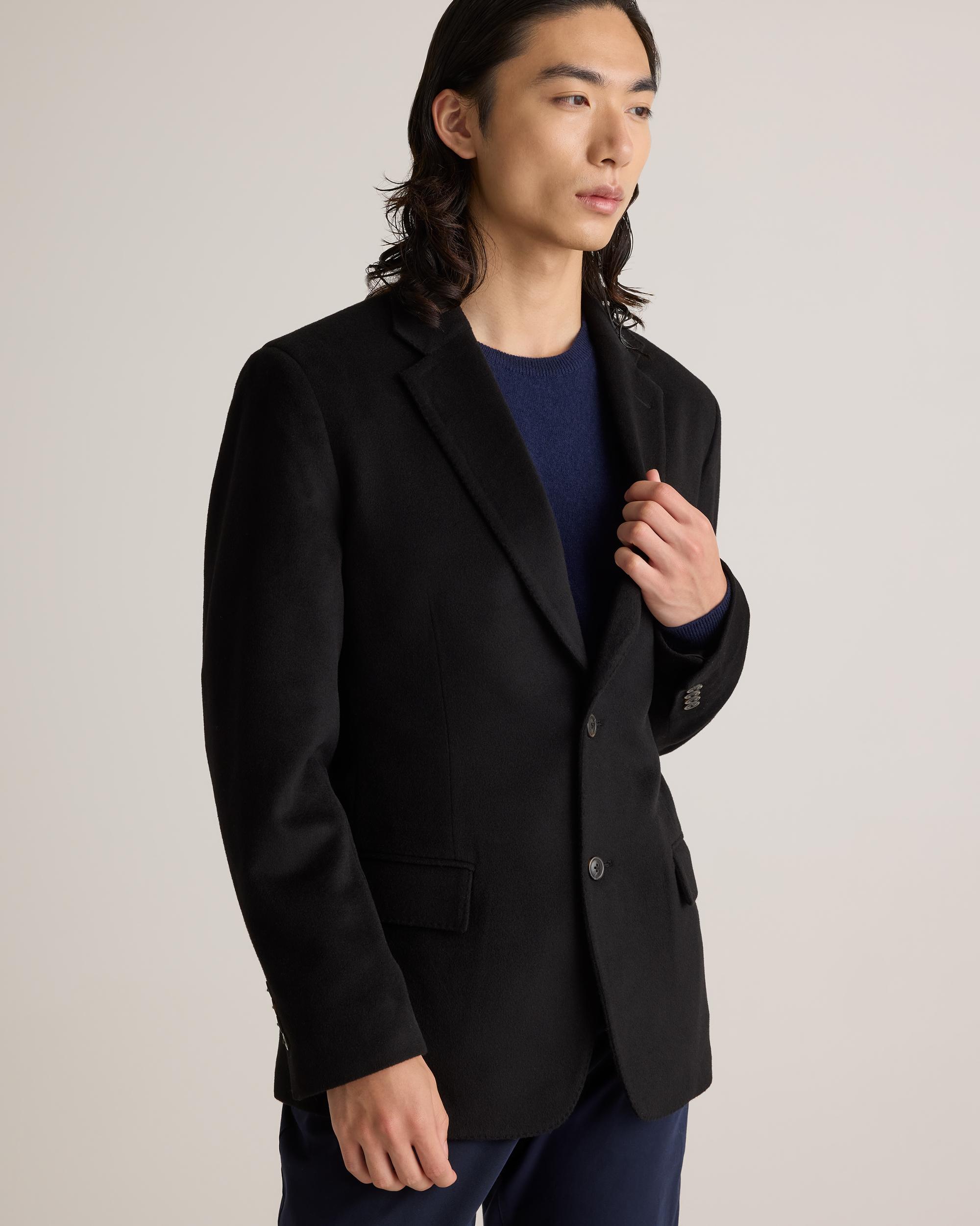 Introducing our luxurious 100% Mongolian Cashmere Blazer, where timeless elegance meets unparalleled comfort. Crafted from the finest Mongolian cashmere, this blazer is the epitome of sophistication. The rich texture and natural sheen of the cashmere add a touch of refinement, making it perfect for both formal and smart-casual occasions. Whether paired with a crisp dress shirt for a polished look or layered over a turtleneck for a more relaxed vibe, this cashmere blazer is a versatile addition to any wardrobe. | Quince | Men's 100% Mongolian Cashmere Blazer in Black, Size Large