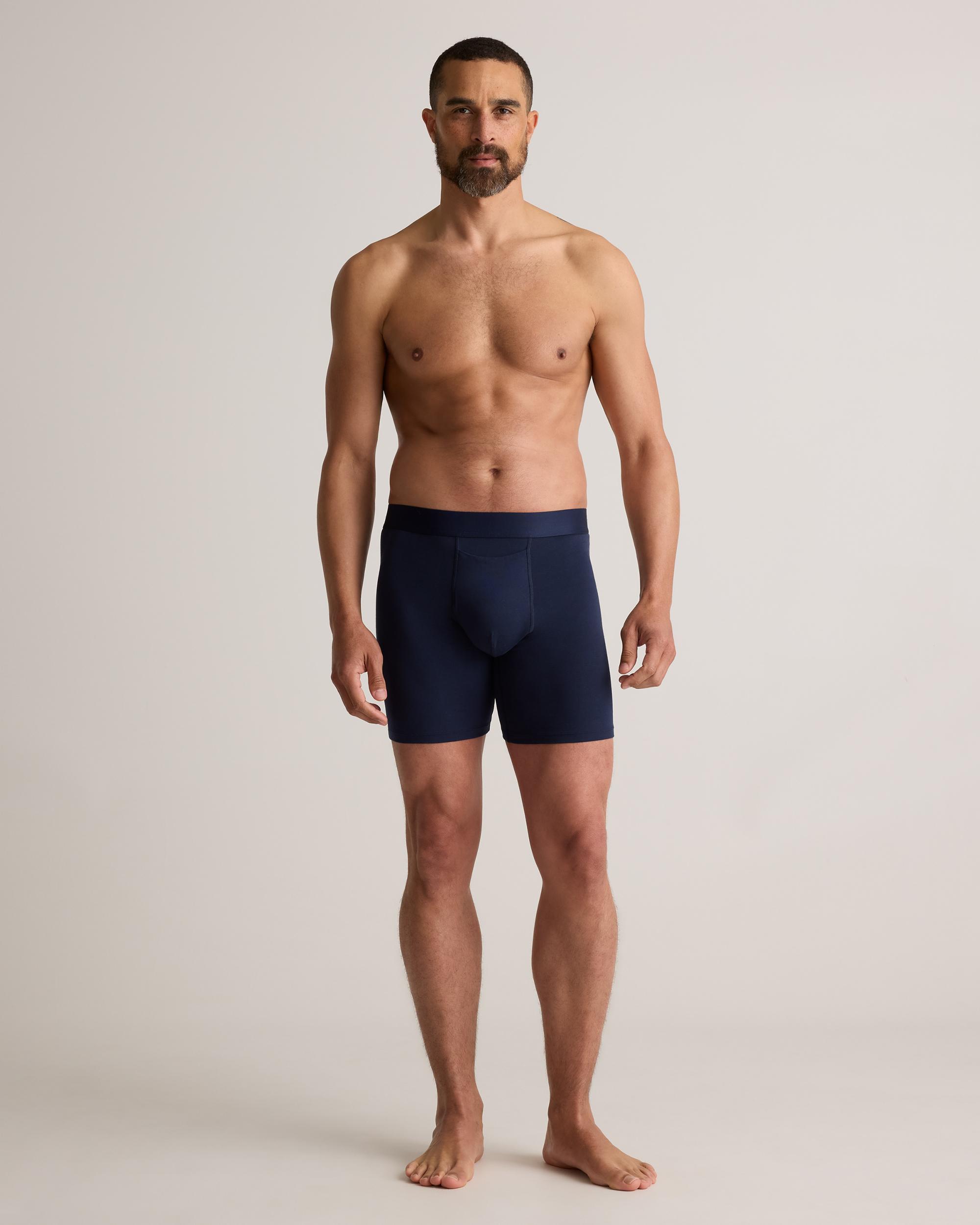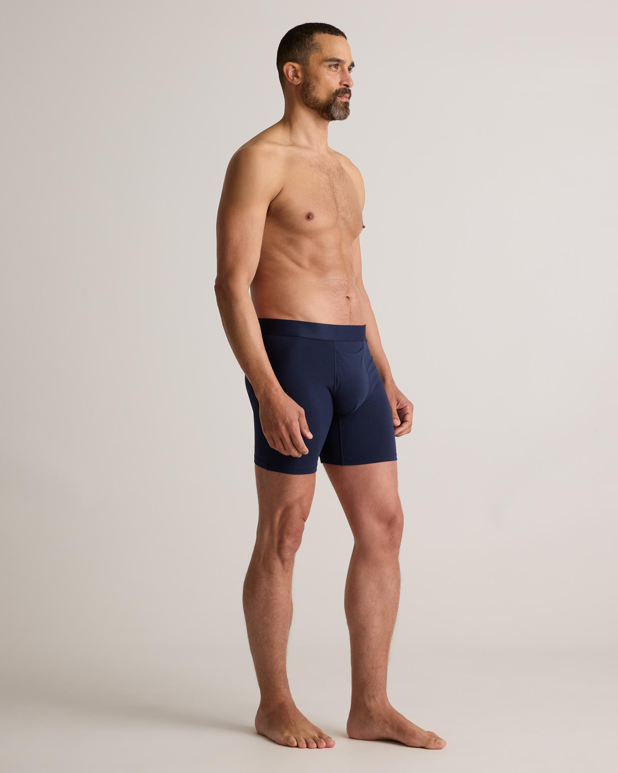 Slip into your new favorite everyday underwear. Made with OCS-certified organic cotton, our Organic Cotton 6'' Boxer Brief is soft and comfortable with just the right amount of coverage. We also added a no-roll elastic waistband so you don't have to worry about any rolling, pinching, or bunching. Made for daily wear, these boxer briefs are the perfect foundation for any outfit. | Quince | Men's 6'' Boxer Brief in Navy, Size Small, Organic Cotton