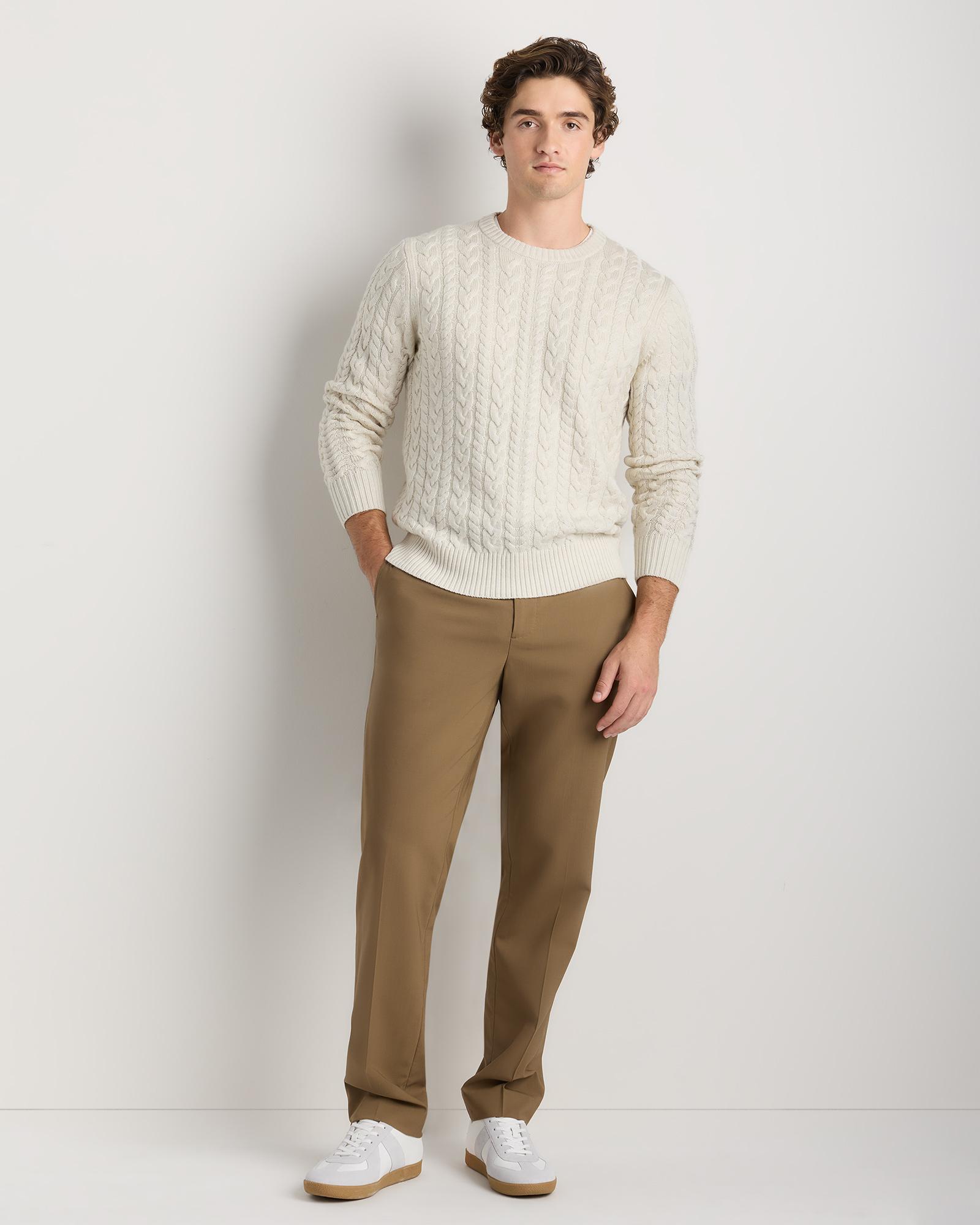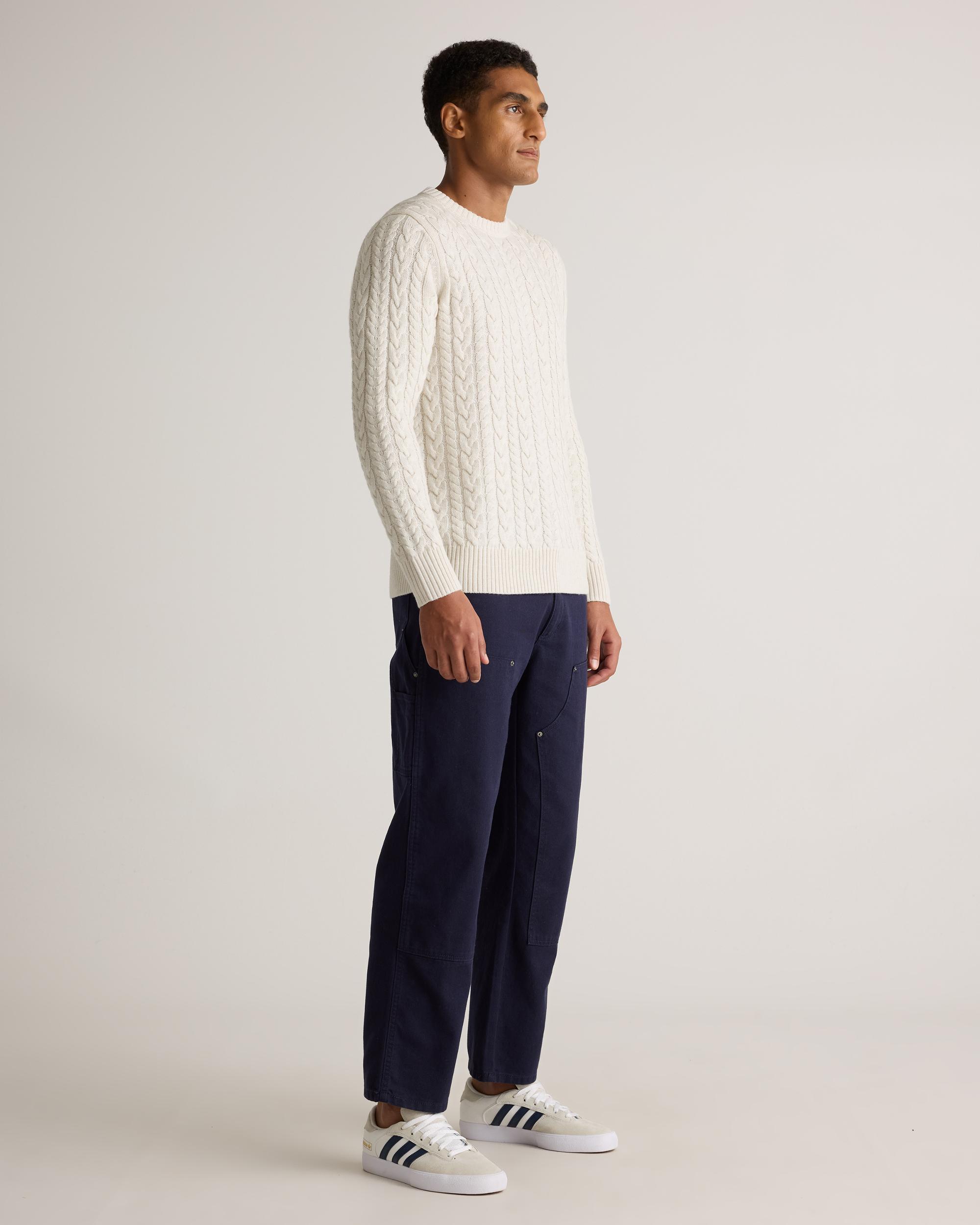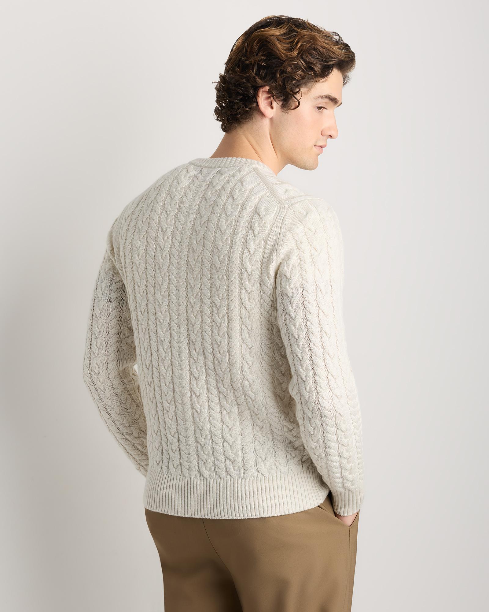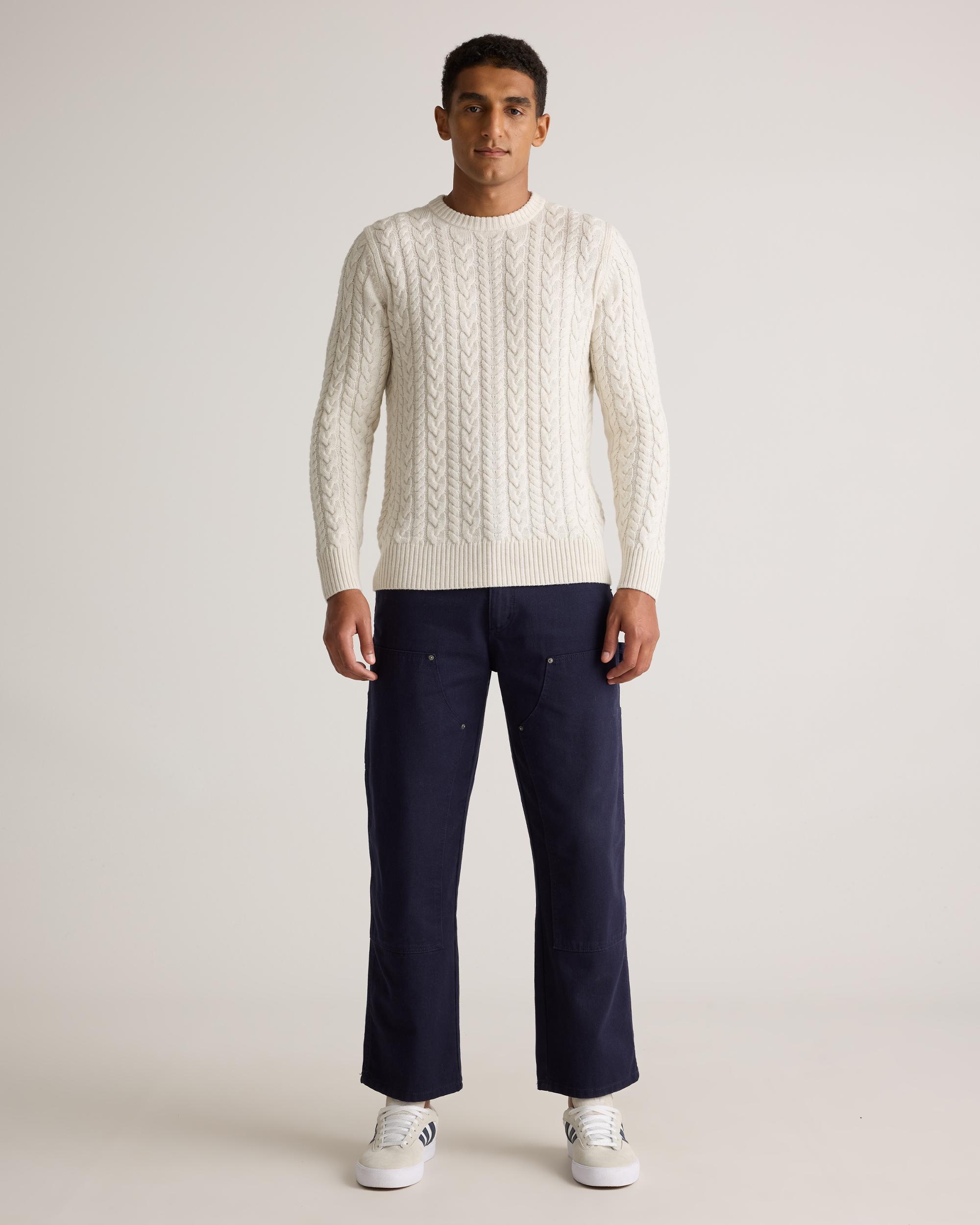 Our Australian Merino Wool Cable Crewneck Sweater is your go-to classic style with an intricate cable-knit design that adds rich texture. Designed to be both stylish and functional, this sweater is perfect for layering over a collared shirt for a polished look or wearing on its own for a more relaxed, yet sophisticated outfit. The natural properties of Merino wool make it highly breathable and temperature-regulating, so you'll stay comfortable whether you're indoors or braving the chill. | Quince | Men's Australian Merino Wool Cable Crewneck Sweater in Heather Bone, Size Medium