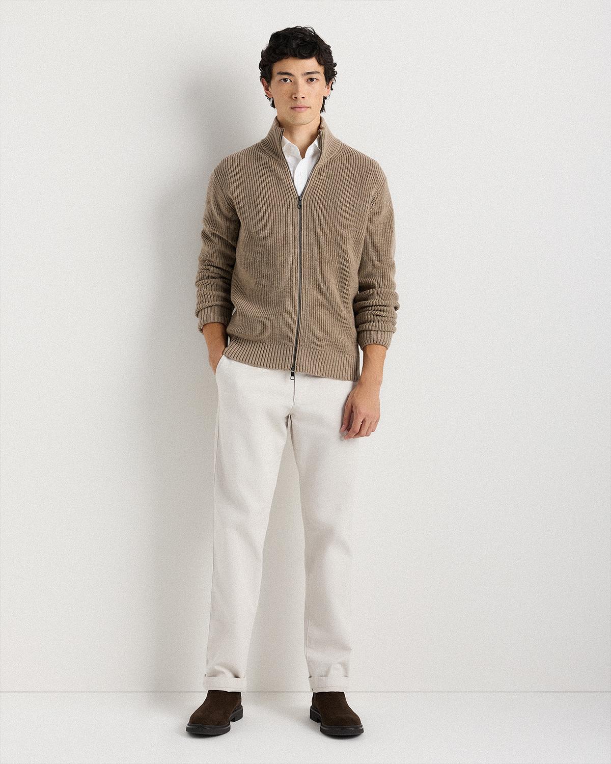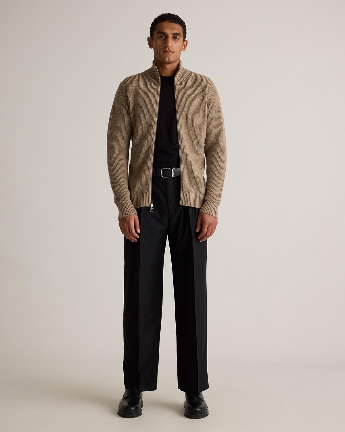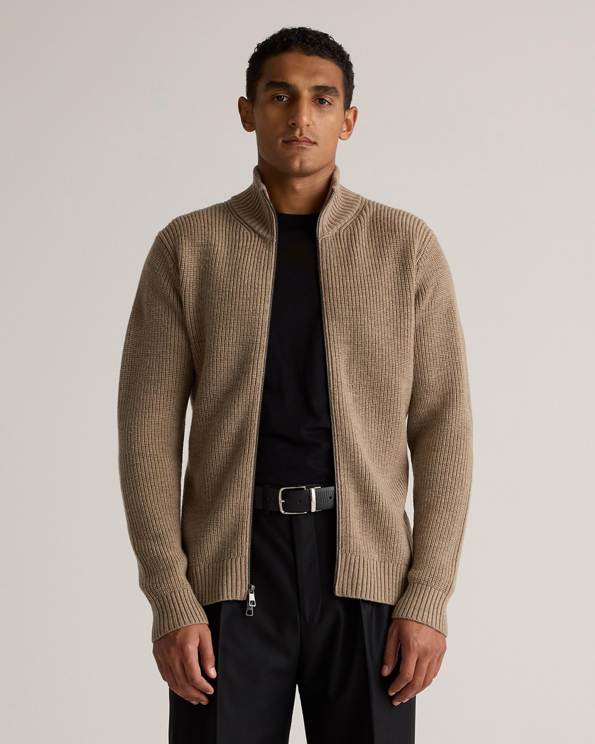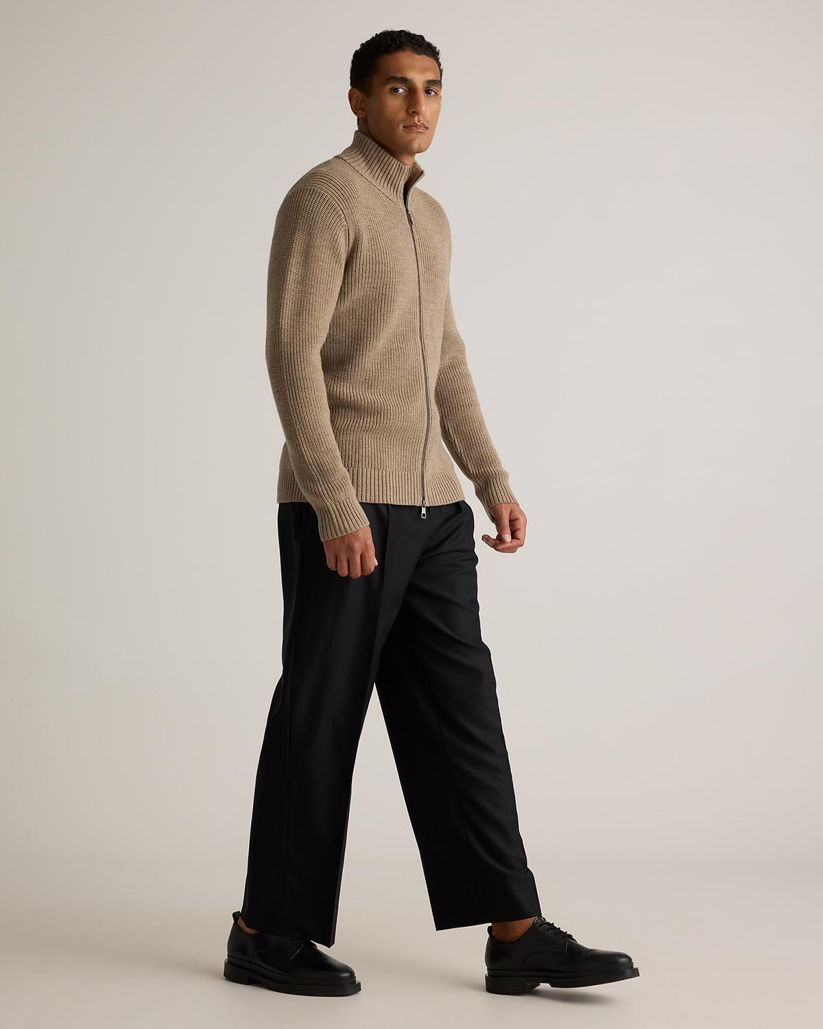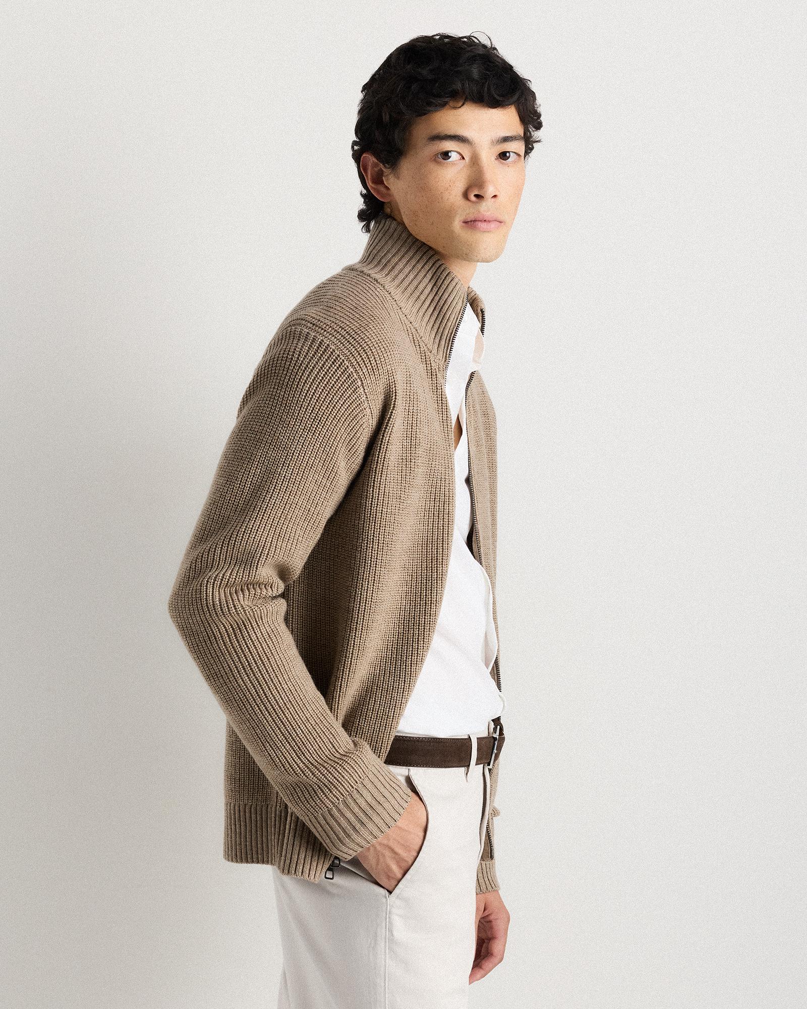 Our Australian Merino Wool Full Zip Sweater is perfect for any occasion—from casual weekend outings to smart-casual workwear. Designed with the classic fisherman ribbed texture, this thick-gauge knit looks good and feels even better. Crafted from the finest Merino wool, this sweater offers unparalleled softness and warmth, making it an ideal choice for any season. | Quince | Men's Australian Merino Wool Full Zip Sweater in Malted Toffee, Size XXL