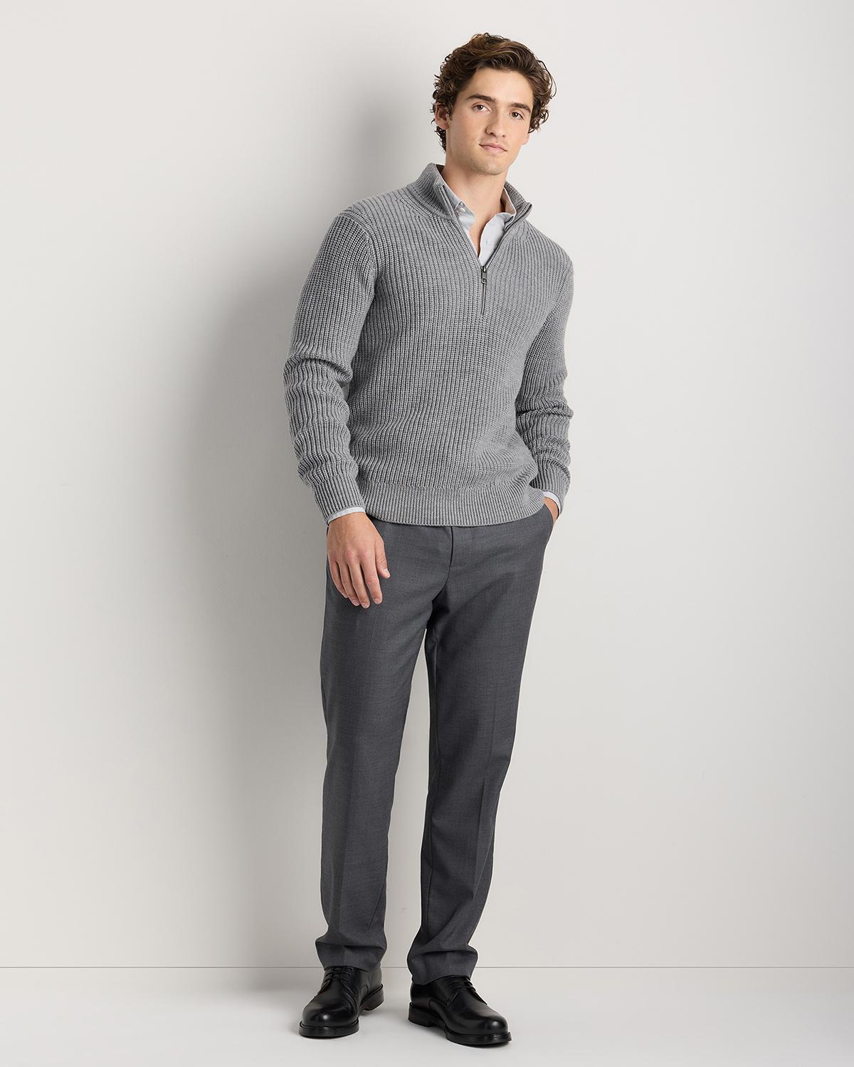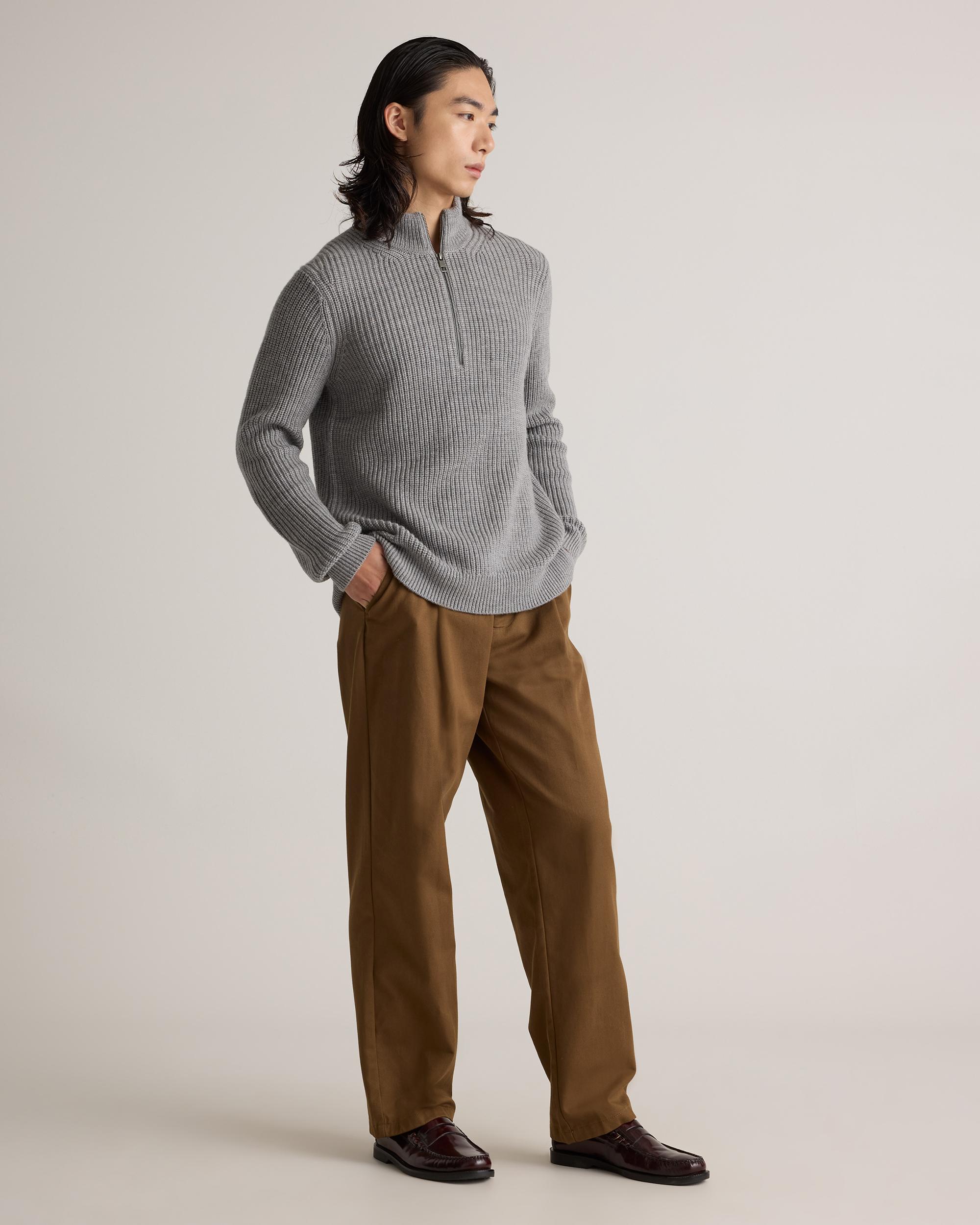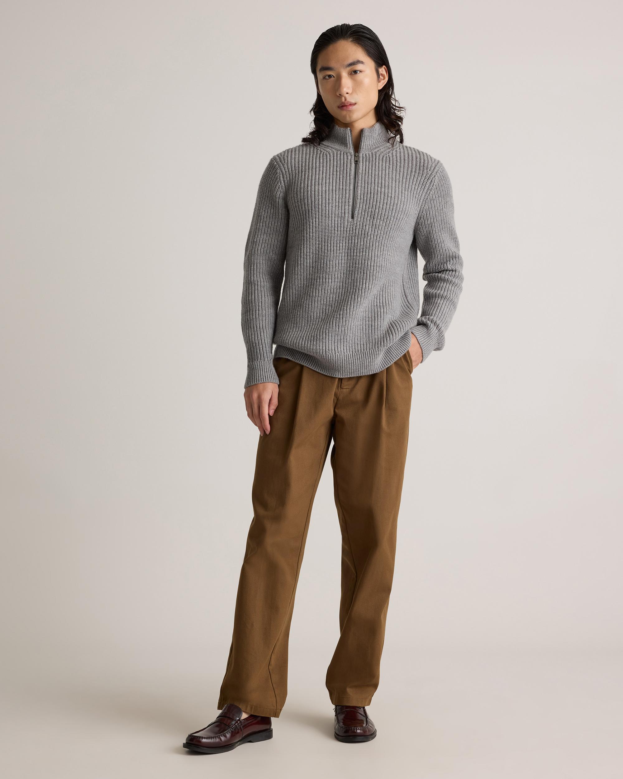 Experience unparalleled softness and warmth without the bulk. Our Australian Merino Wool Half Zip Sweater provides a sleek, modern silhouette that layers effortlessly over shirts or under jackets. Crafted from the finest Merino wool, this sweater is highly breathable and temperature-regulating, so you'll stay comfortable whether you're indoors or braving the chill. | Quince | Men's Australian Merino Wool Half Zip Sweater in Heather Grey, Size Medium