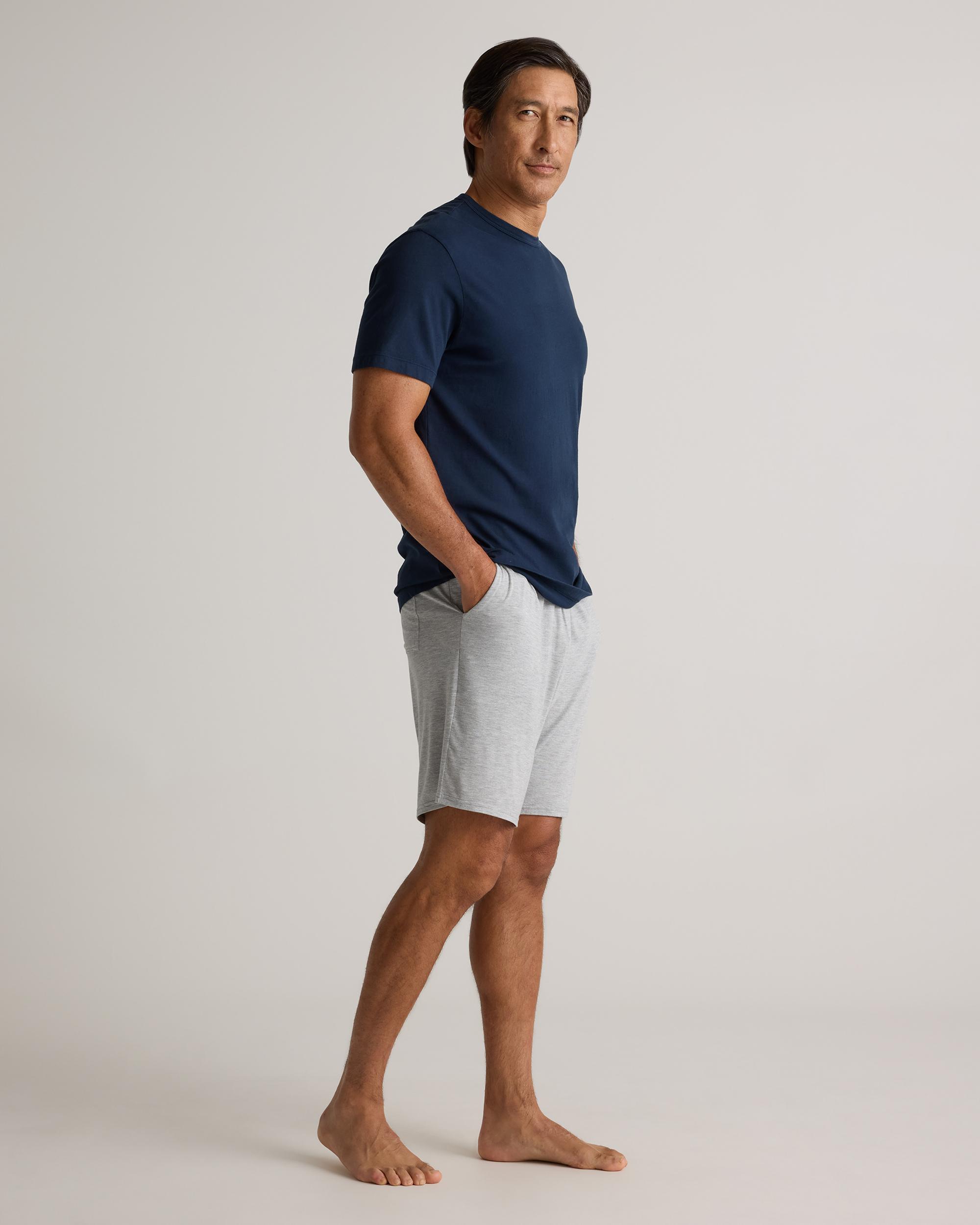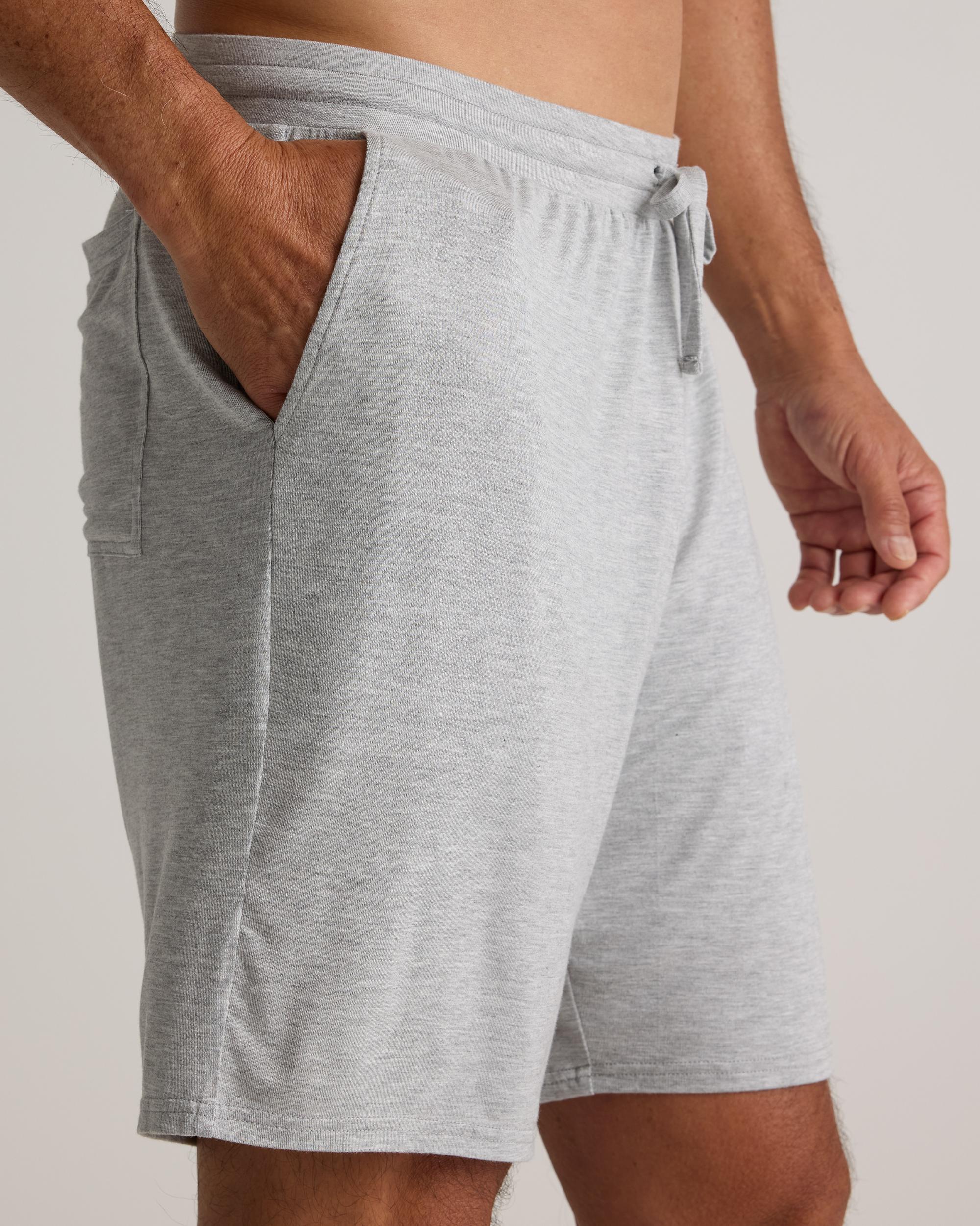 Made from a blend of bamboo rayon and spandex, these lounge shorts are incredibly soft and gentle on the skin, providing a luxurious feel that is perfect for relaxing at home or getting a good night's sleep. The breathable fabric helps regulate body temperature, keeping you cool and comfortable all day long. Our Bamboo Jersey Lounge Shorts feature a relaxed fit and an elastic waistband for easy movement, making them ideal for lounging around the house or running errands. Upgrade your loungewear collection and experience the ultimate in comfort and style. | Quince | Men's Bamboo Jersey Lounge Short in Heather Grey, Size XL