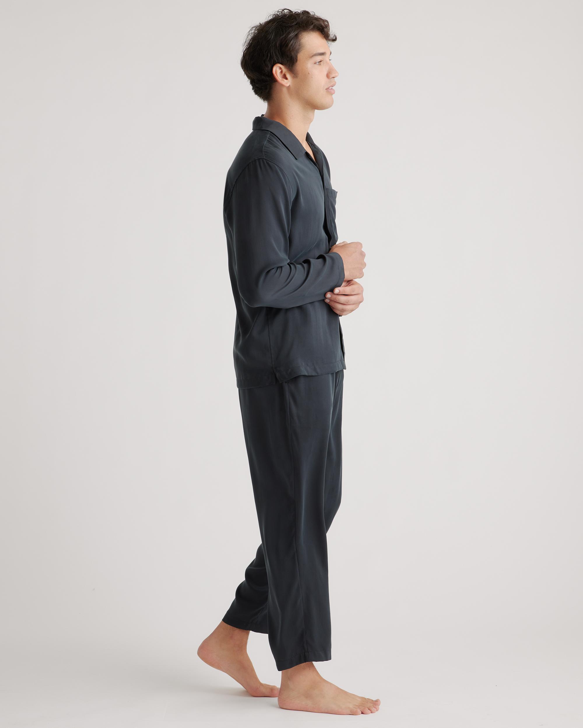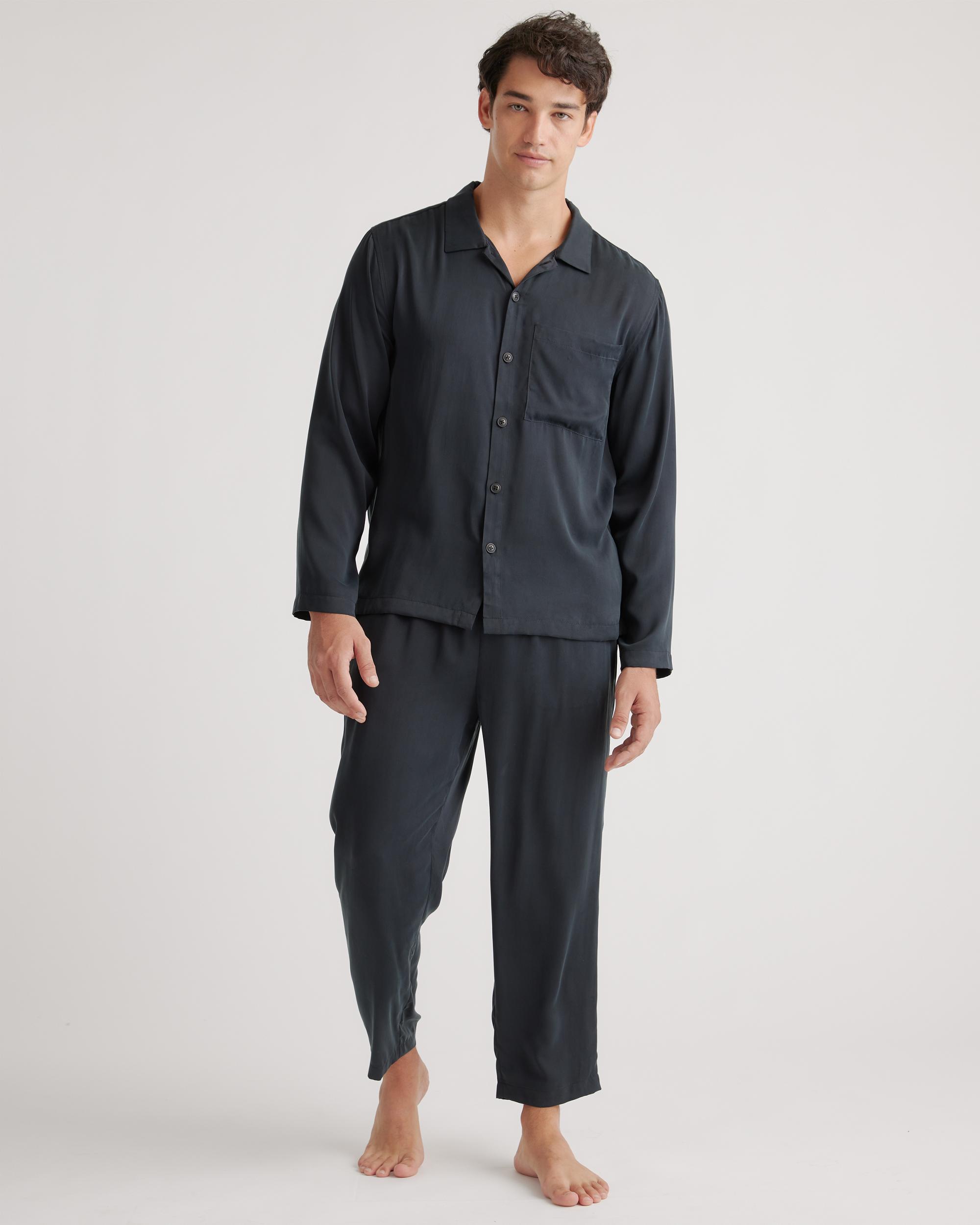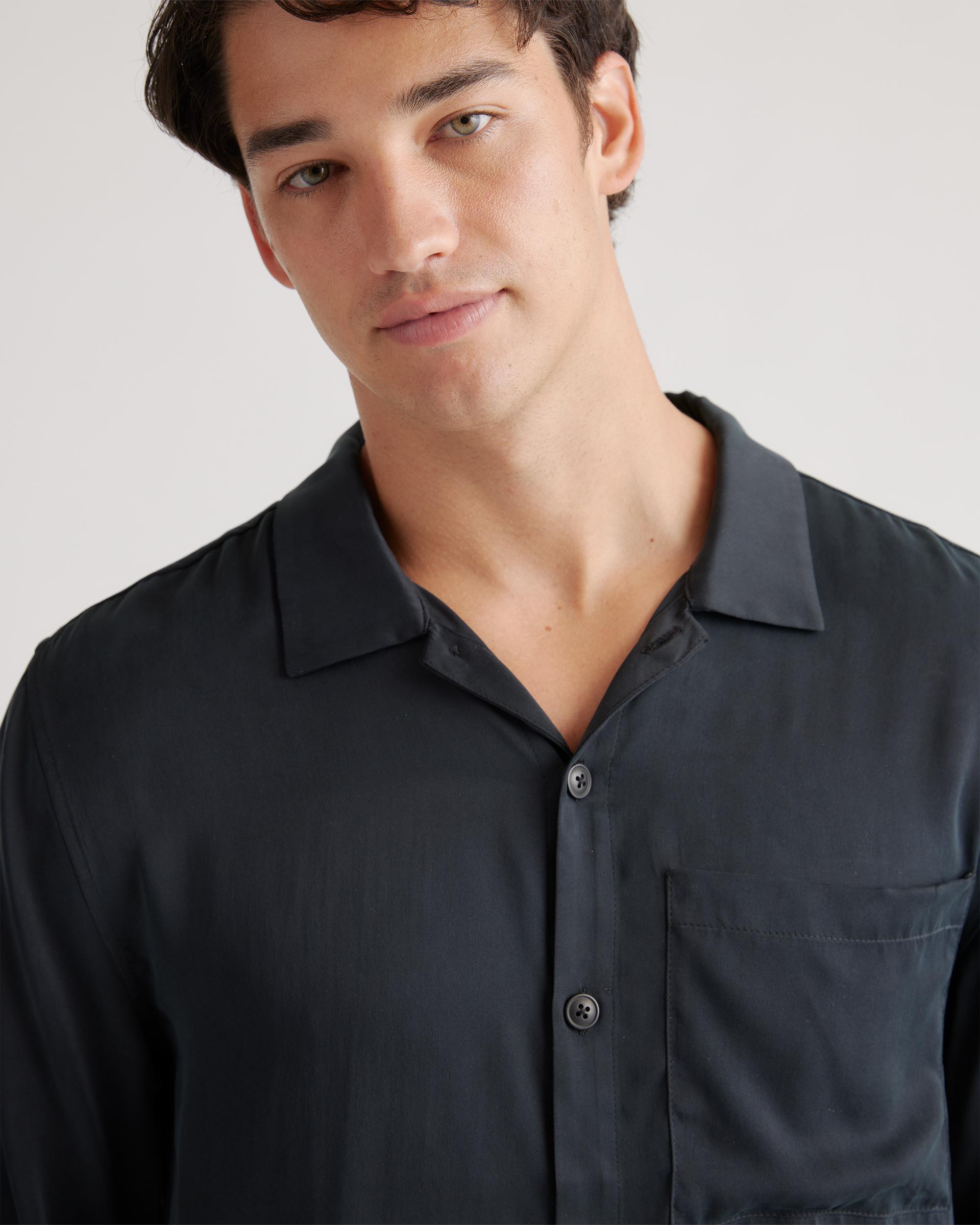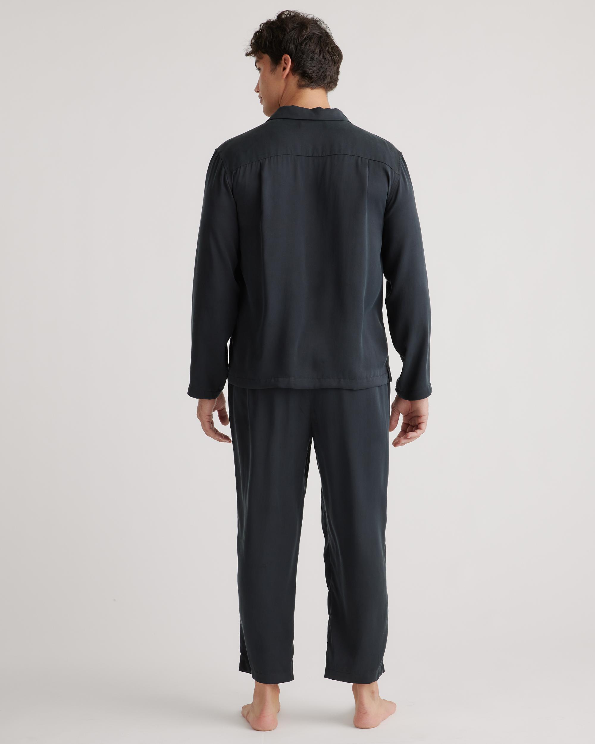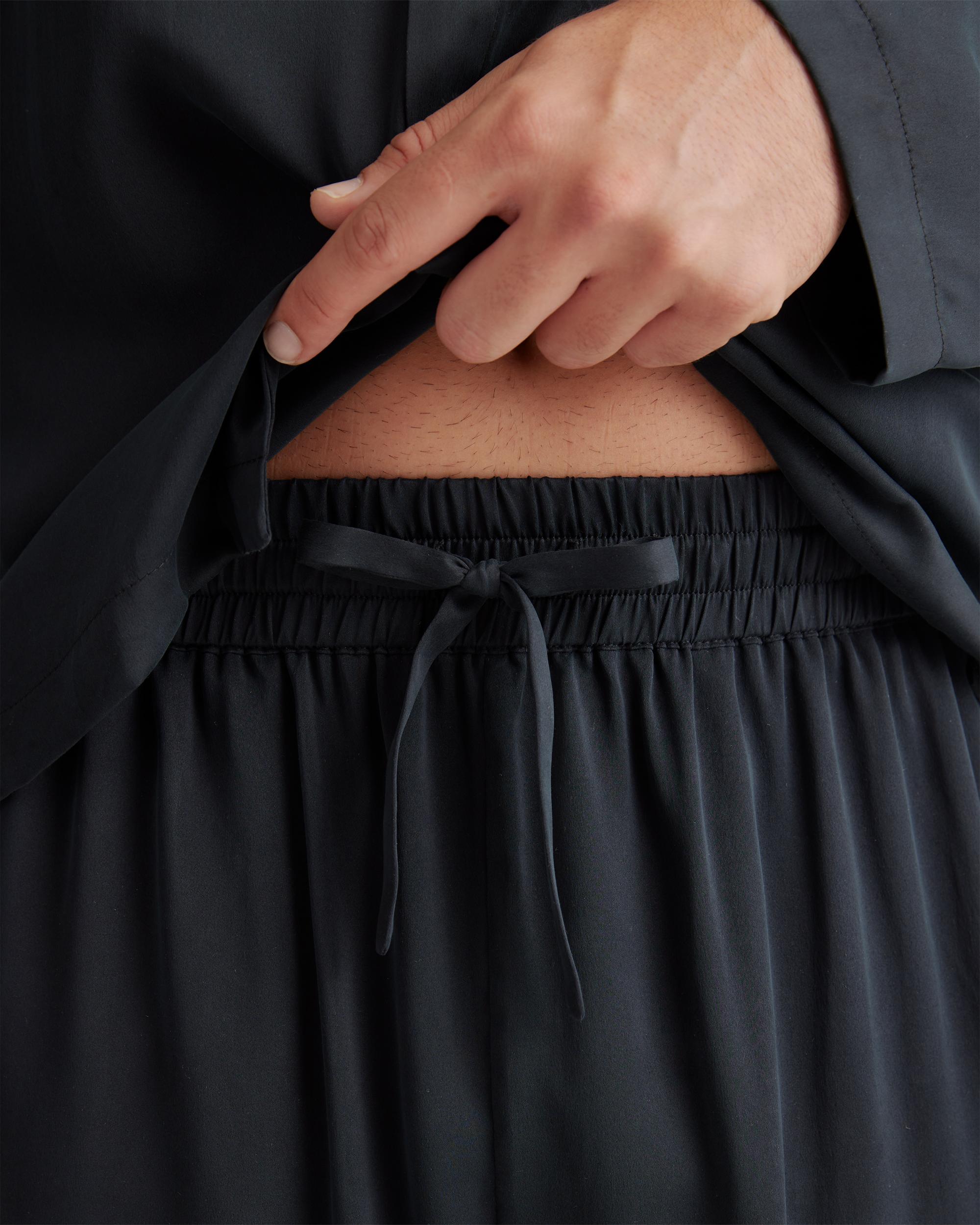 Step into the world of laid-back luxury with our 100% Washable Silk Button Down Pant Set, where comfort meets cool. And although this sleep set certainly looks and feels like an extravagant splurge, it’s completely washable and naturally thermoregulating, making this set decidedly lowkey. Meet your new favorite sleep set for years to come. | Quince | Men's Button Down Pants Set in Black, Size XL, Silk