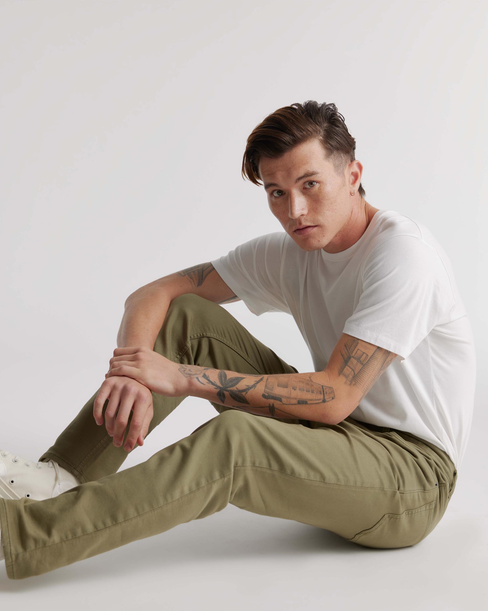 The Comfort Stretch Traveler 5-Pocket Pants is the perfect balance of laid-back and refined. The straight fit and tapered leg opening paired with just enough stretch will have you reaching for this pant every day of the week. | Quince | Men's Comfort Stretch Traveler 5-Pocket Pants in Olive, Size 40X30, Organic Cotton